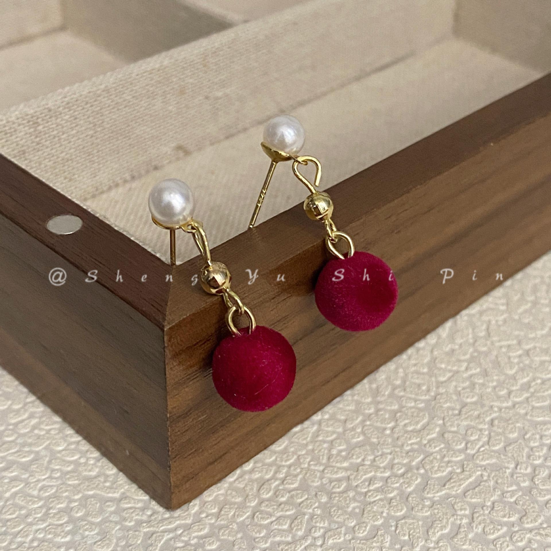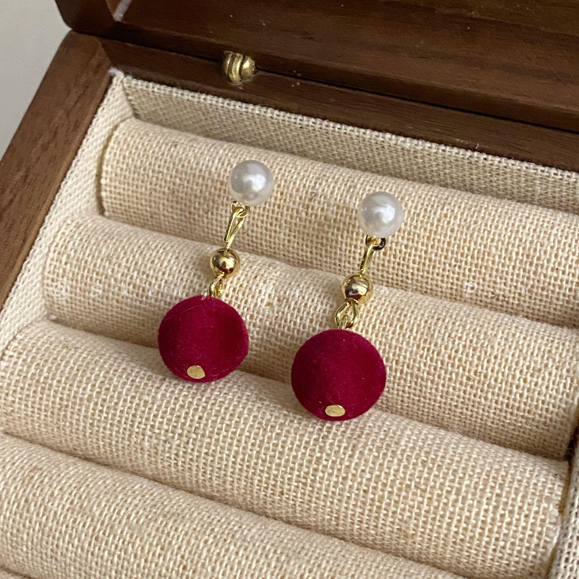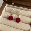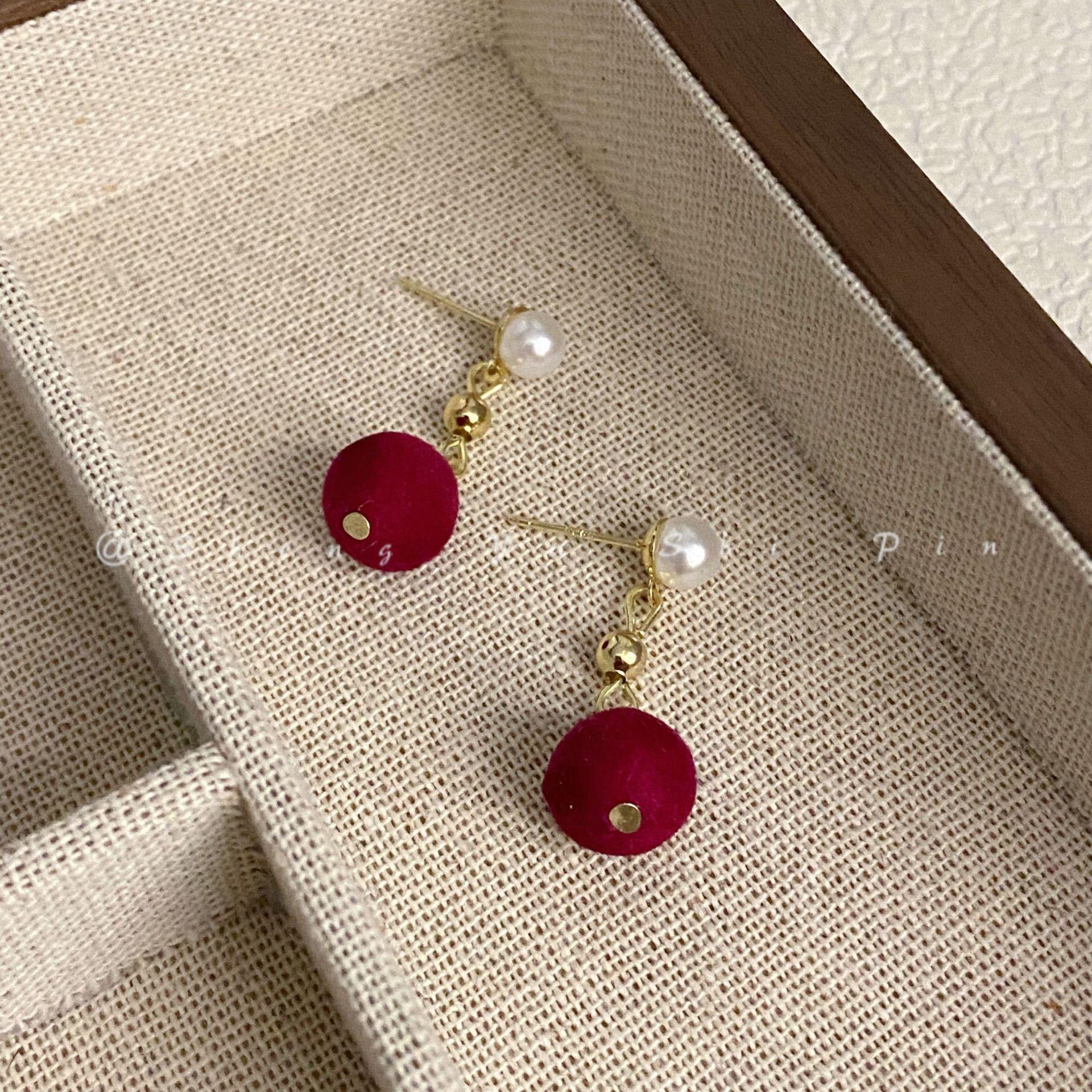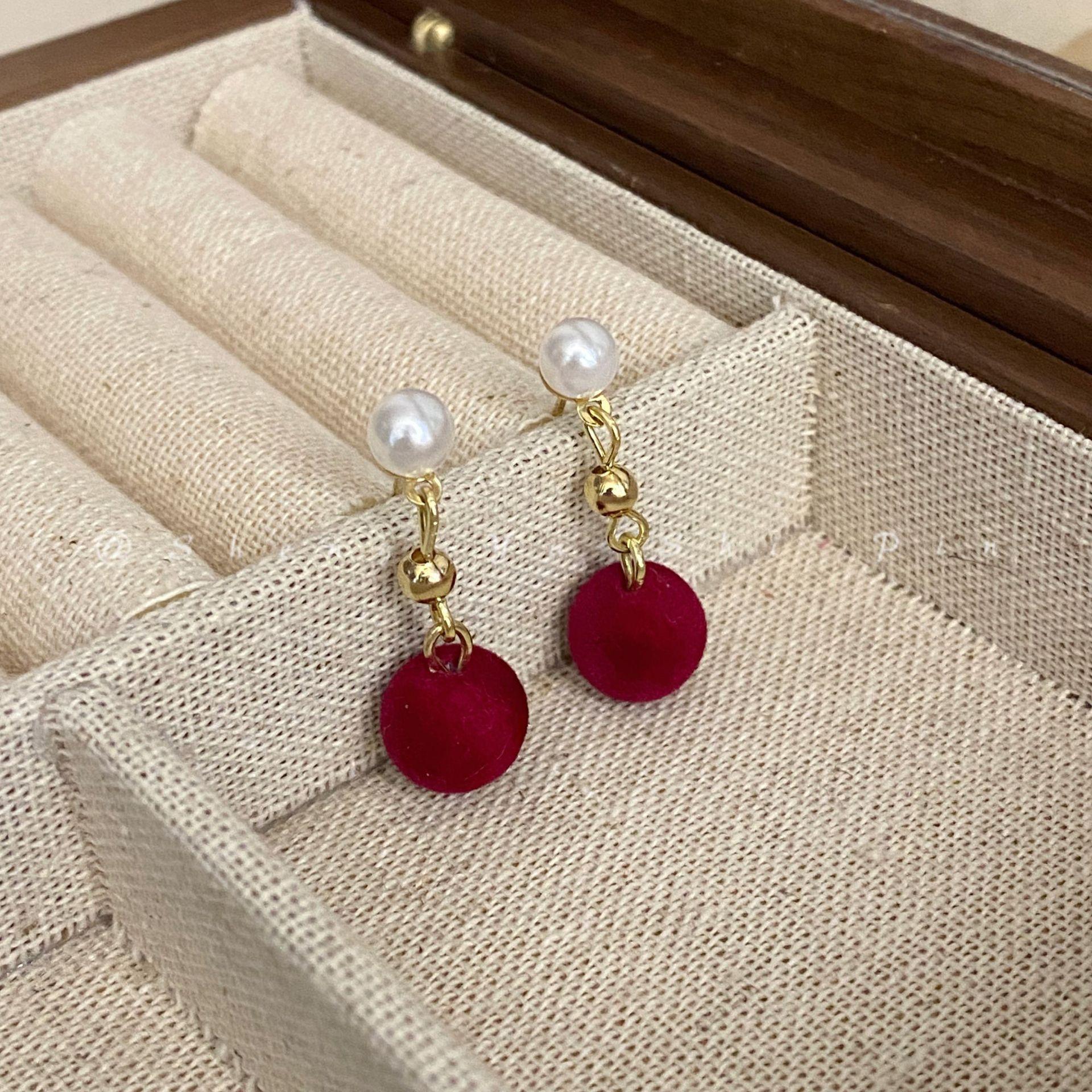 Exquisitos pendientes redondos flocados de alta calidad, diseño de nicho, ligeros, lujosos, versátiles, con personalidad de temperamento, pendientes geométricos rojos