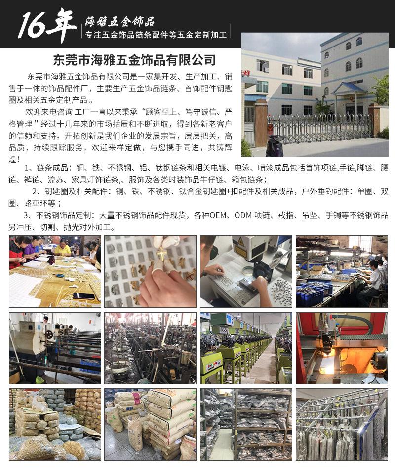 Se pueden personalizar una variedad de tamaños. Podemos proporcionar cadenas de arroz electrolíticas semiacabadas, cadenas terminadas y accesorios. Se puede empaquetar según sea necesario (más tarifa de embalaje) para garantizar que la cadena esté libre de nudos, no se enrede, esté libre de rebabas, sea lisa y suave en la mayor medida posible. La joyería no es un lujo y no puede ser perfecta. "Personalización personalizada del fabricante de origen" personalización del color de galvanoplastia cambio de forma de la cadena refuerzo de soldadura de la interfaz del botón + método de embalaje LOGO Todos los productos de nuestra fábrica se envían a precio de fábrica, excluyendo impuestos y transporte, pequeños márgenes pero rápida rotación, los precios de los productos se ven afectados por factores como el aumento de los precios de las materias primas. Si compra en grandes cantidades o personaliza productos, consulte al servicio de atención al cliente para una nueva cotización. Dongguan Haiya Joyería de Ferretería
