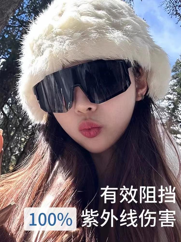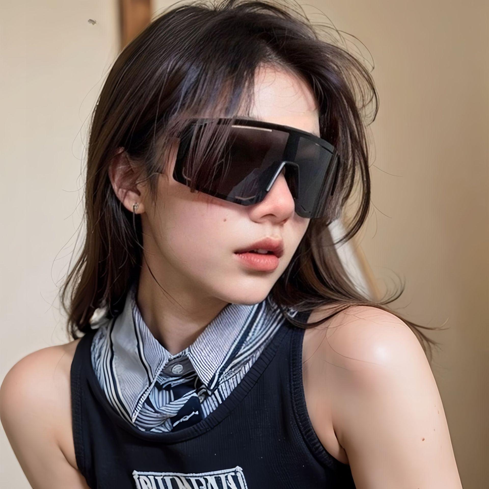 | Nueva moda, gafas de sol de una pieza con montura grande y diseño de celebridad de Internet Xiaohongshu para adelgazar el rostro, gafas de sol modernas para hombres y mujeres para tiro callejero también |