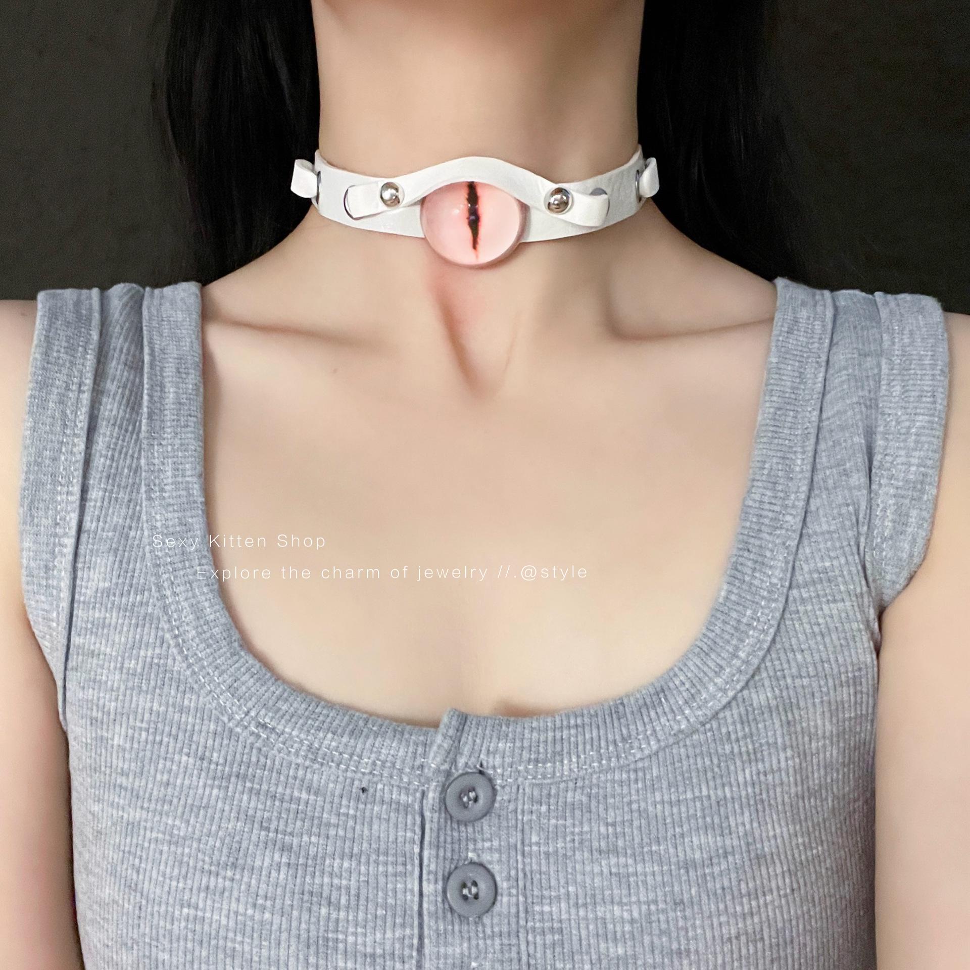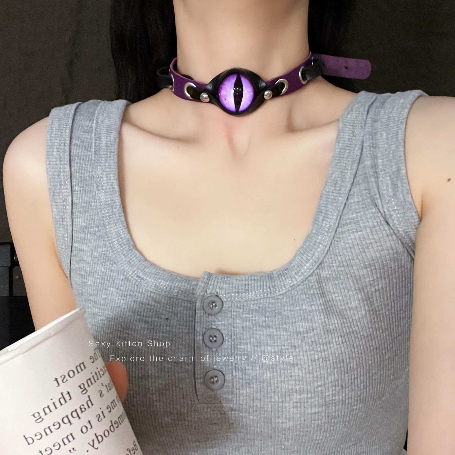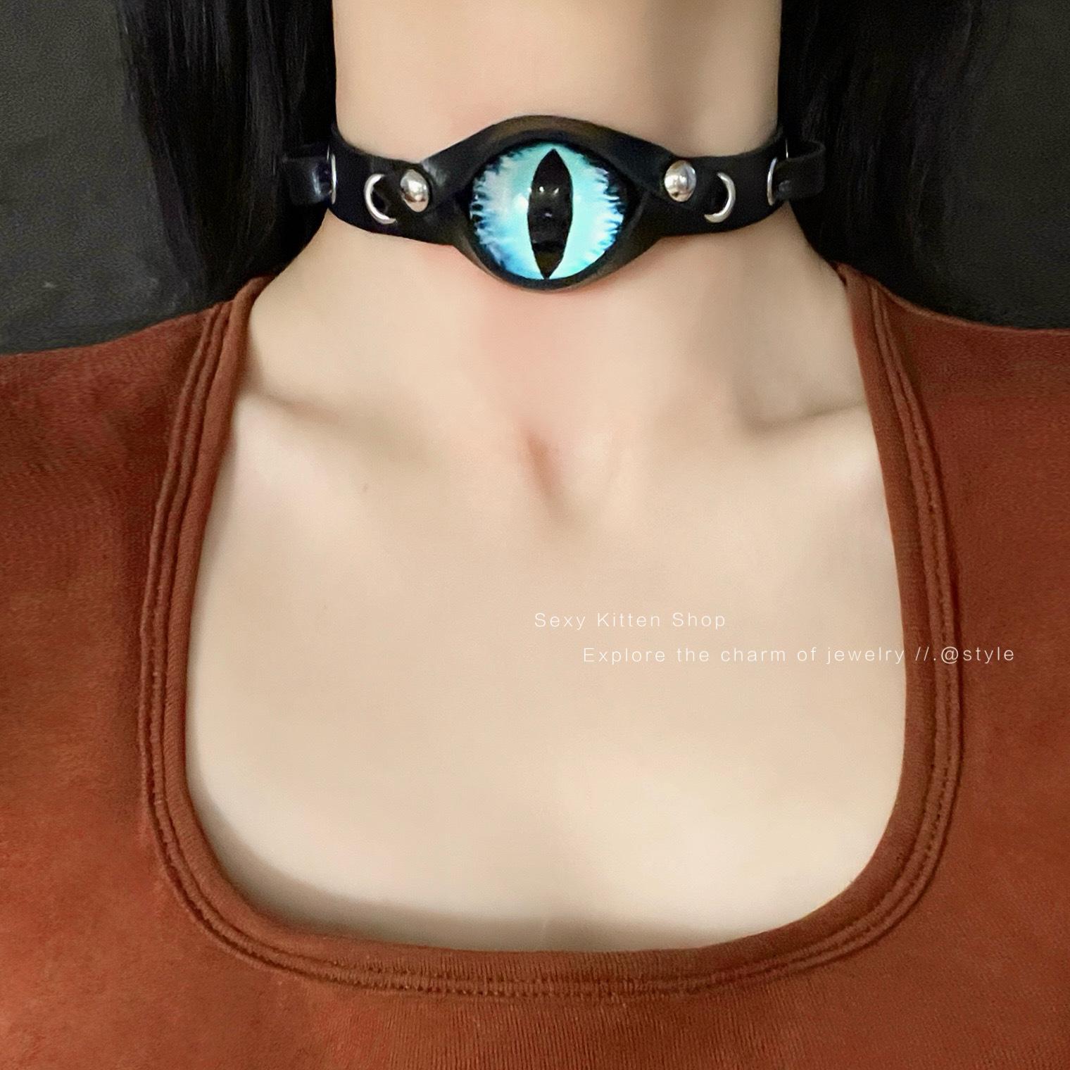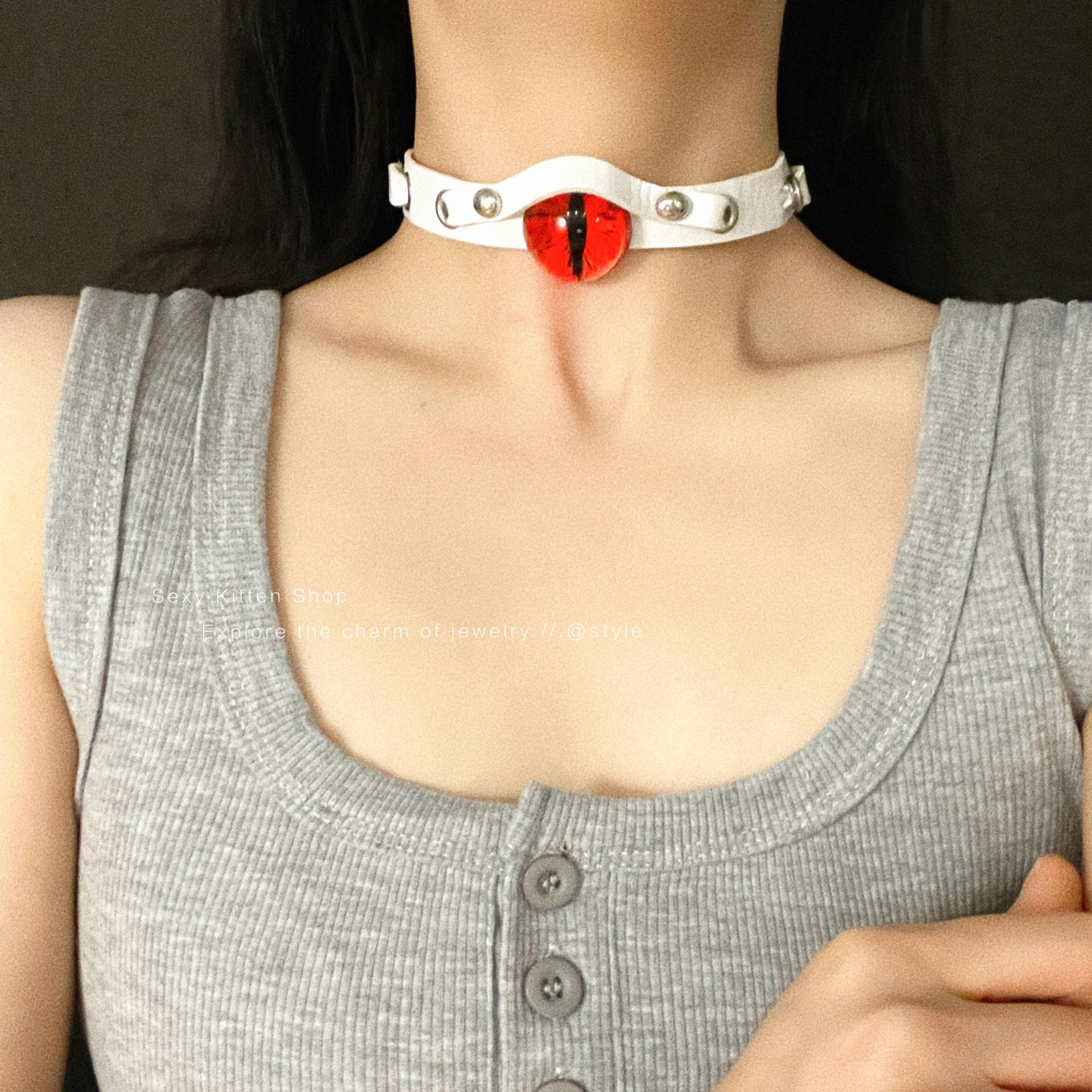 Subcultura diseño nicho hecho a mano puro cuero ojo rojo demoníaco collar estilo oscuro moda CHOKER joyería al por mayor
