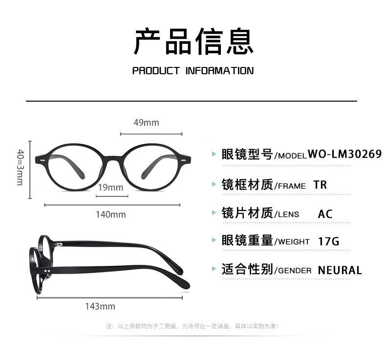 2024 Nuevo Nerd Tr90 Montura de Gafas para Miopía Hombres y Mujeres Ovalada Elegante Retro Montura Pequeña Montura Plana Ins
