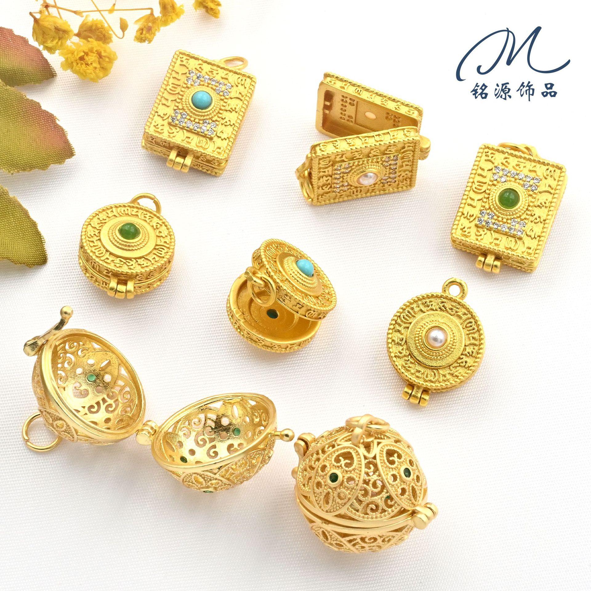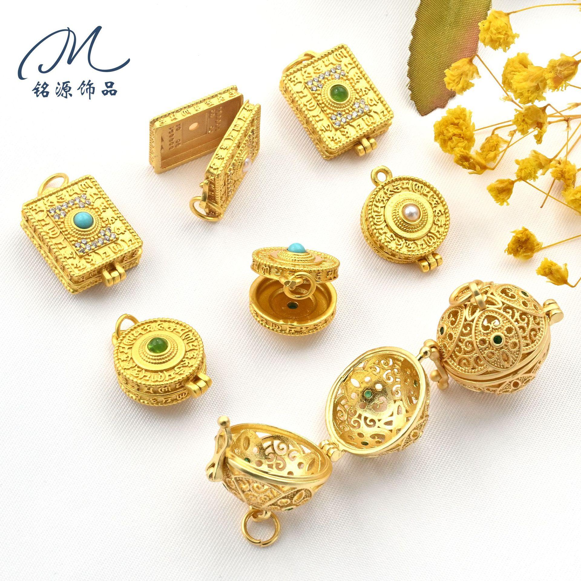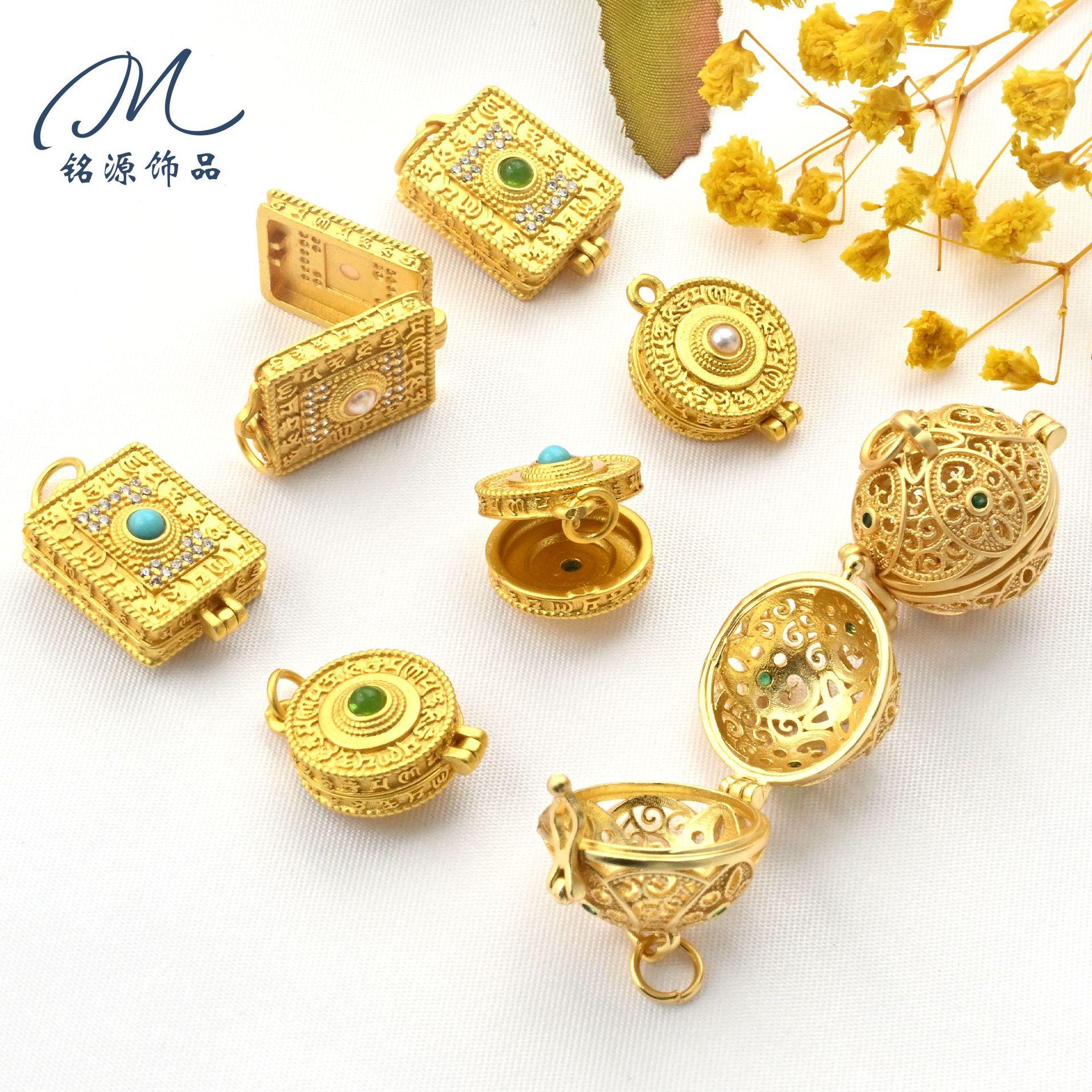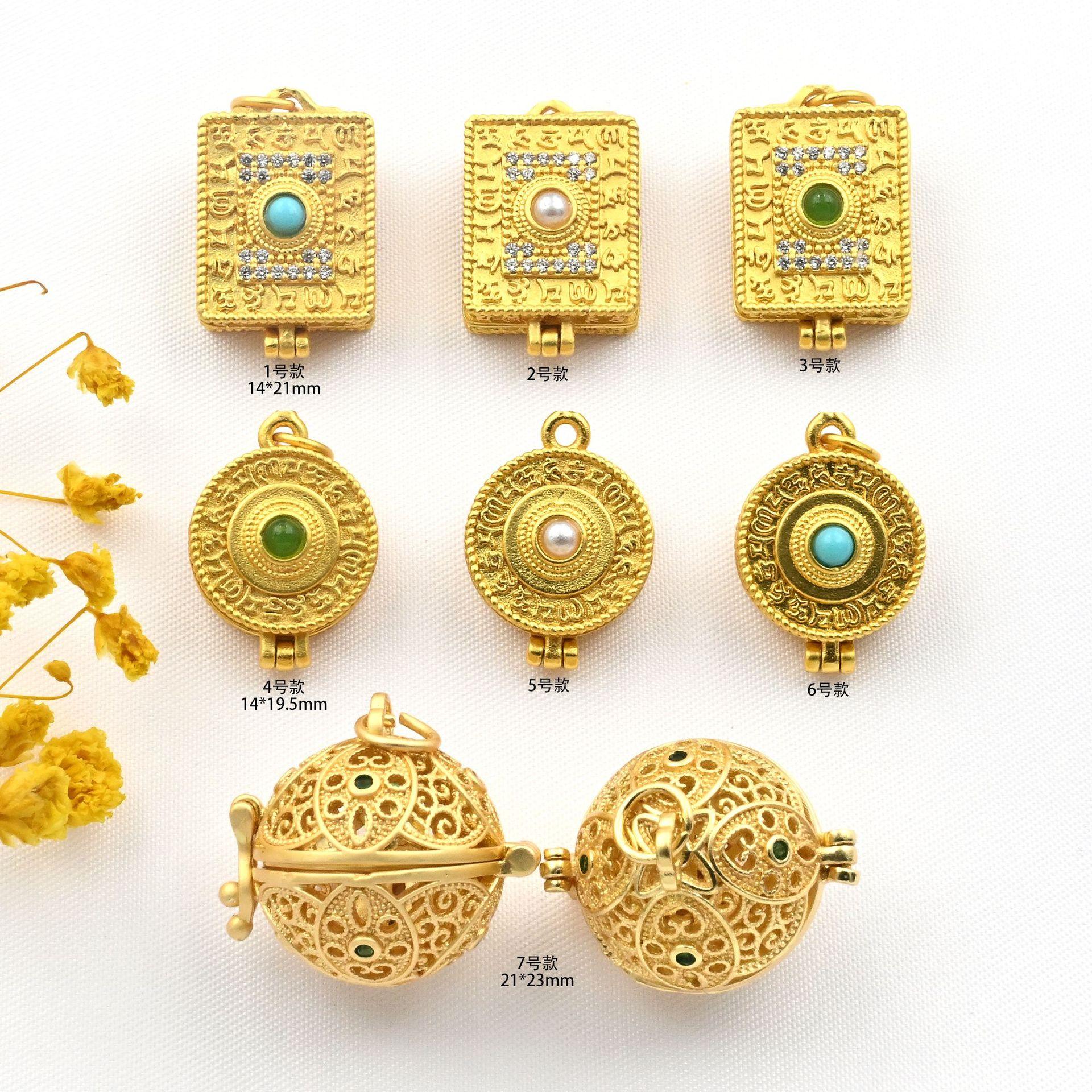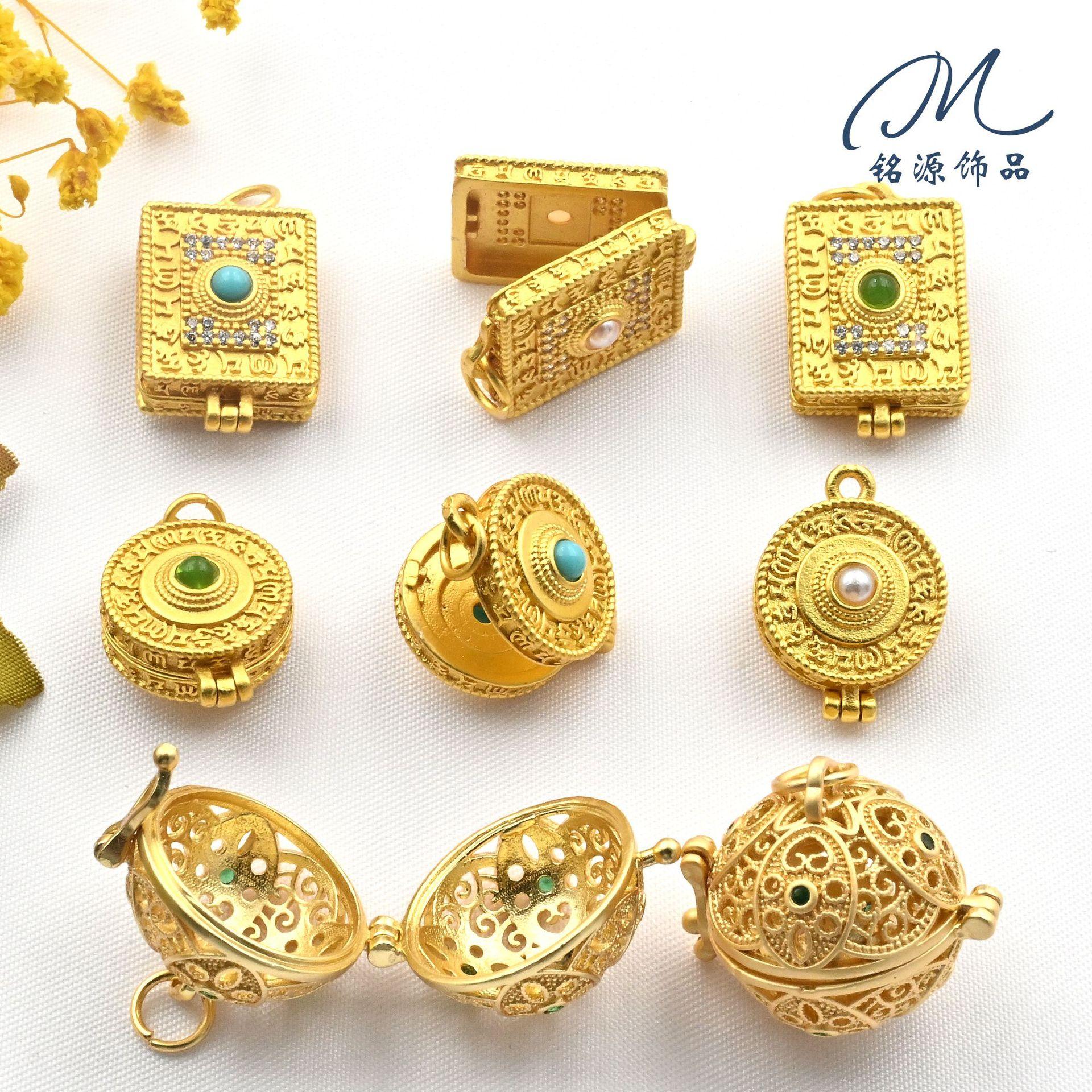Nuevo colgante de collar con colgante de piedra de caja de gabu con lema de seis caracteres de oro antiguo bañado en cobre que se puede abrir, accesorios de joyería