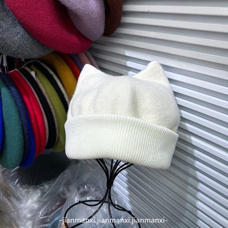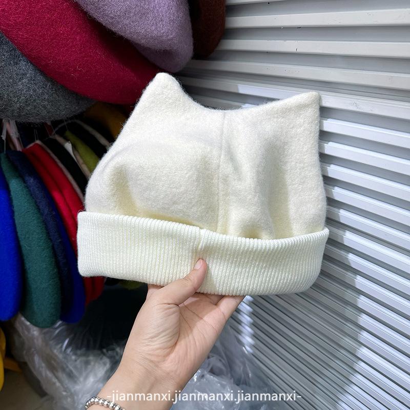 [Orejas de Gato] Sombrero Otoño e Invierno Sombrero de Punto Coreano Invierno Cálido Simple Dulce Lindo Sombrero de Pescador Sombrero de Lana para Mujer