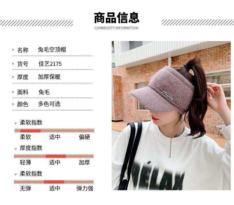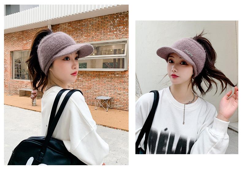 Jiayi otoño e invierno Nuevo sombrero de copa vacía de piel de conejo gorra de béisbol cálida con forro polar etiqueta de letra de moda gorra con visera