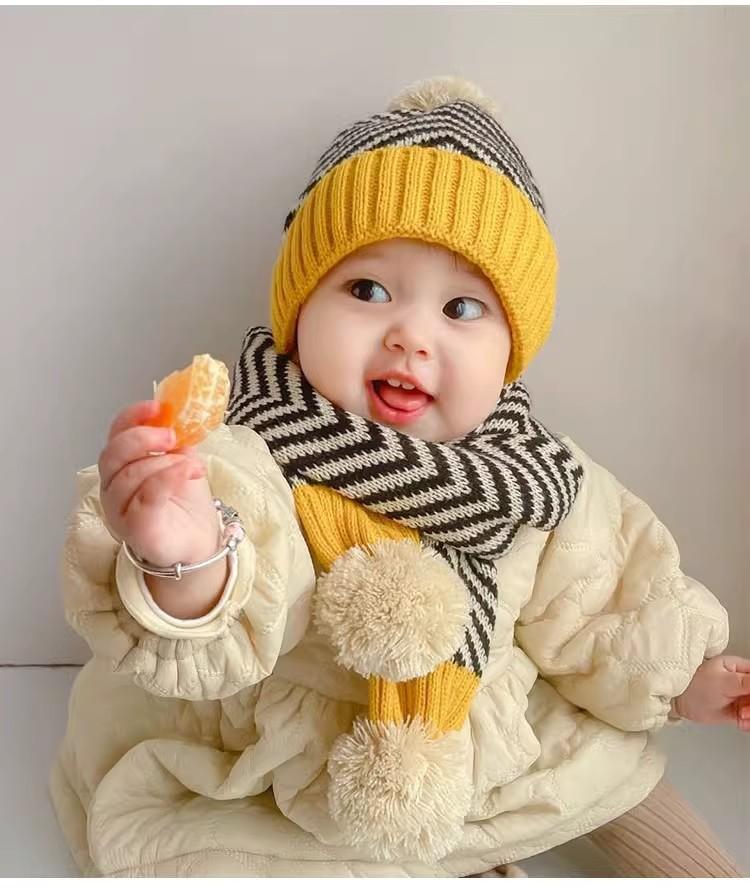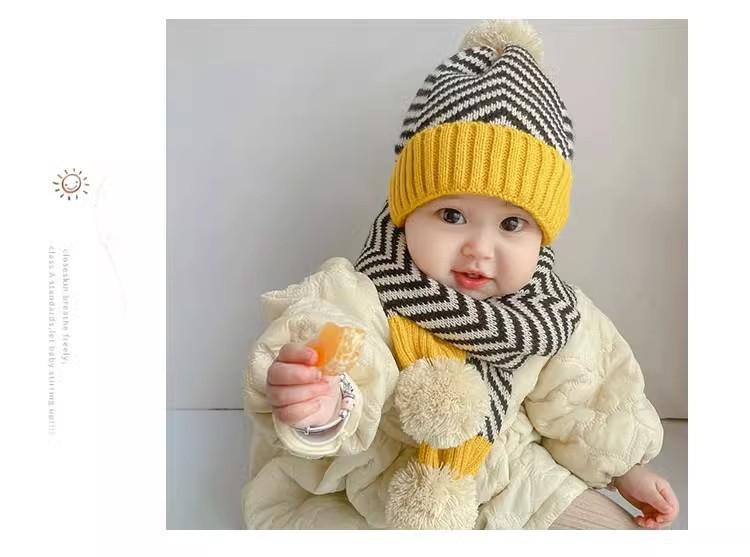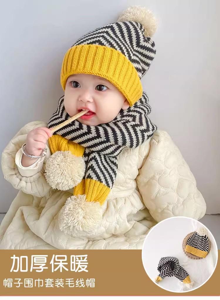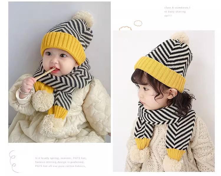 Bufanda cálida de invierno para niños, otoño e invierno, para hombre y mujer, conjunto de dos piezas de bufanda y gorro de lana de punto para niños, venta al por mayor
