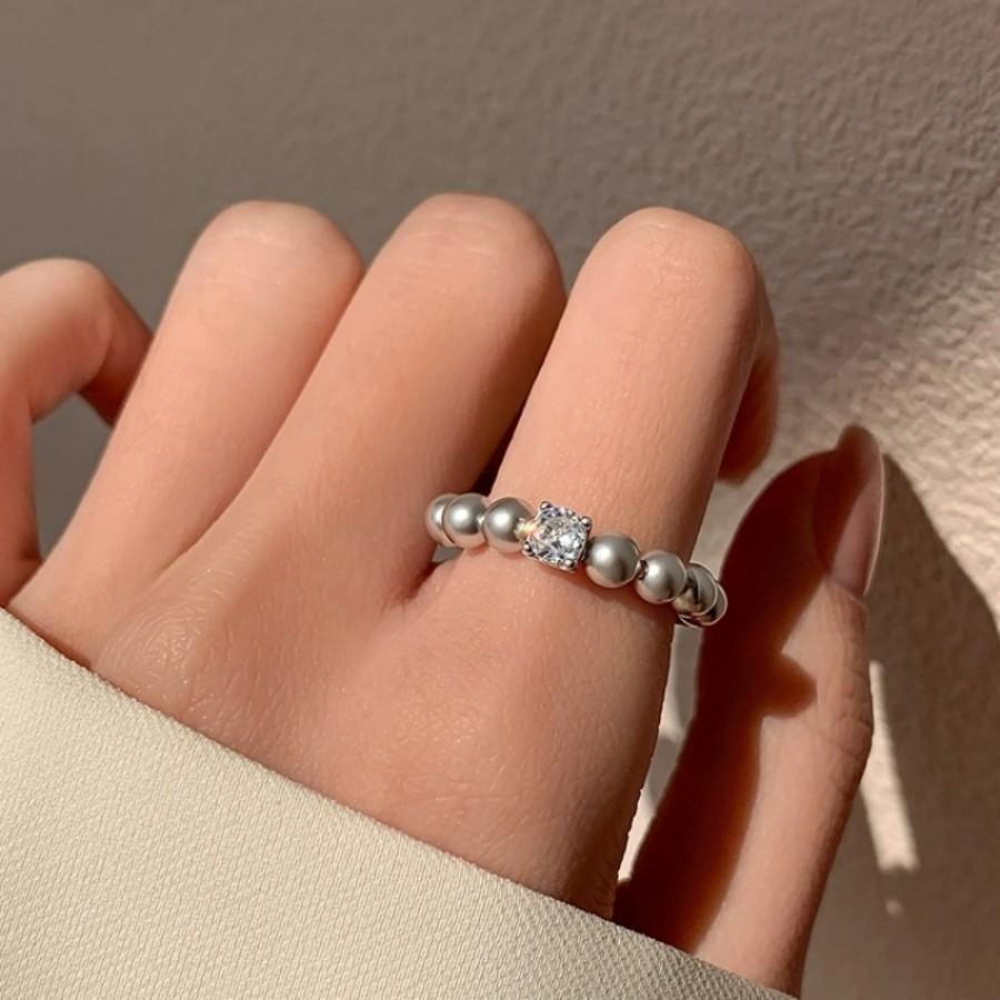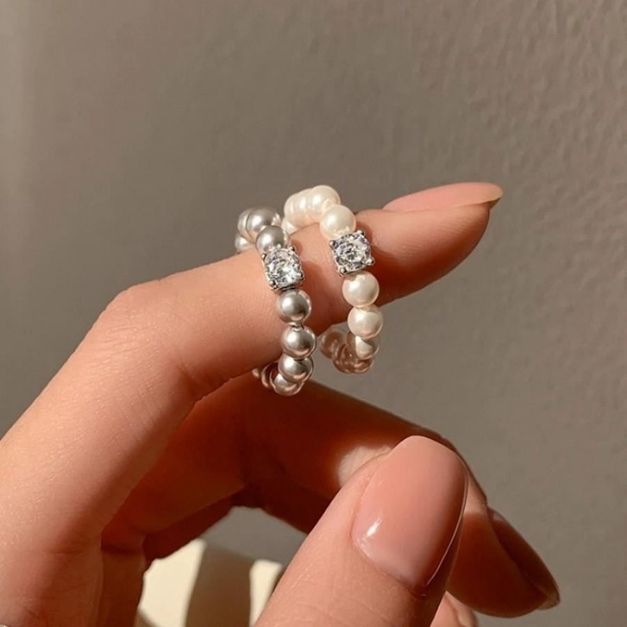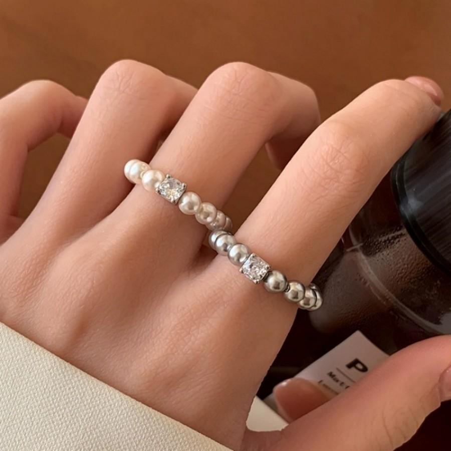 Anillo de Perlas de Venta Caliente para Comercio Exterior Europeo y Americano para Mujer Estilo Frío Lujo Ligero Anillo para Dedo Pequeño de Alta Gama Anillo Abierto