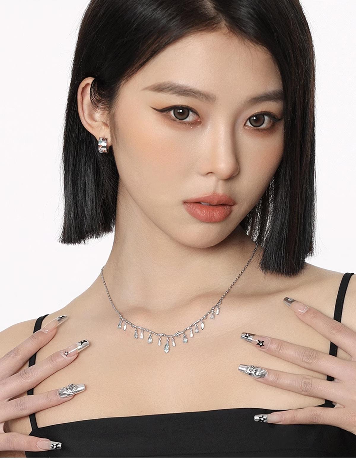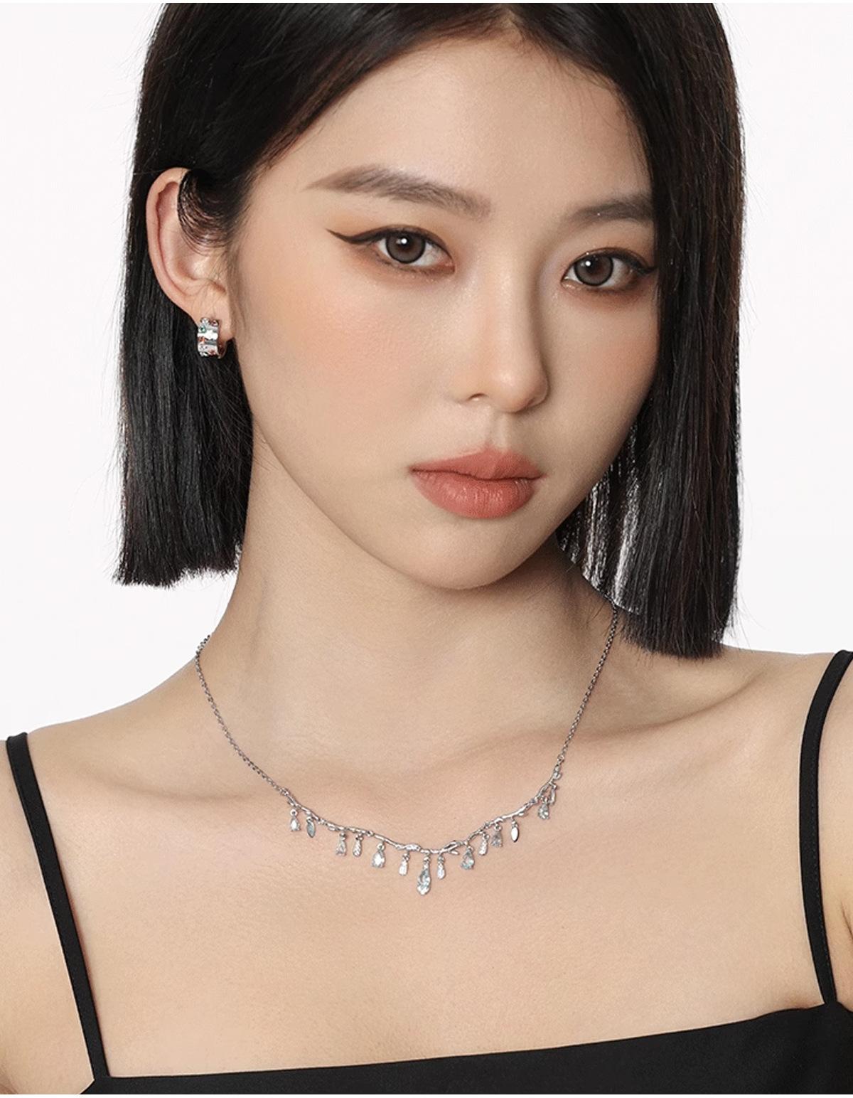 Collar de borla de circonita con forma de gota de agua Super Flash para mujer, diseño de lujo ligero, temperamento de alta calidad, collar de clavícula de viento frío con forma de corazón para niña