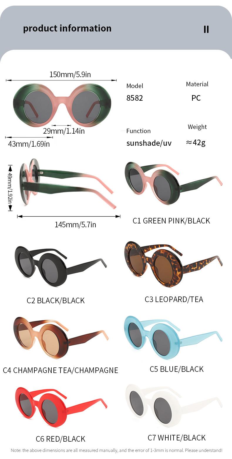 Nuevas gafas de sol de moda con marco redondo, contraste de color, distintivas, sencillas, de moda europea y americana, gafas de sol del mismo estilo para celebridades de Internet.