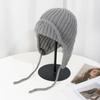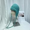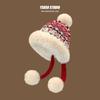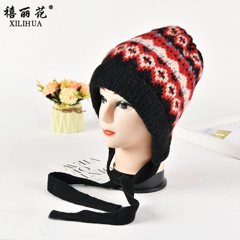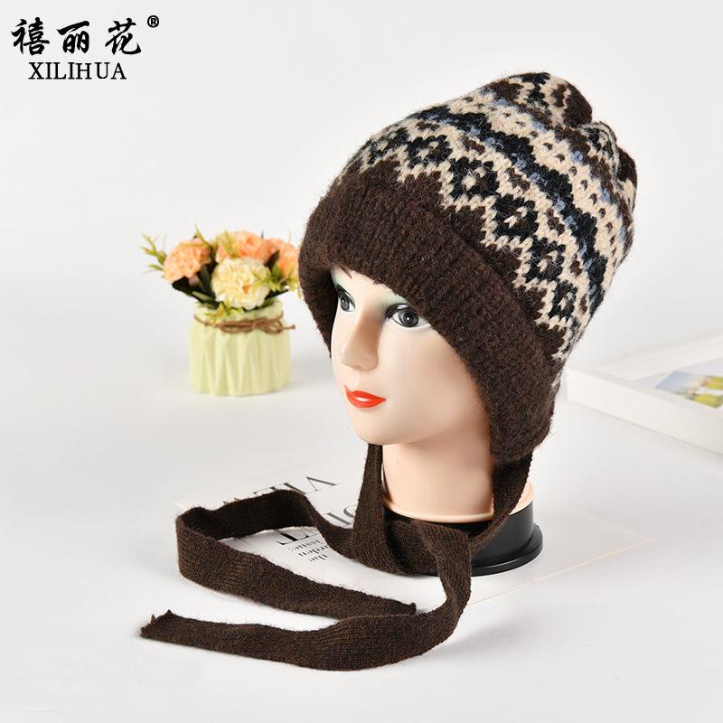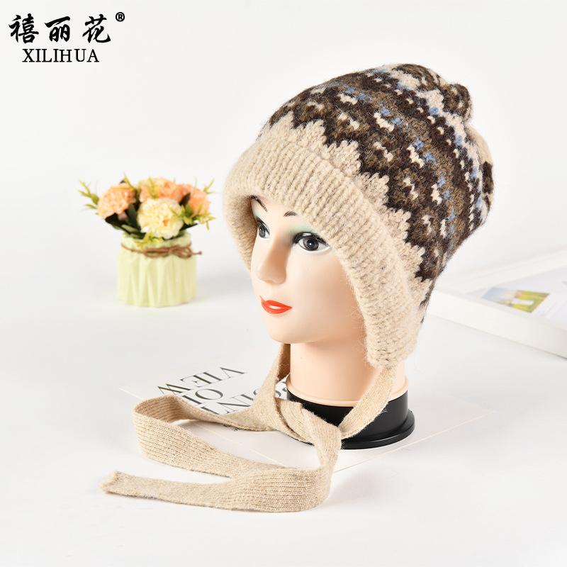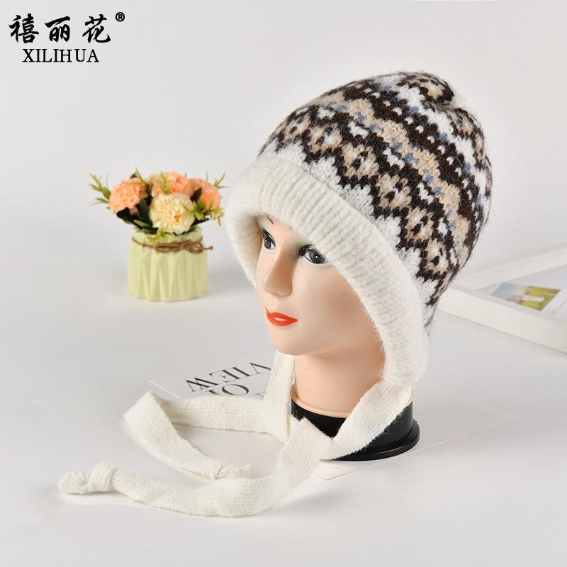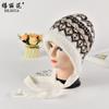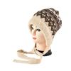 Gorro de lana de color diamante retro de estilo japonés para otoño e invierno, para mujer, de viaje, cálido, con protección para las orejas, de punto Lei Feng.