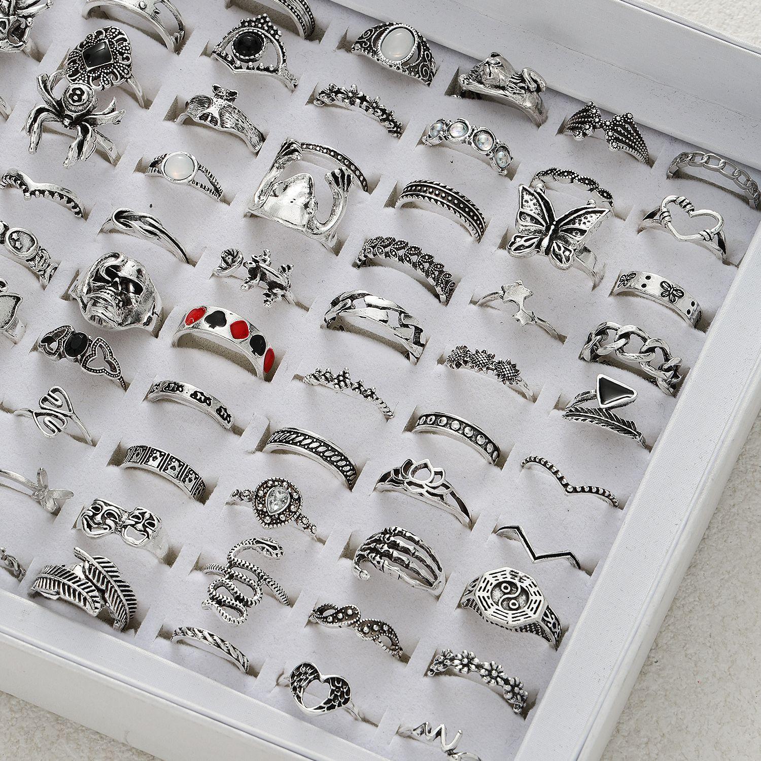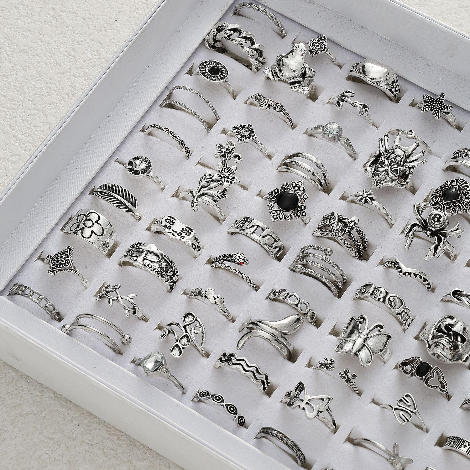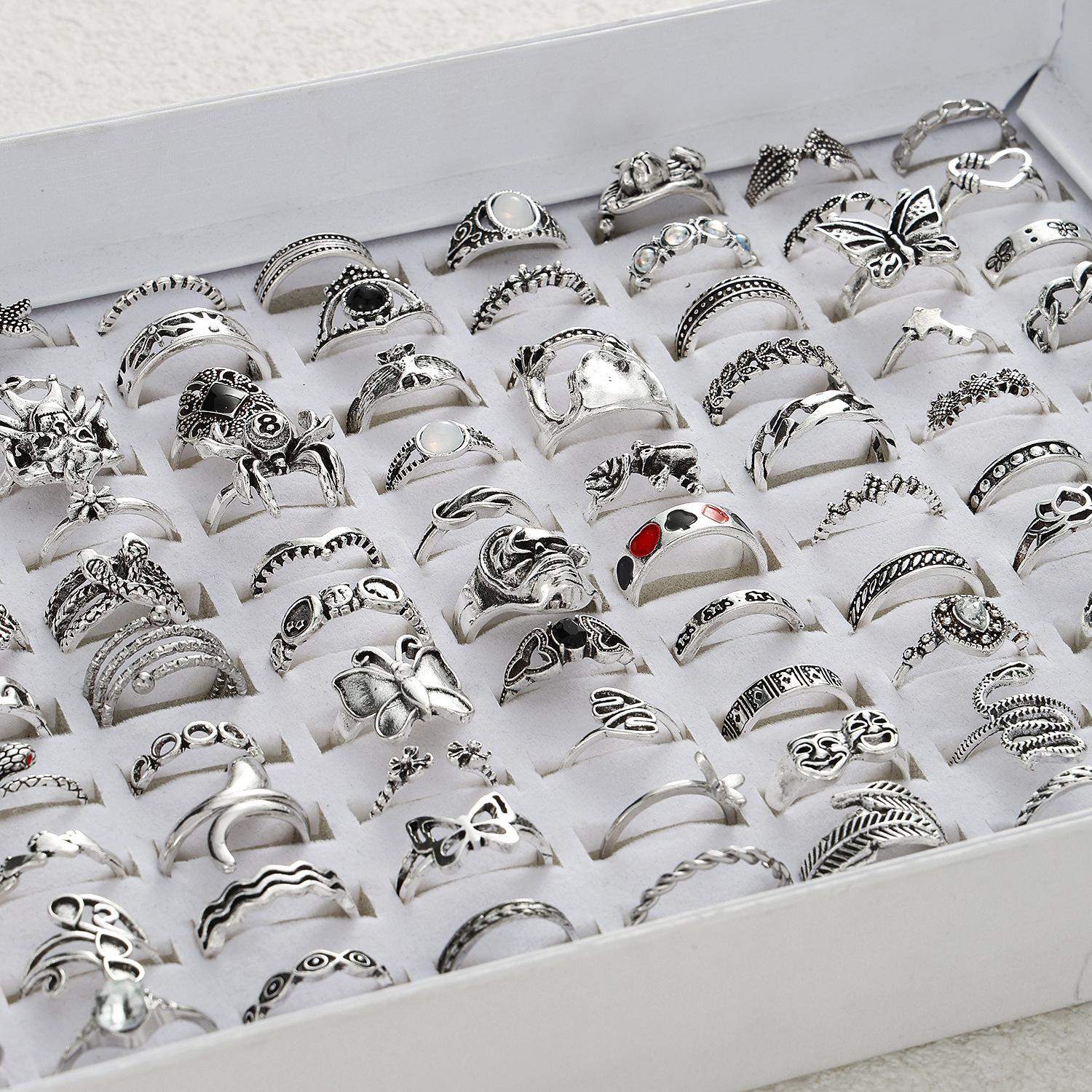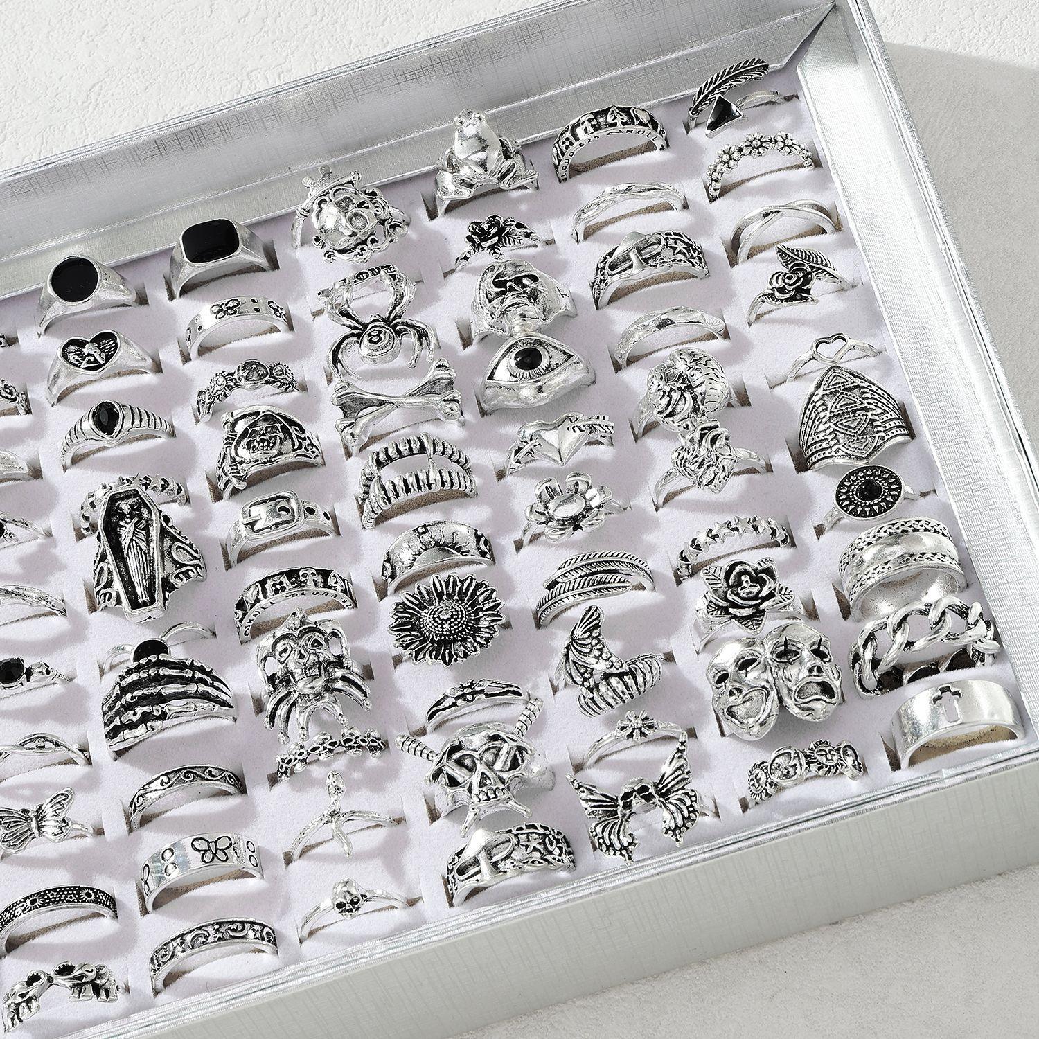 40 Anillo Mixto de Personalidad de Alta Gama Retro Plata Antigua Industria Pesada Anillo de Moda de Alta Gama para Mujer Anillo de Tendencia Joyería