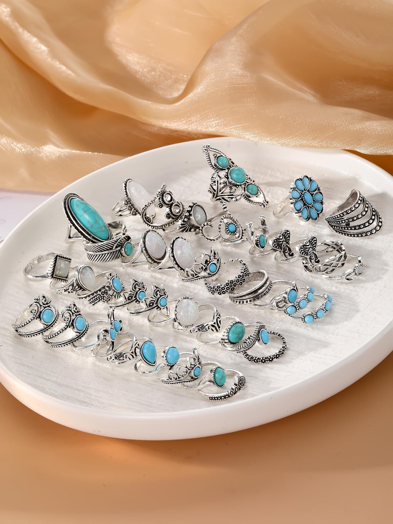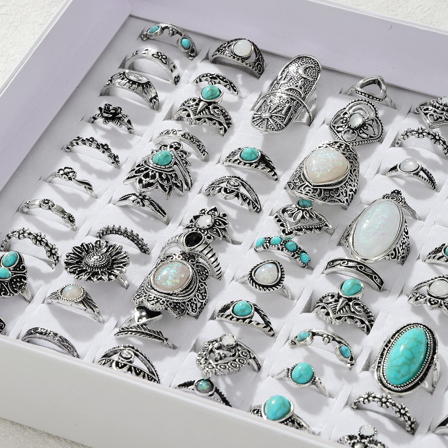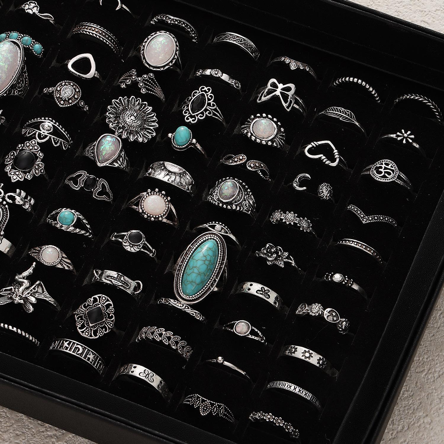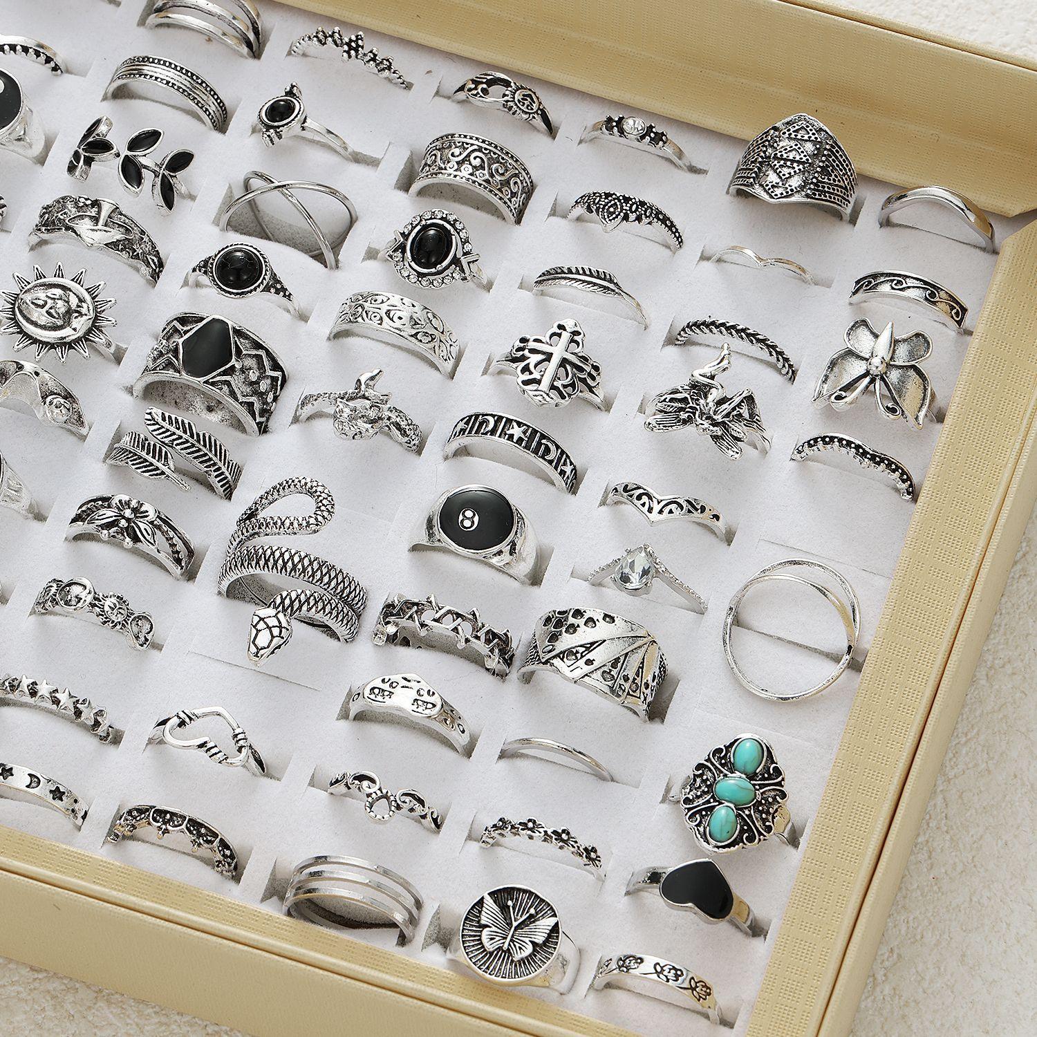 40 Anillo Mixto de Personalidad de Alta Gama Retro Plata Antigua Industria Pesada Anillo de Moda de Alta Gama para Mujer Anillo de Tendencia Joyería