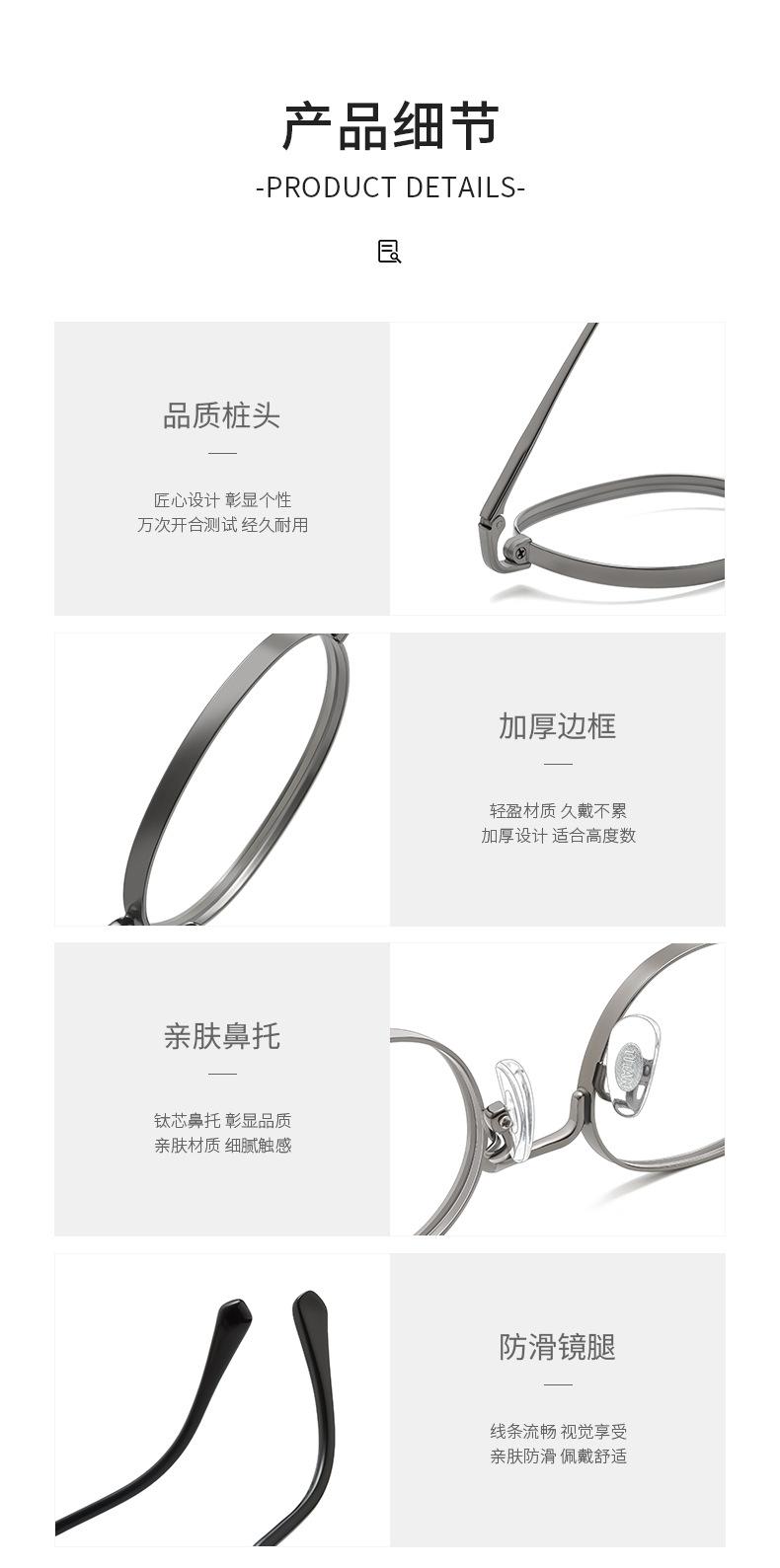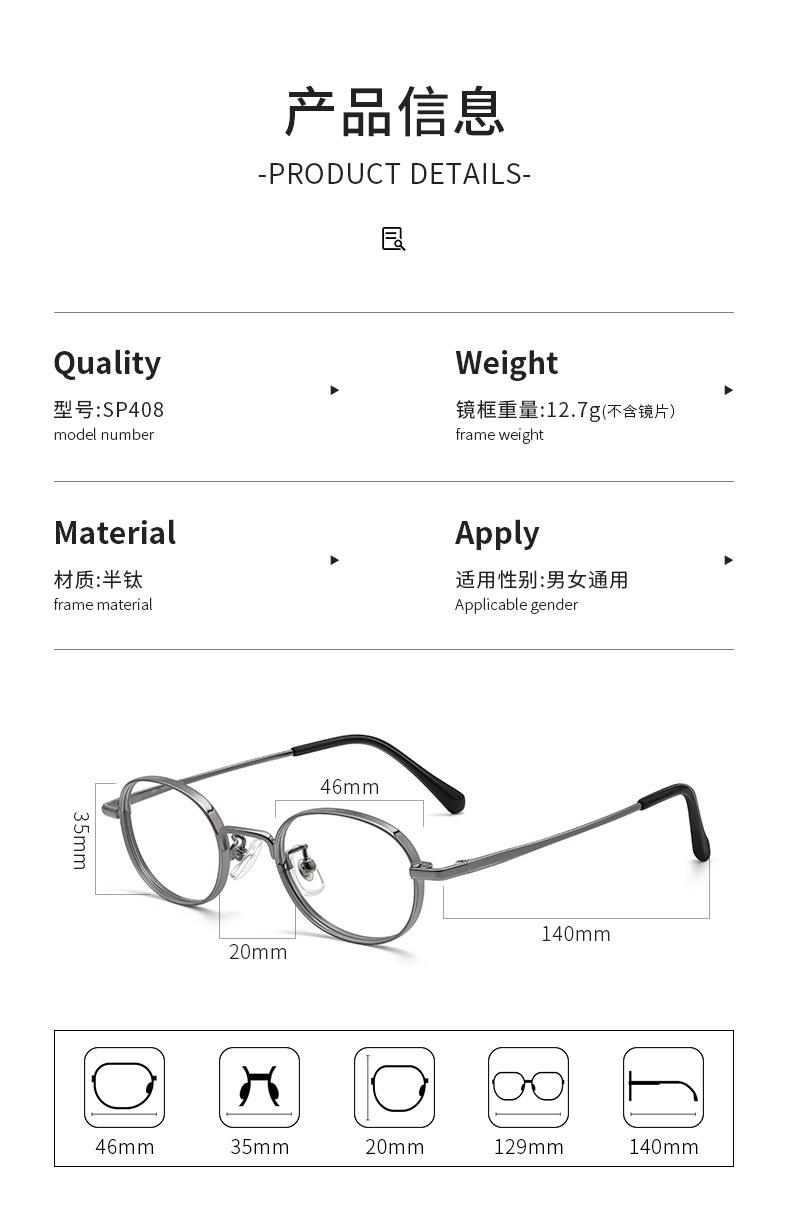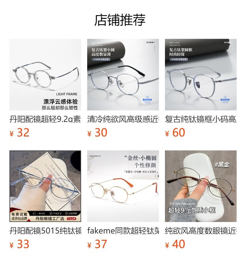 Montura de Titanio Puro Ultraligera Altura Ovalada Gafas para Miopía para Mujer S408P Gafas Danyang Montura de Gafas de Tamaño Pequeño Venta al por Mayor