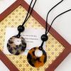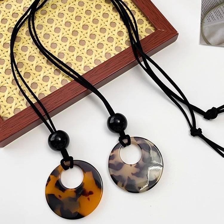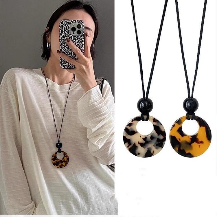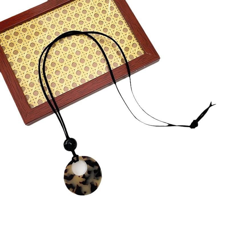 Collar con colgante redondo con estampado de leopardo y color de tortuga carey de estilo chino para mujer, con hebilla de seguridad, cordón largo, cadena de lana, accesorios.