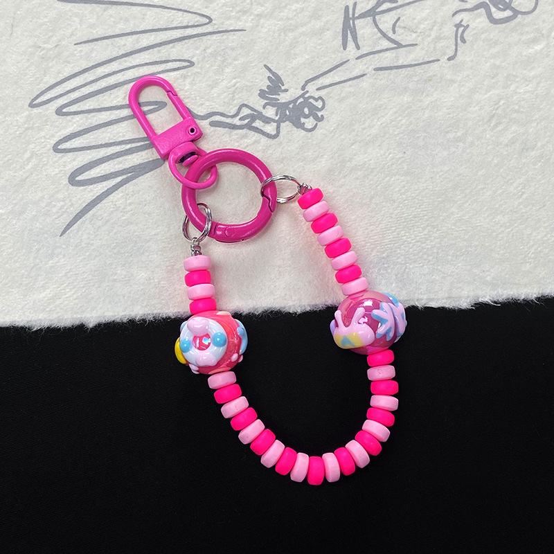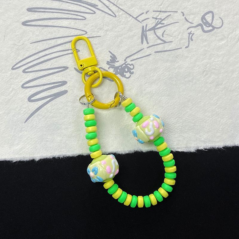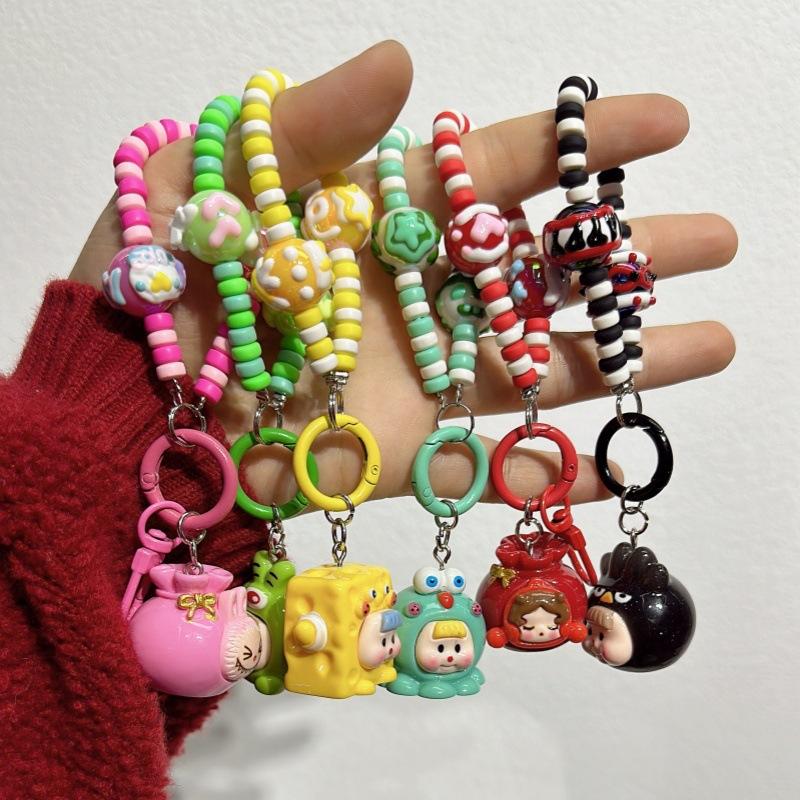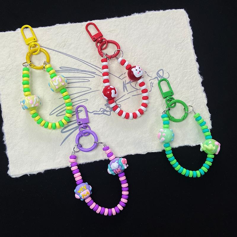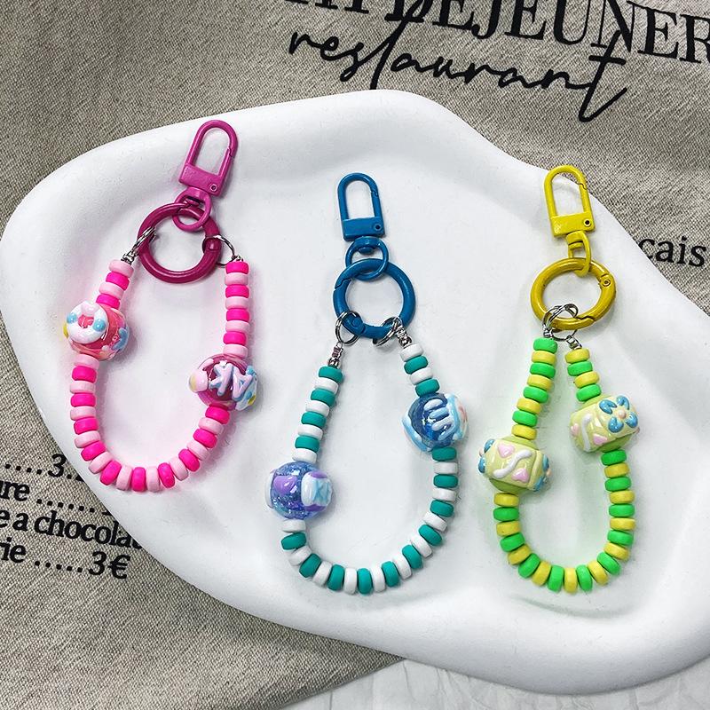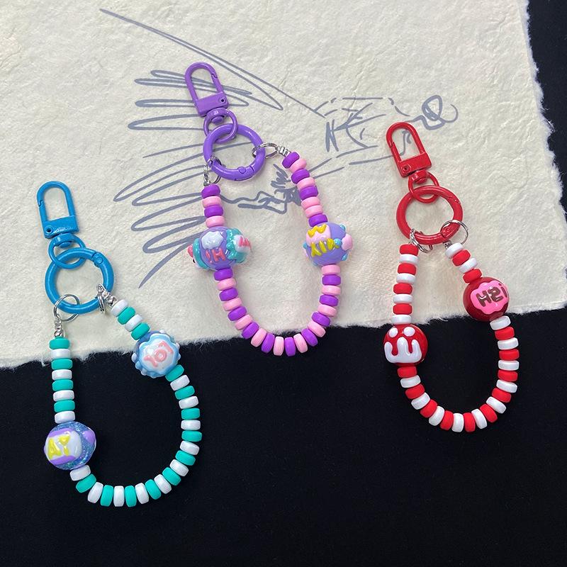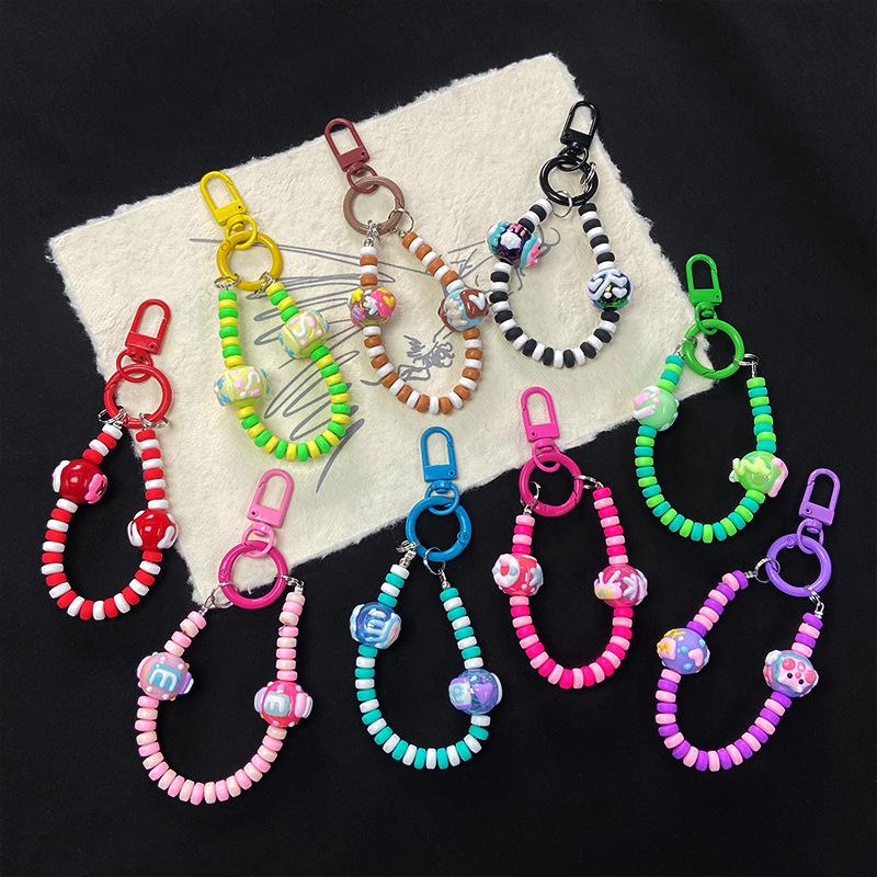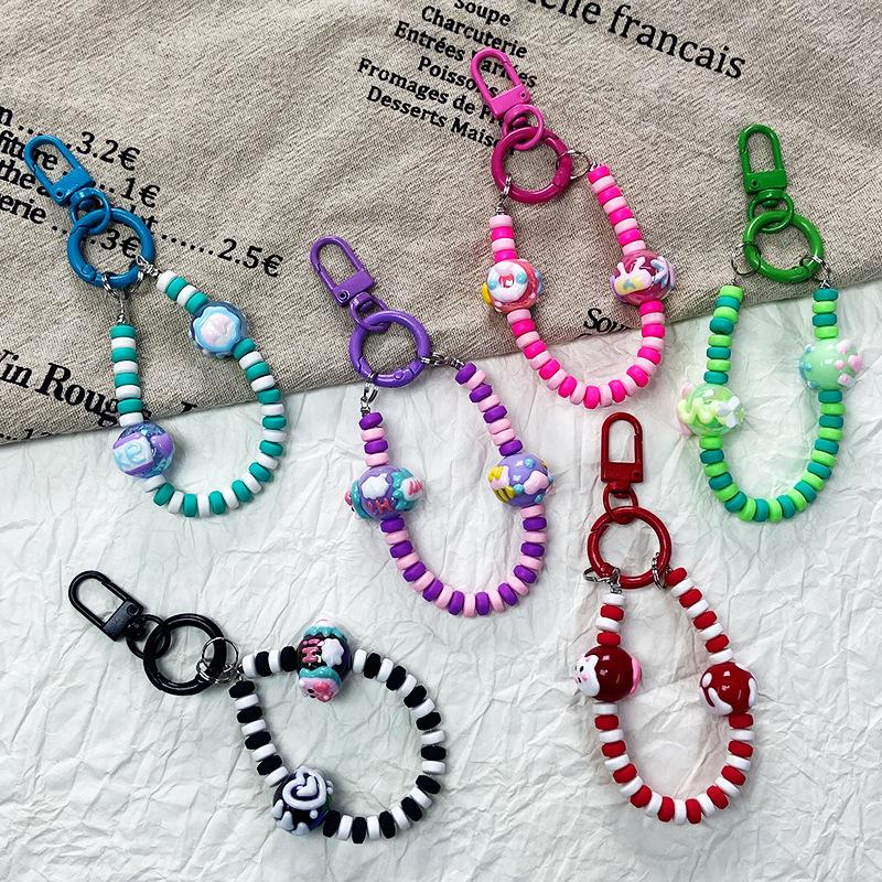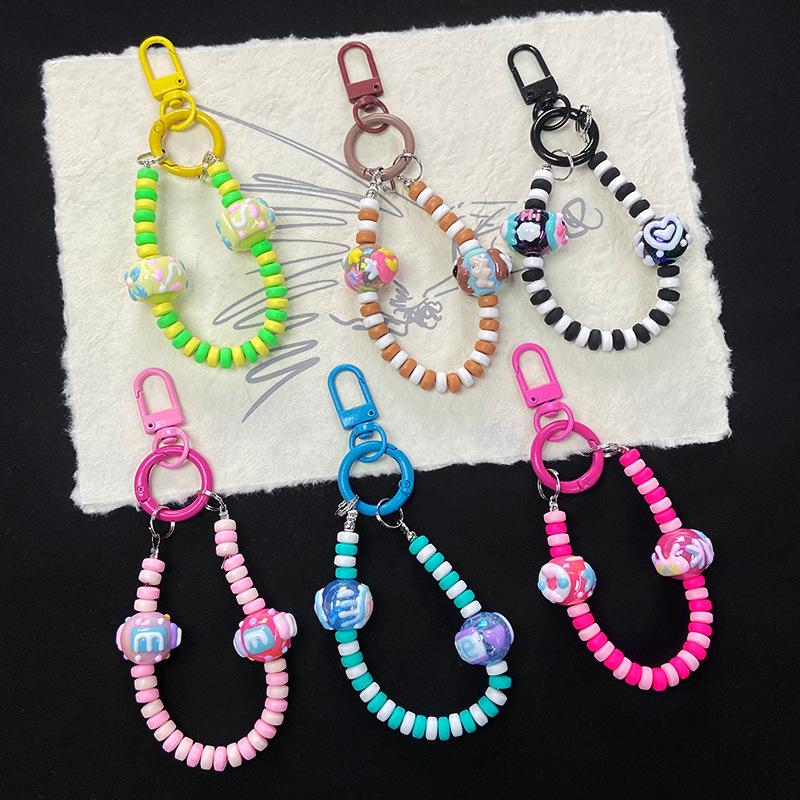 Pulsera colorida con grafiti pintado con dibujos animados, funda para teléfono móvil, cadena con lazo de cuentas, joyería, llavero, bolso, colgante pequeño