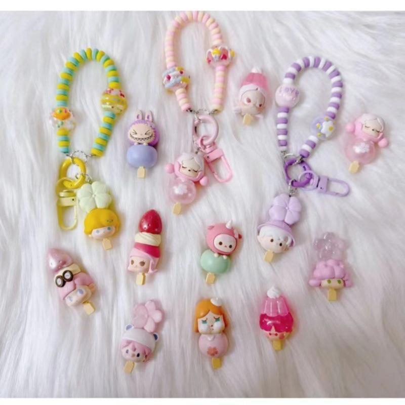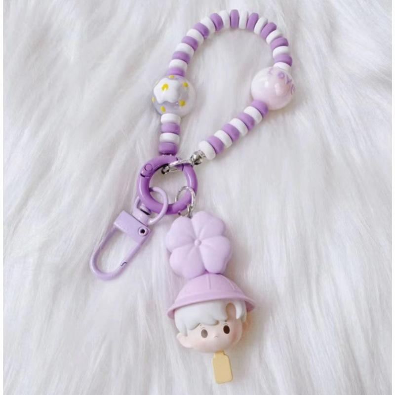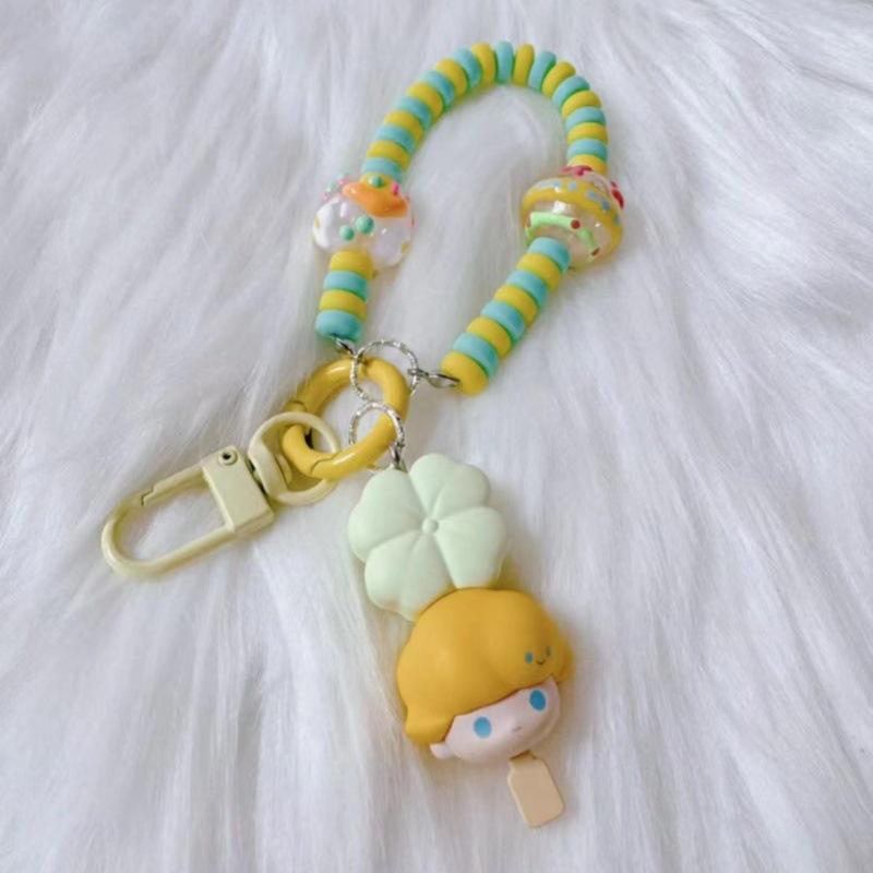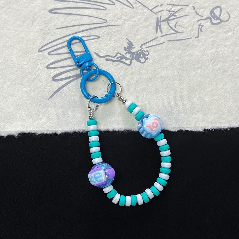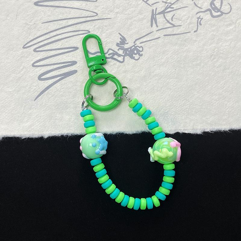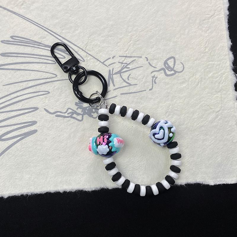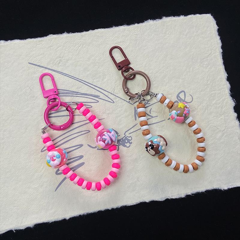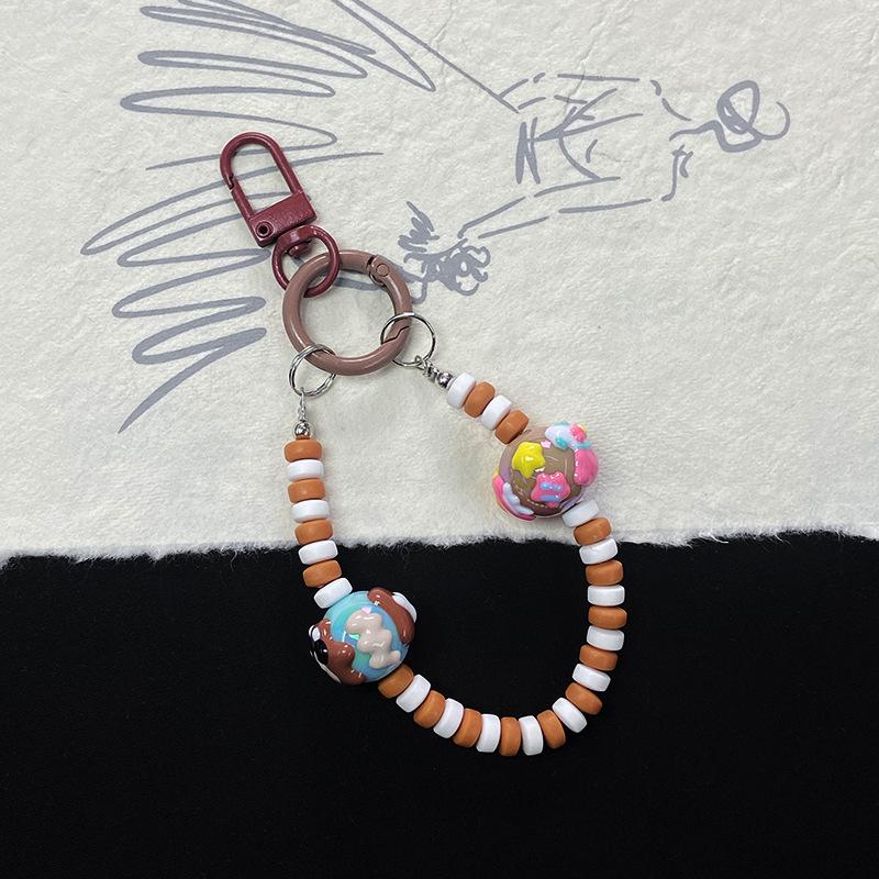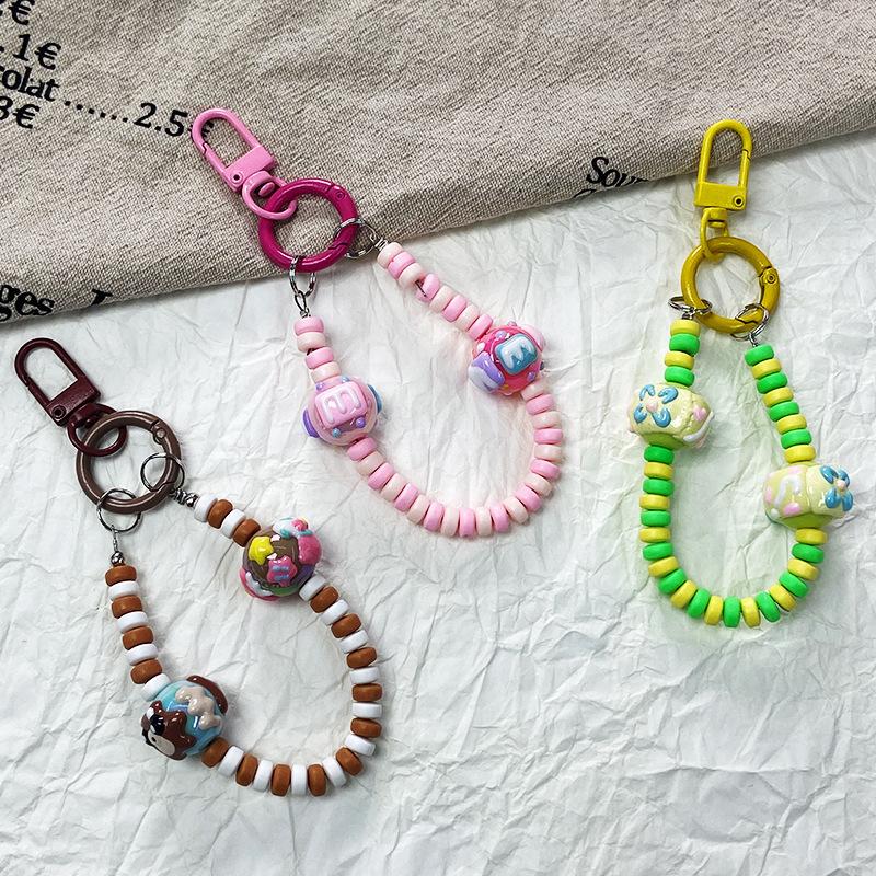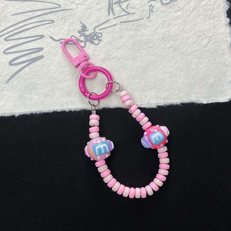 Pulsera colorida con grafiti pintado con dibujos animados, funda para teléfono móvil, cadena con lazo de cuentas, joyería, llavero, bolso, colgante pequeño