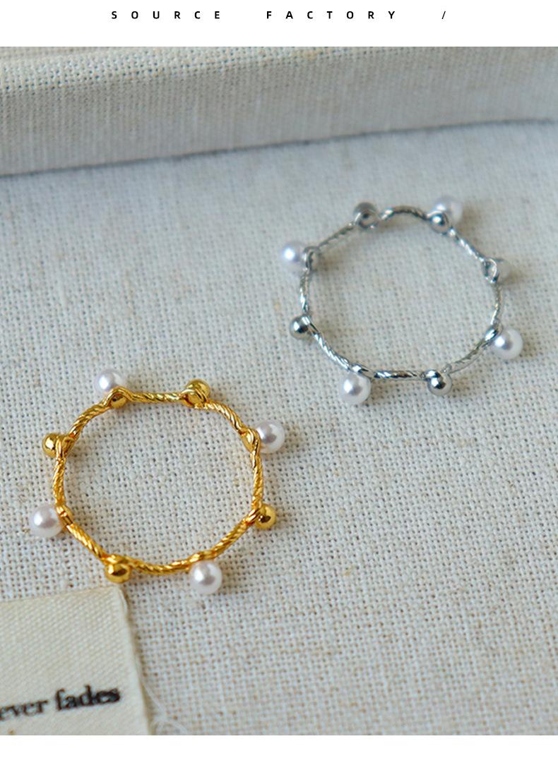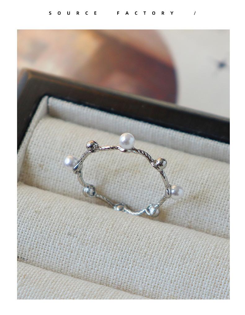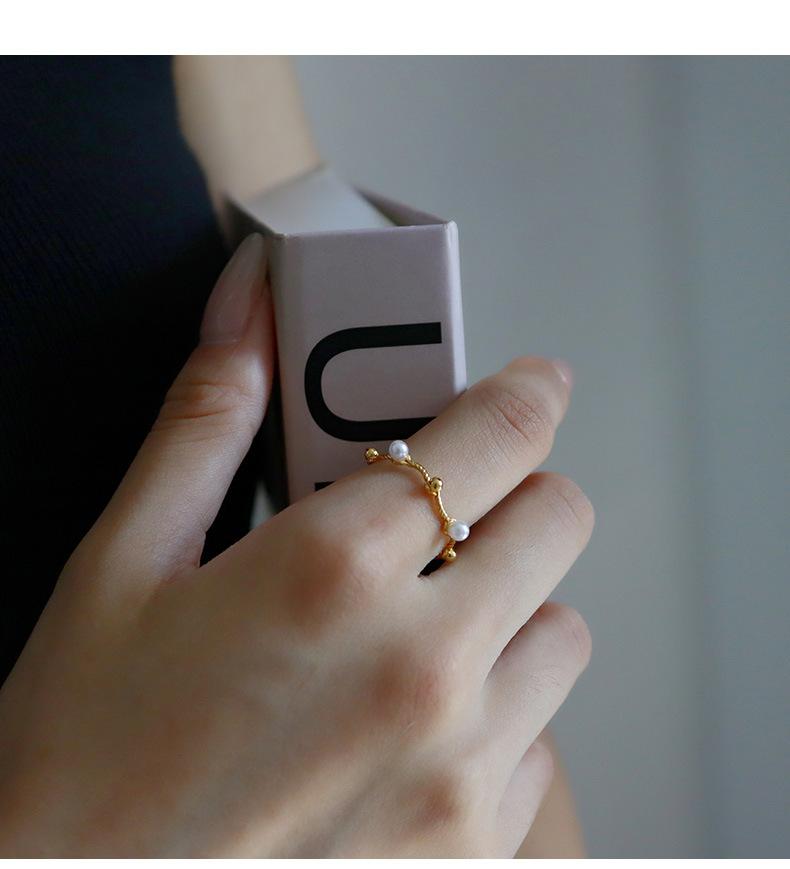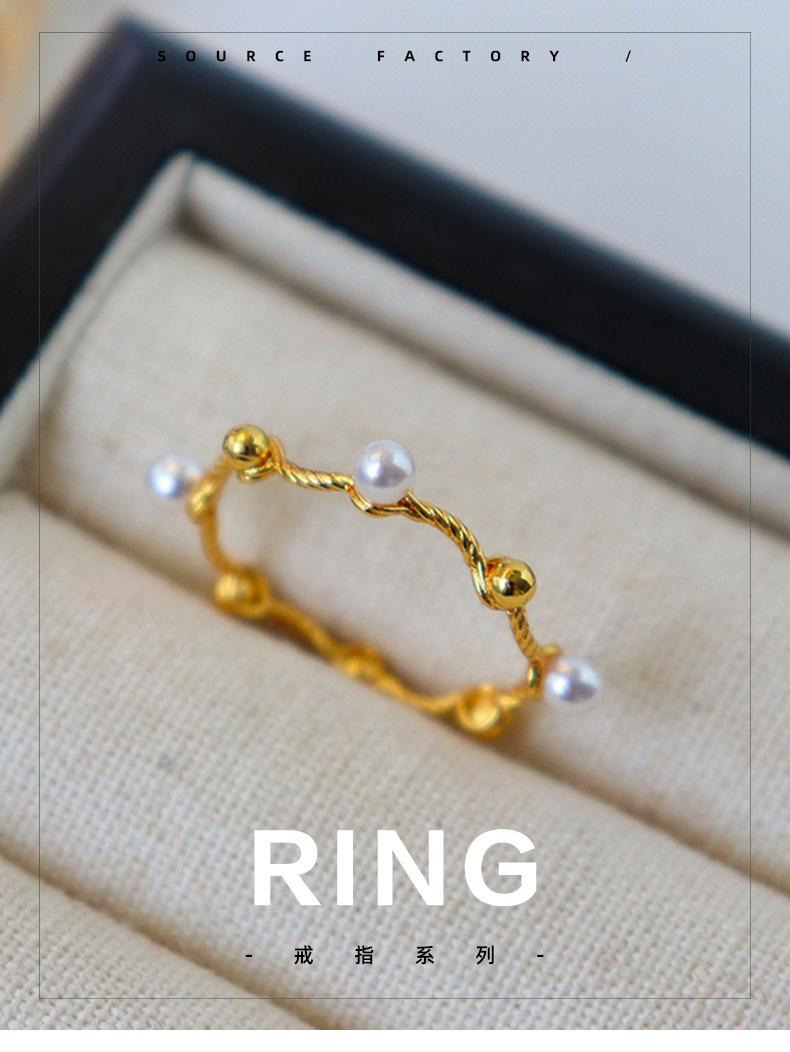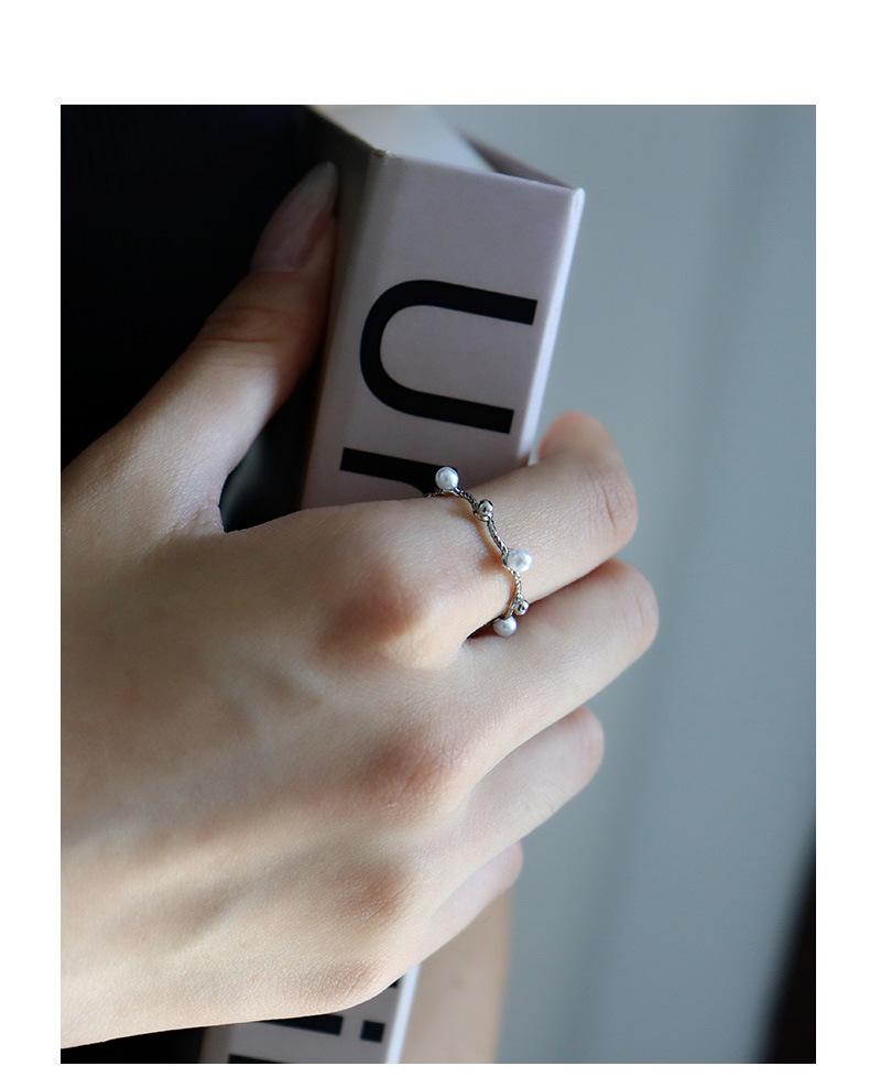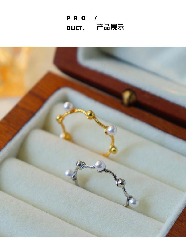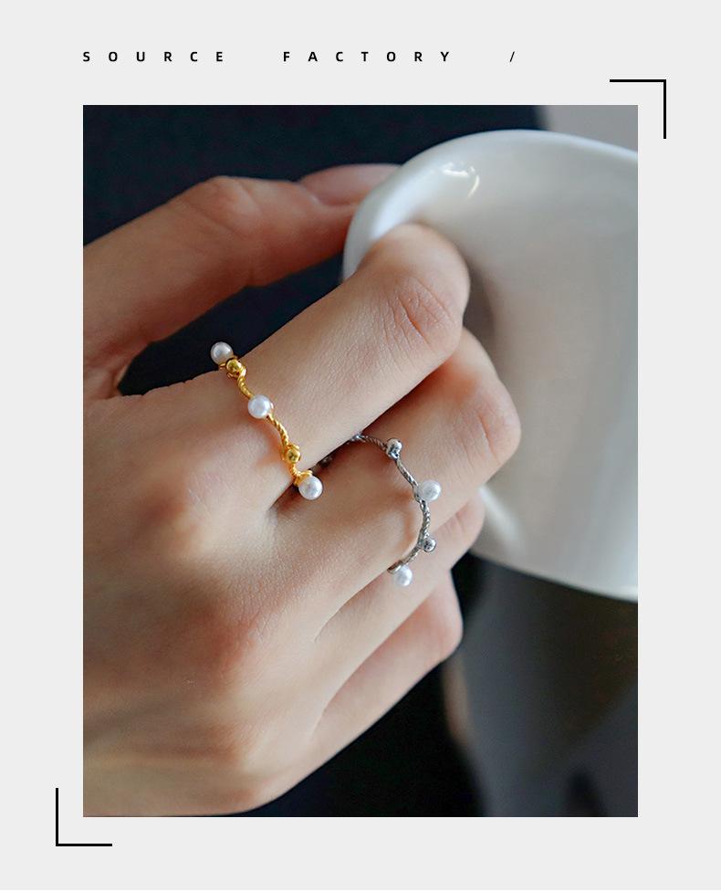 Moda Estilo Coreano Anillo Simple Torcido de Perlas para Mujer Nicho de Alta Gama Lujo Ligero Elegante Diseño Versátil Anillo Anillo