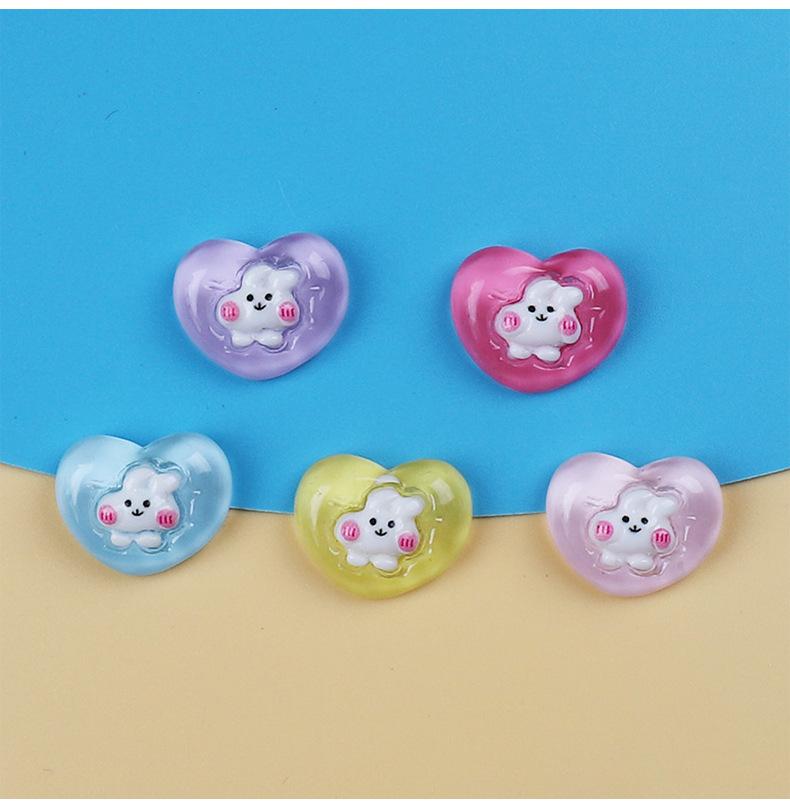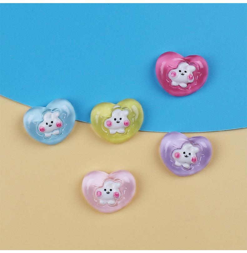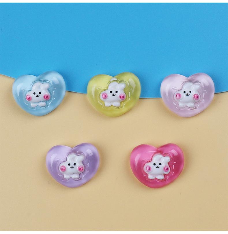 Pegamento en crema para bricolaje con forma de corazón de melocotón y conejo blanco, accesorios de resina para teléfono móvil, tocado, horquilla, hebilla de zapato, pegatina para taza de agua
