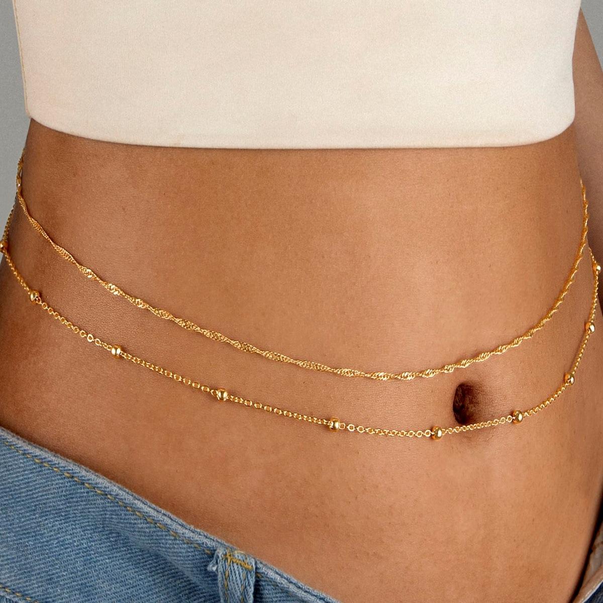 Gold single layer ball chain waist chain, Silver single layer ball chain waist chain, Gold double chain waist ...