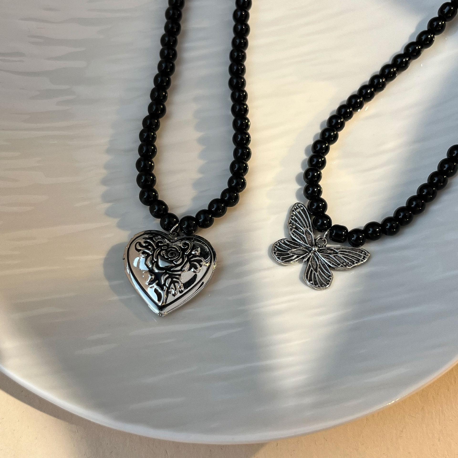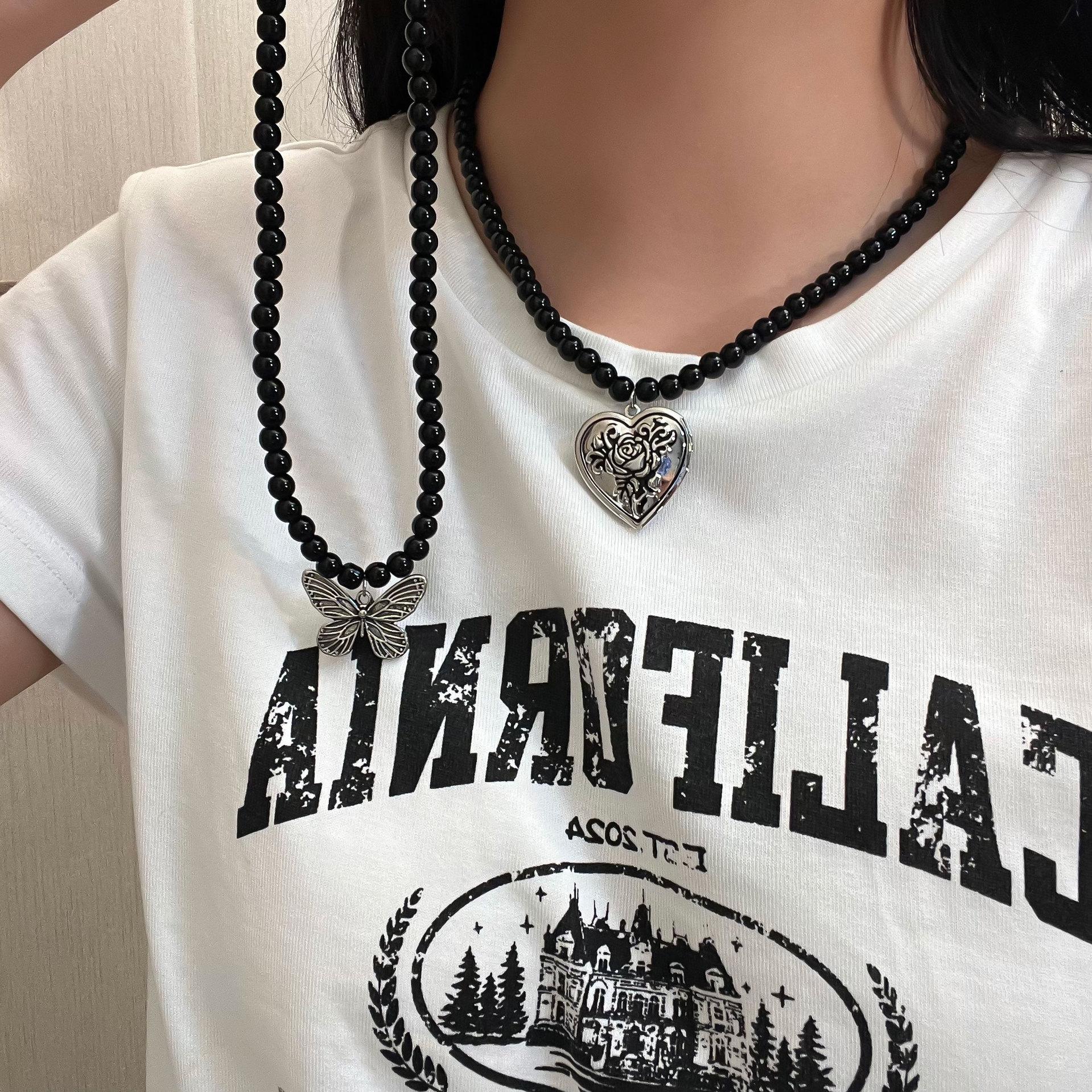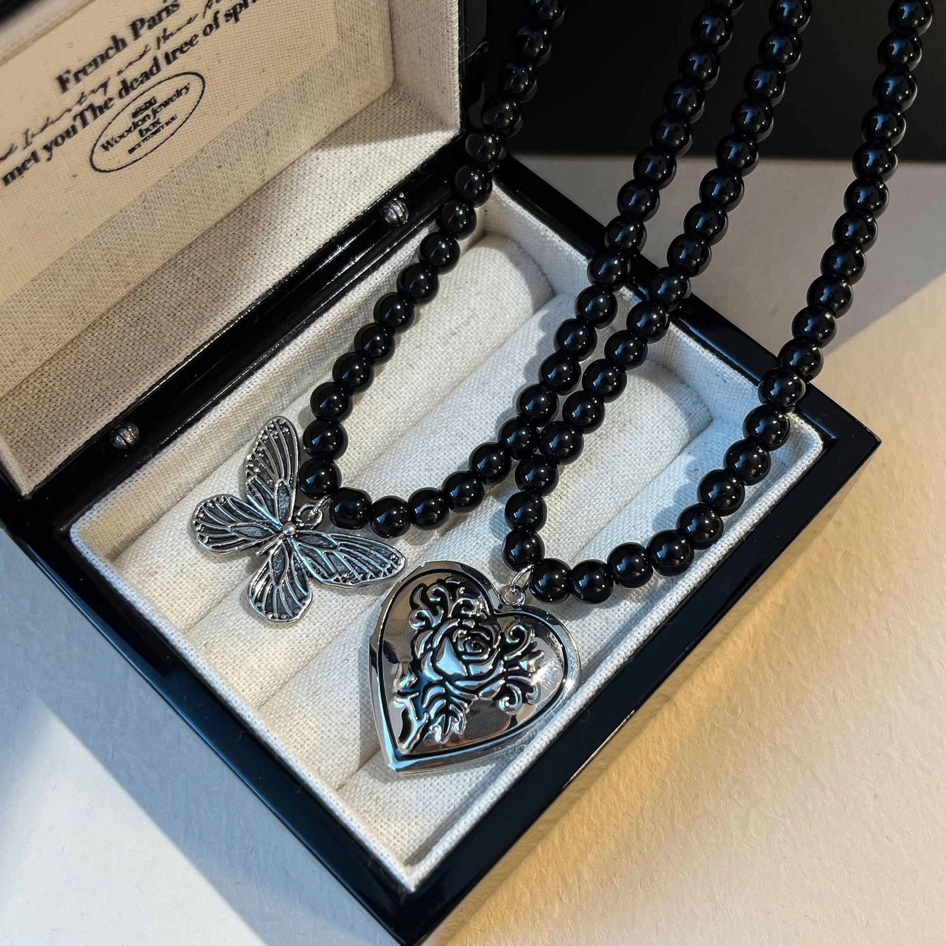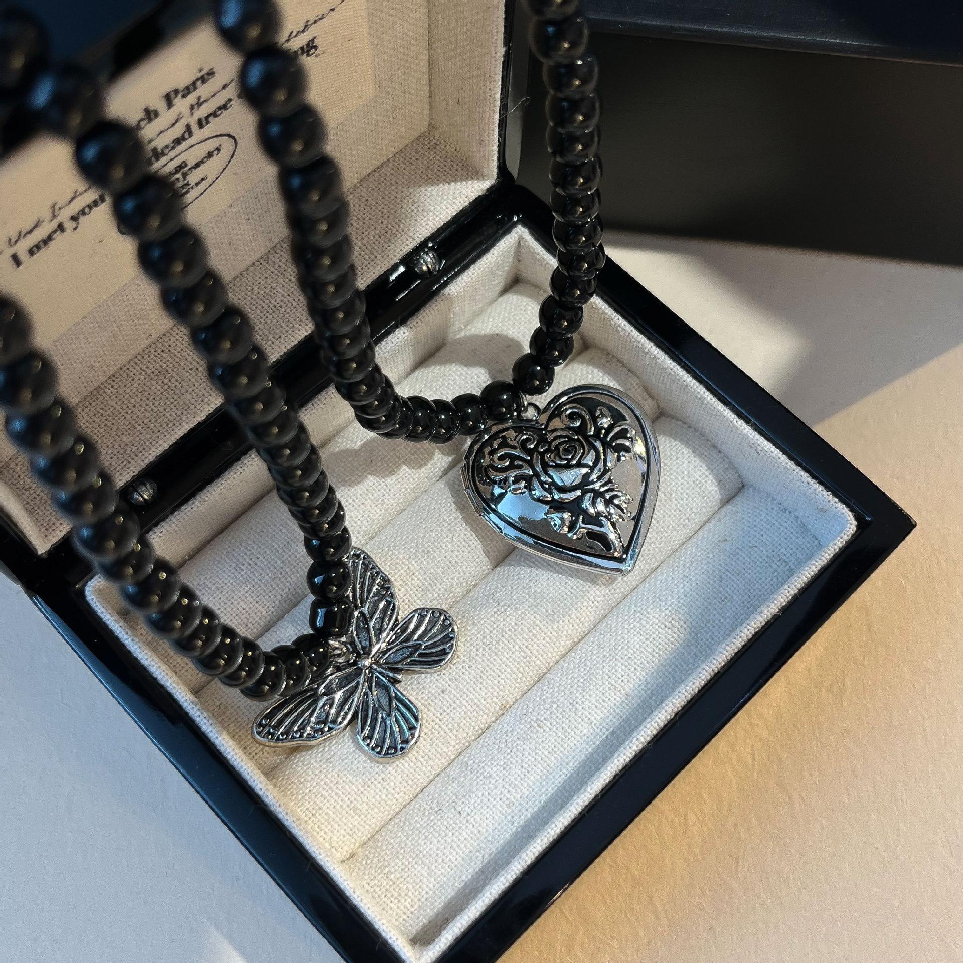Collar personalizado de moda para mujer, con colgante de mariposa, rosa y amor, estilo retro, con cuentas de cristal y temperamento.