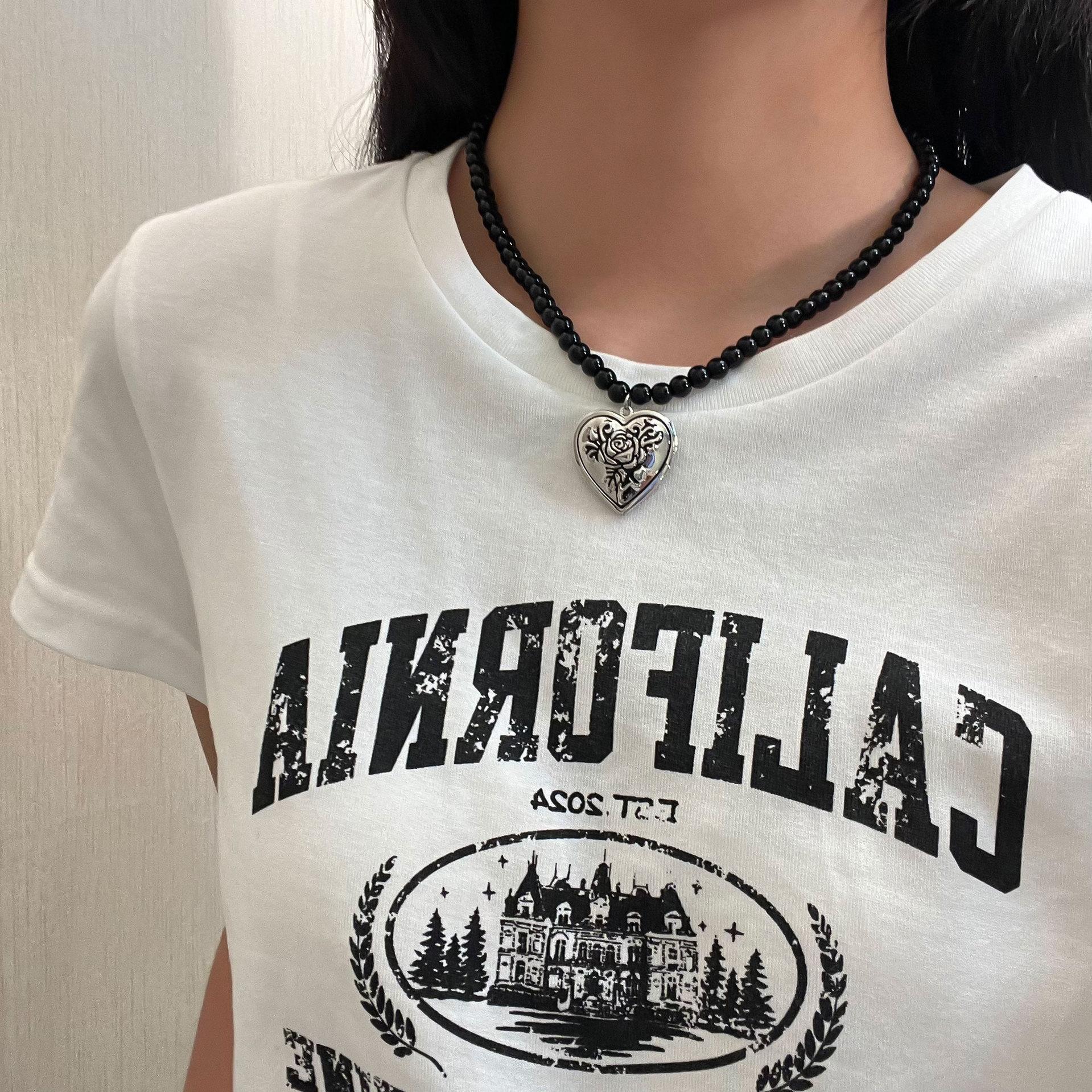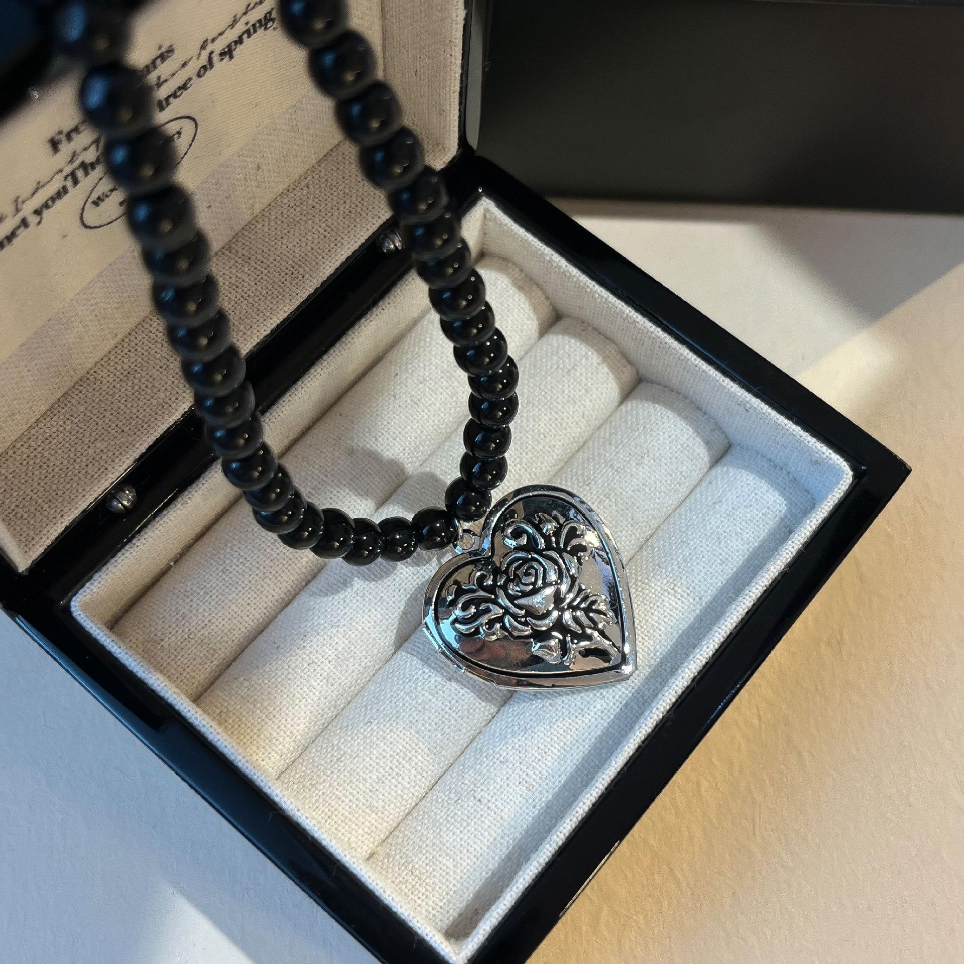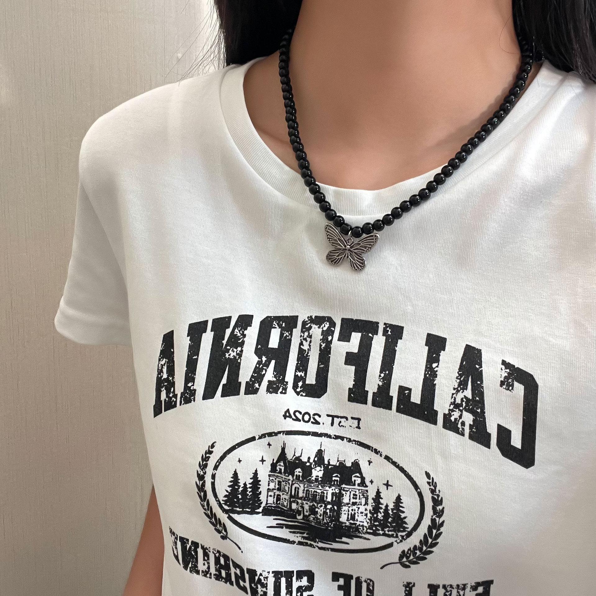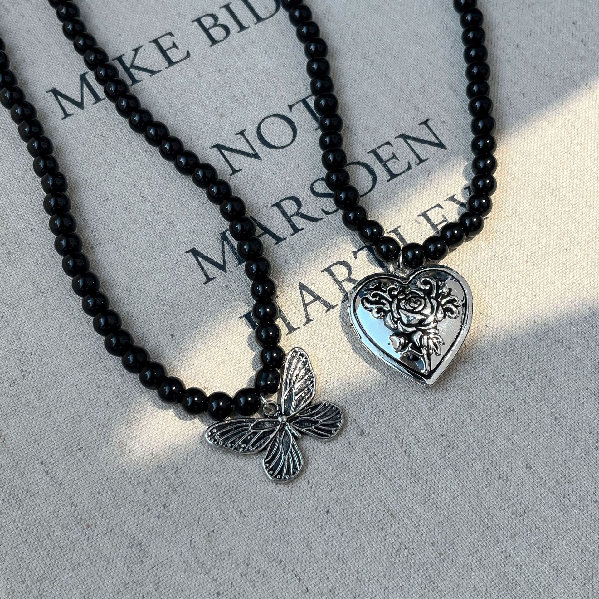 Collar personalizado de moda para mujer, con colgante de mariposa, rosa y amor, estilo retro, con cuentas de cristal y temperamento.