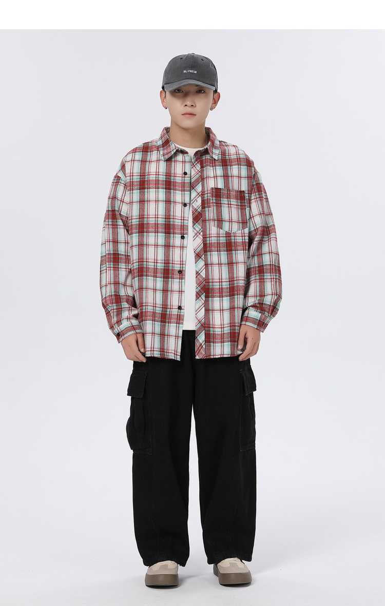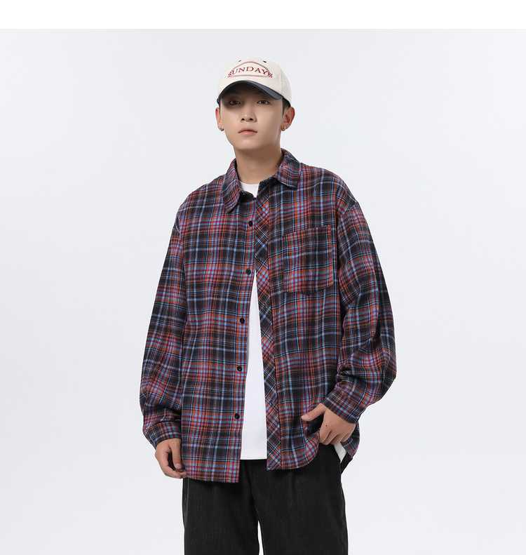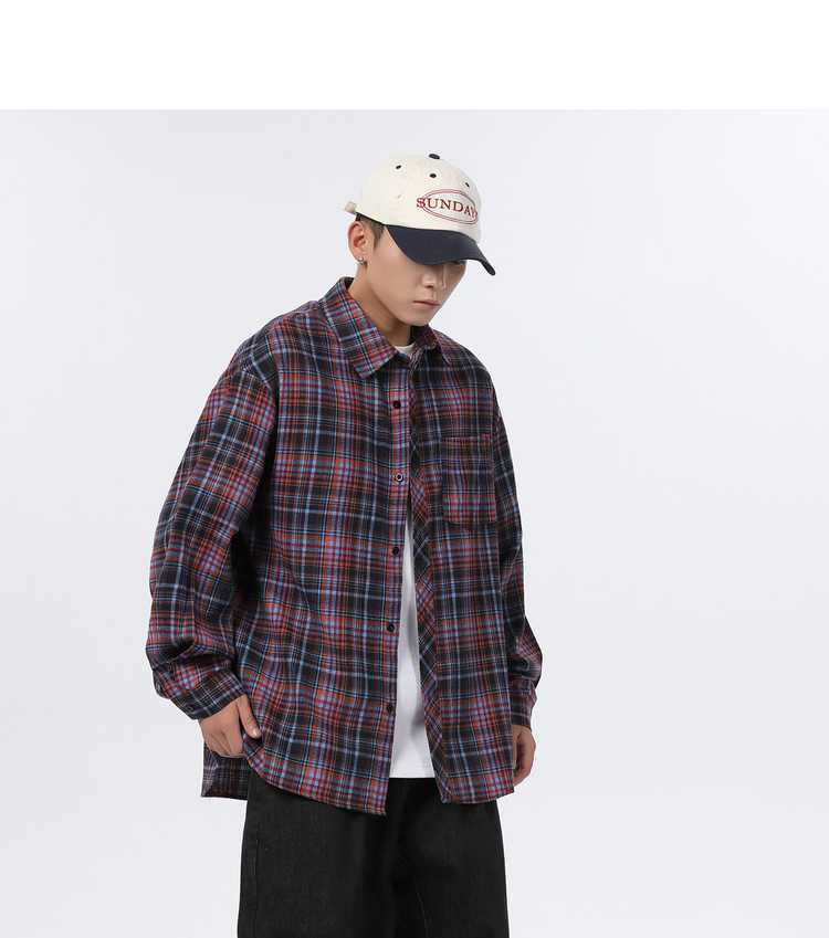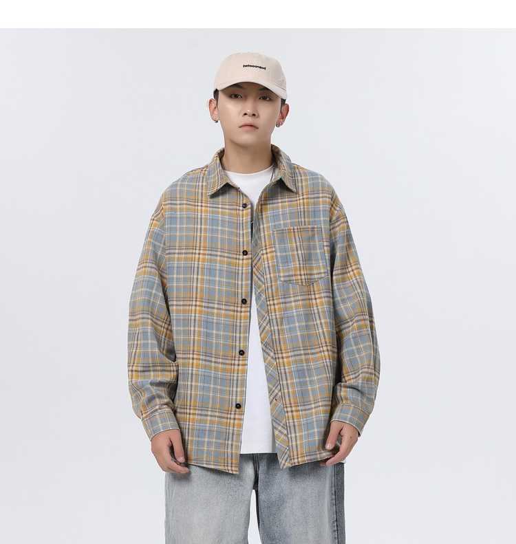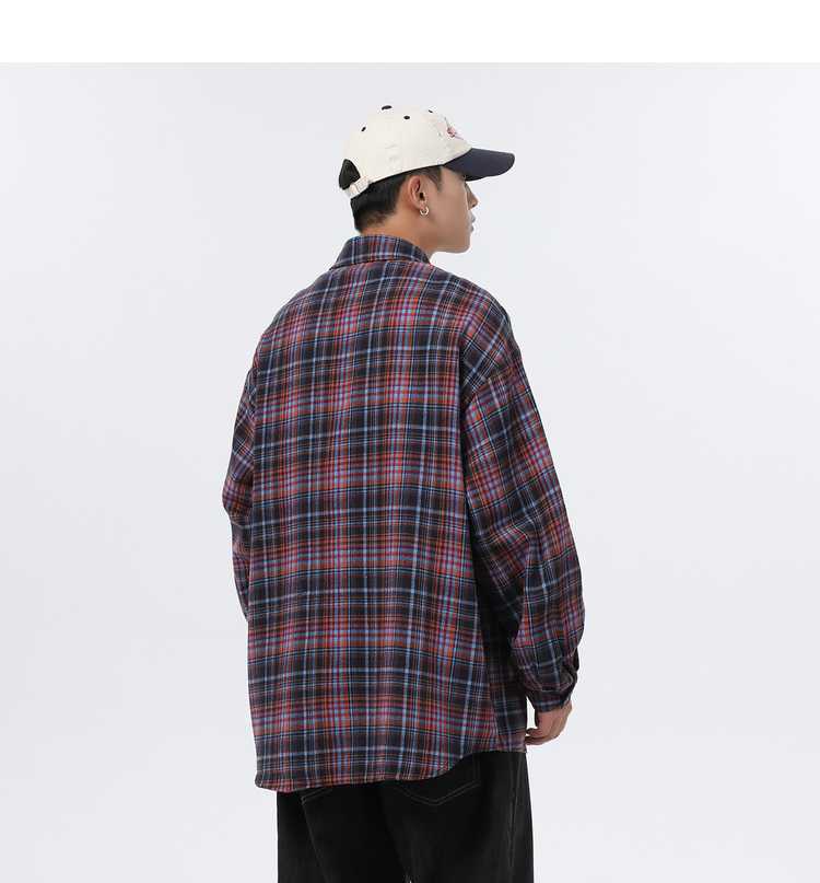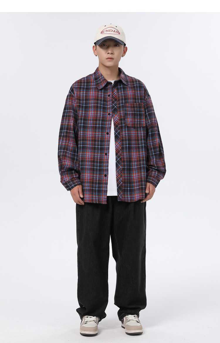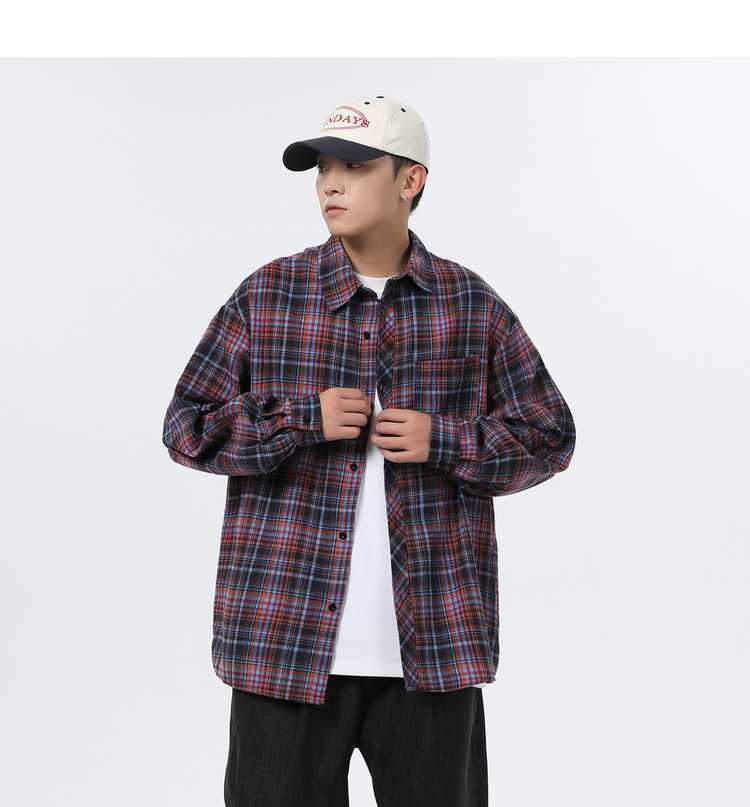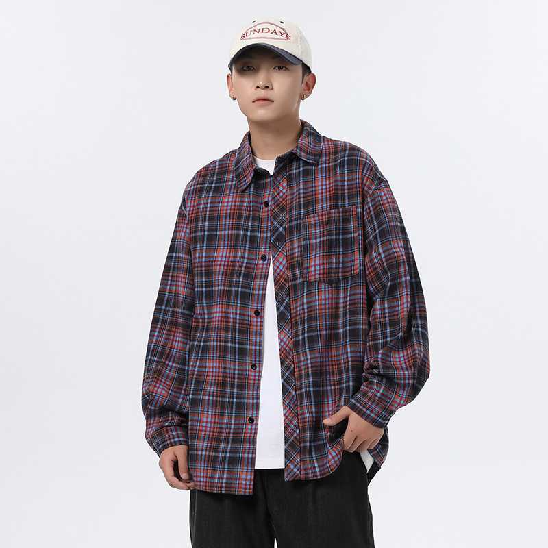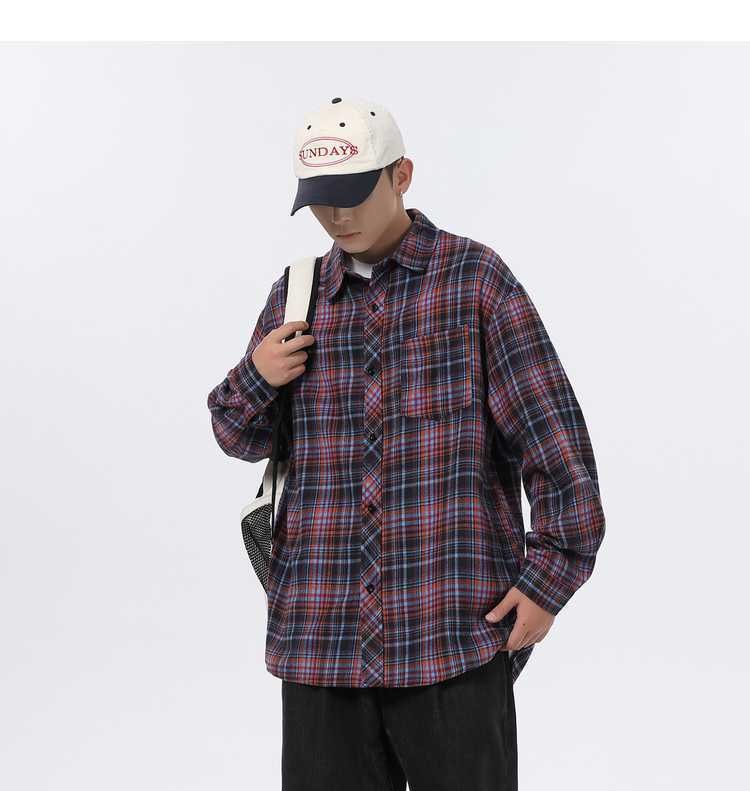 Camisa a cuadros de manga larga estilo americano vintage de otoño para mujer, nueva blusa holgada de nicho 2024