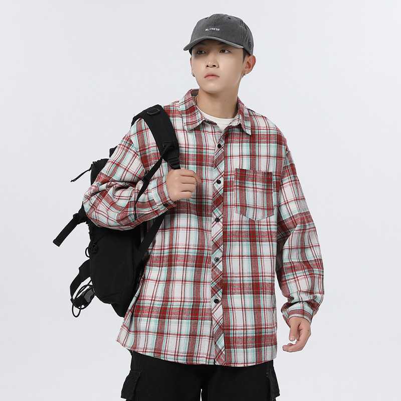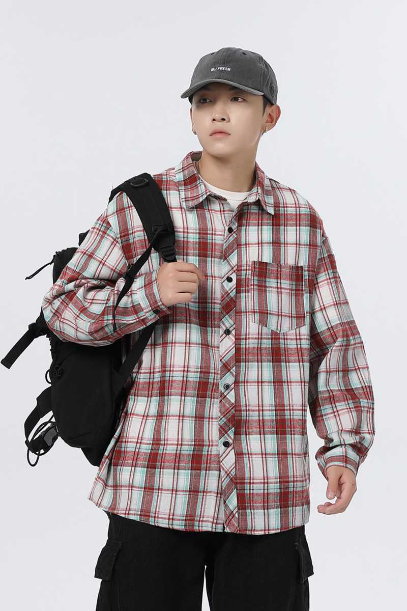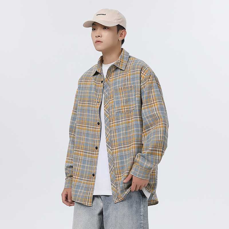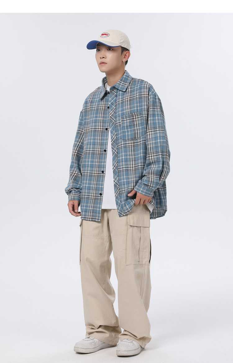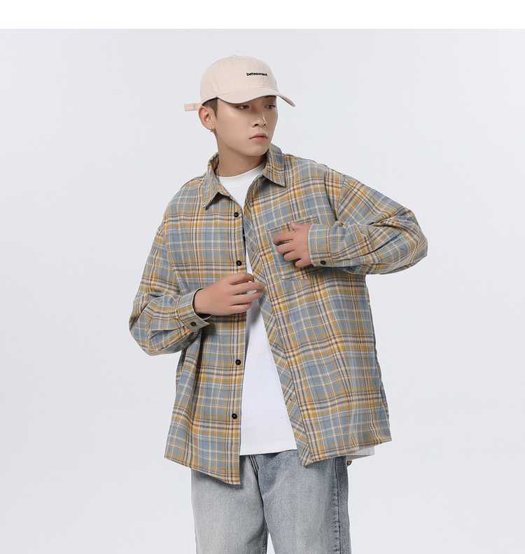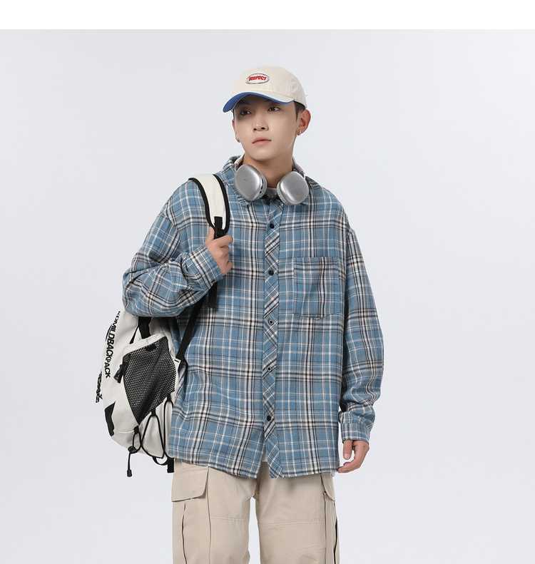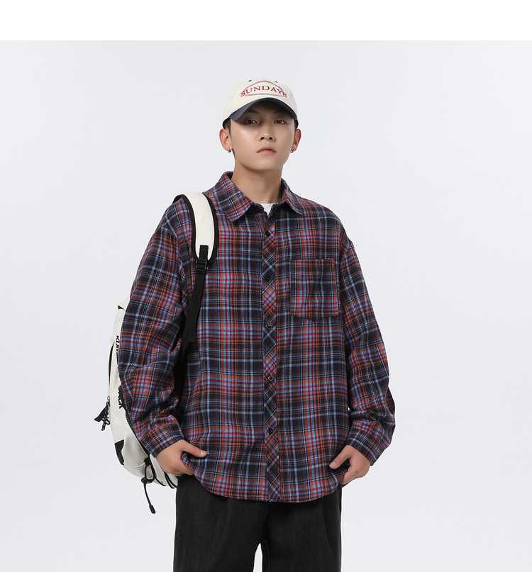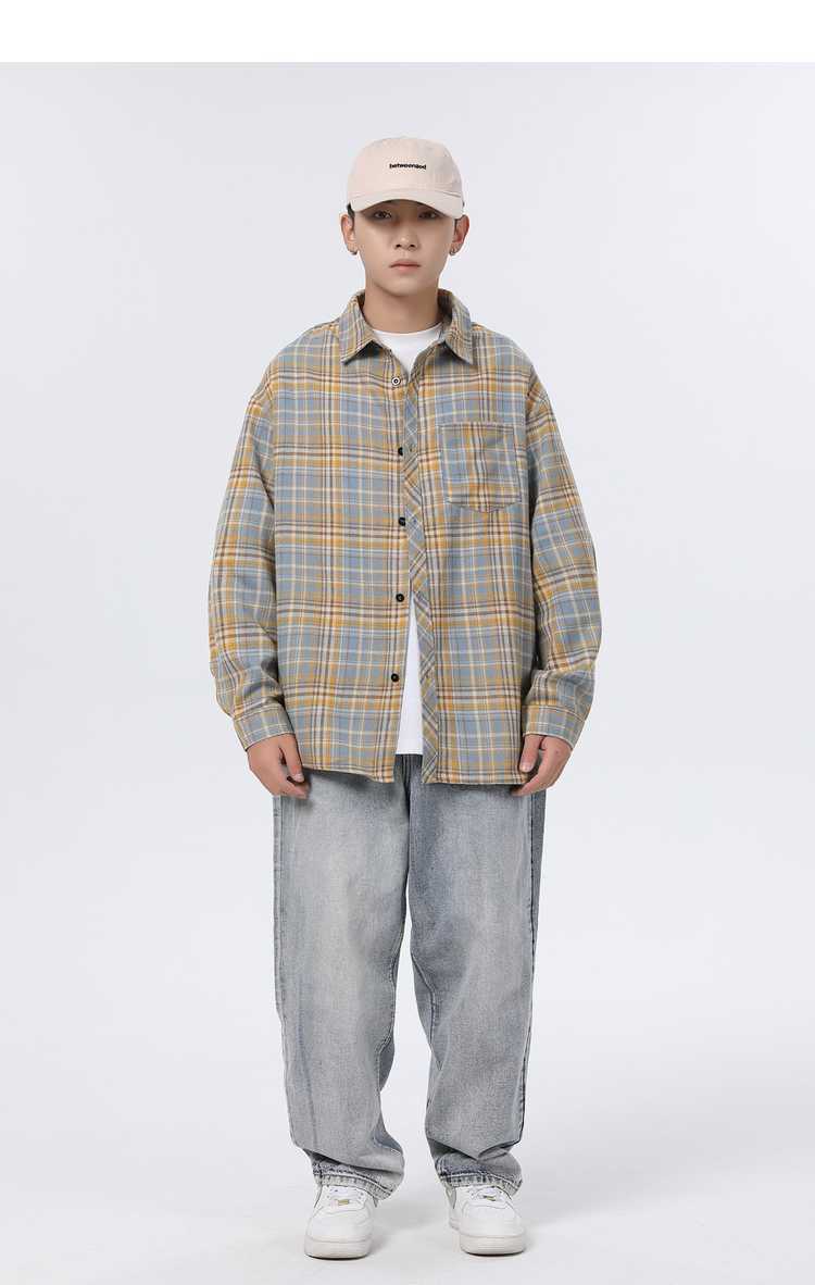 Camisa a cuadros de manga larga estilo americano vintage de otoño para mujer, nueva blusa holgada de nicho 2024