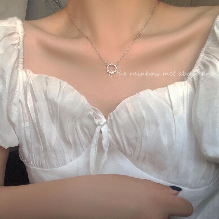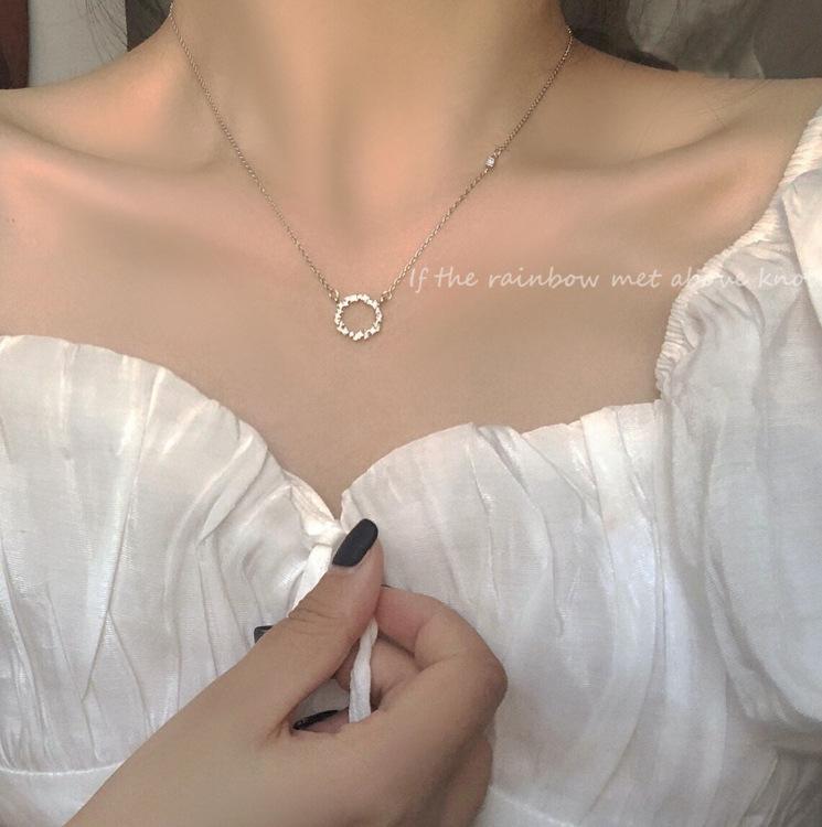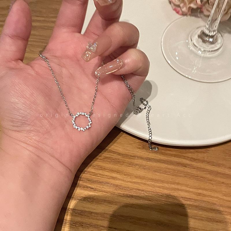 Collar de circonitas circulares simples para mujer, cadena de clavícula de verano, diseño de nicho de lujo ligero de alta calidad, elegante cadena para el cuello