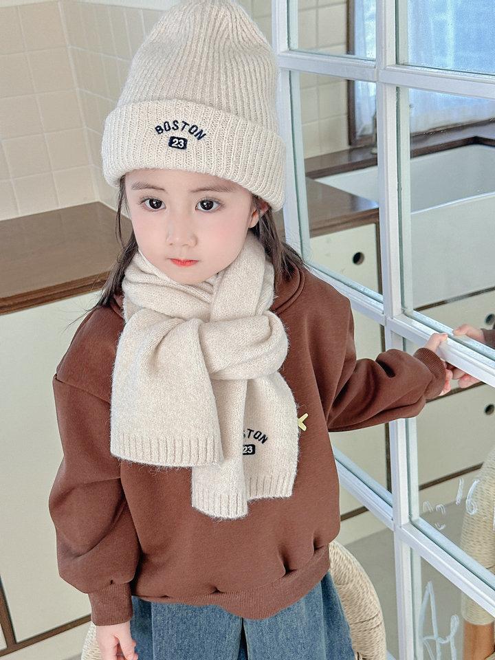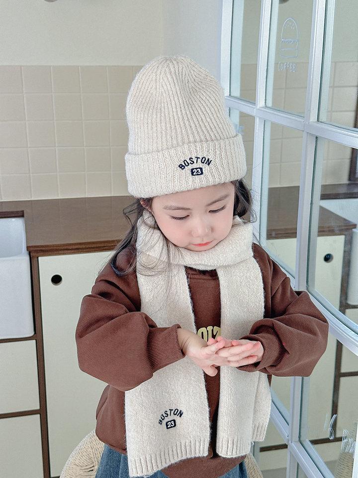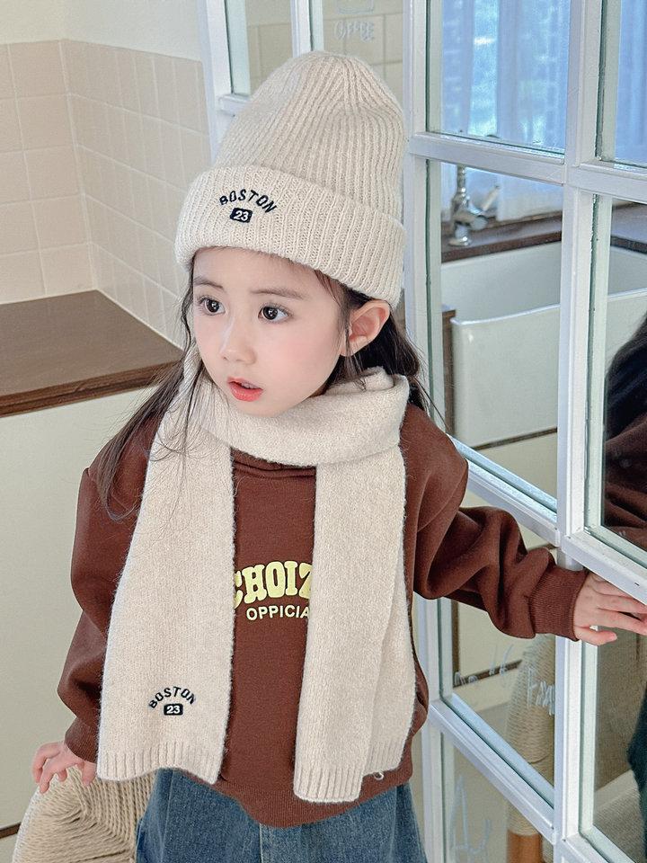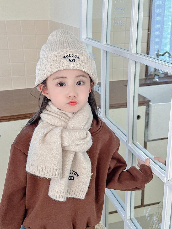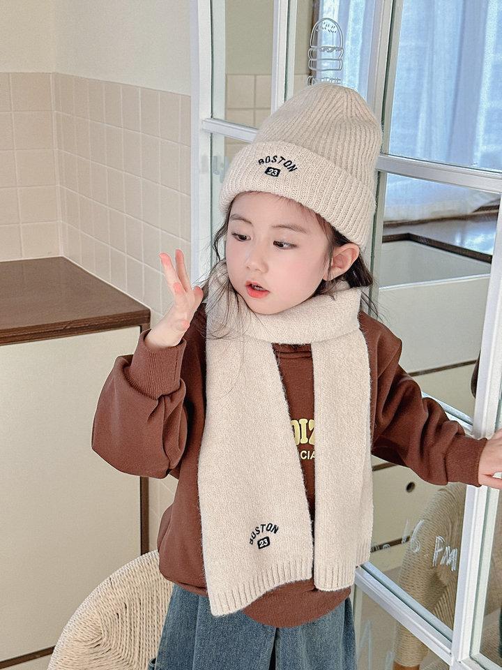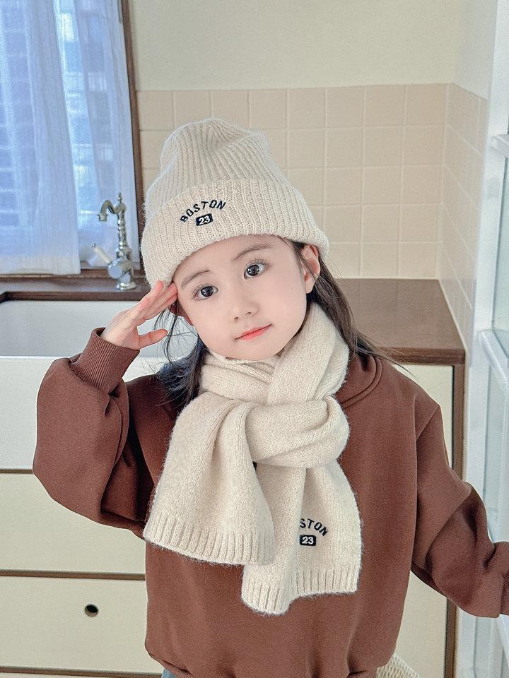 Conjunto de dos piezas de gorro y bufanda de punto para niños, invierno, nuevo, para hombre y mujer, gorro y bufanda de lana cálidos bordados para bebés.