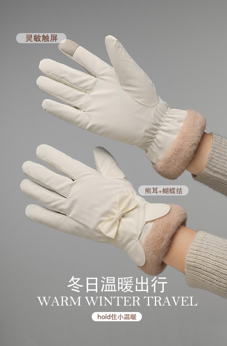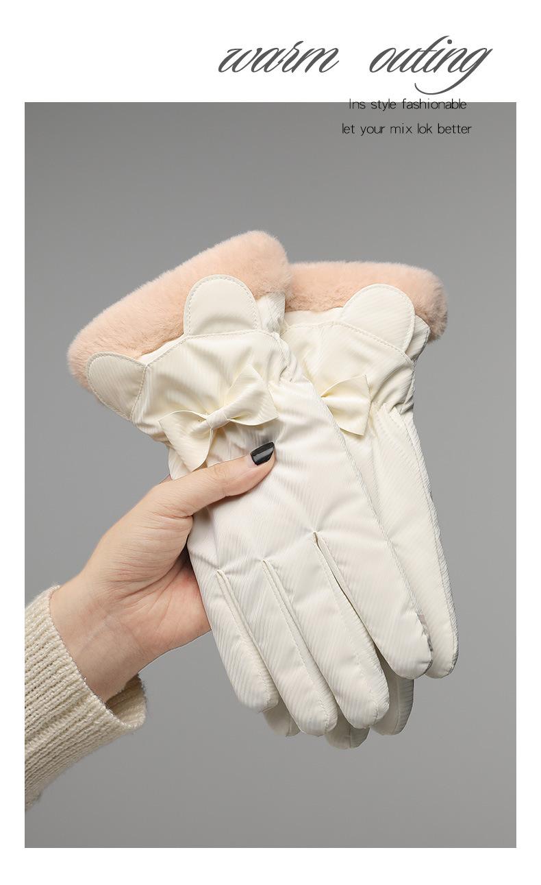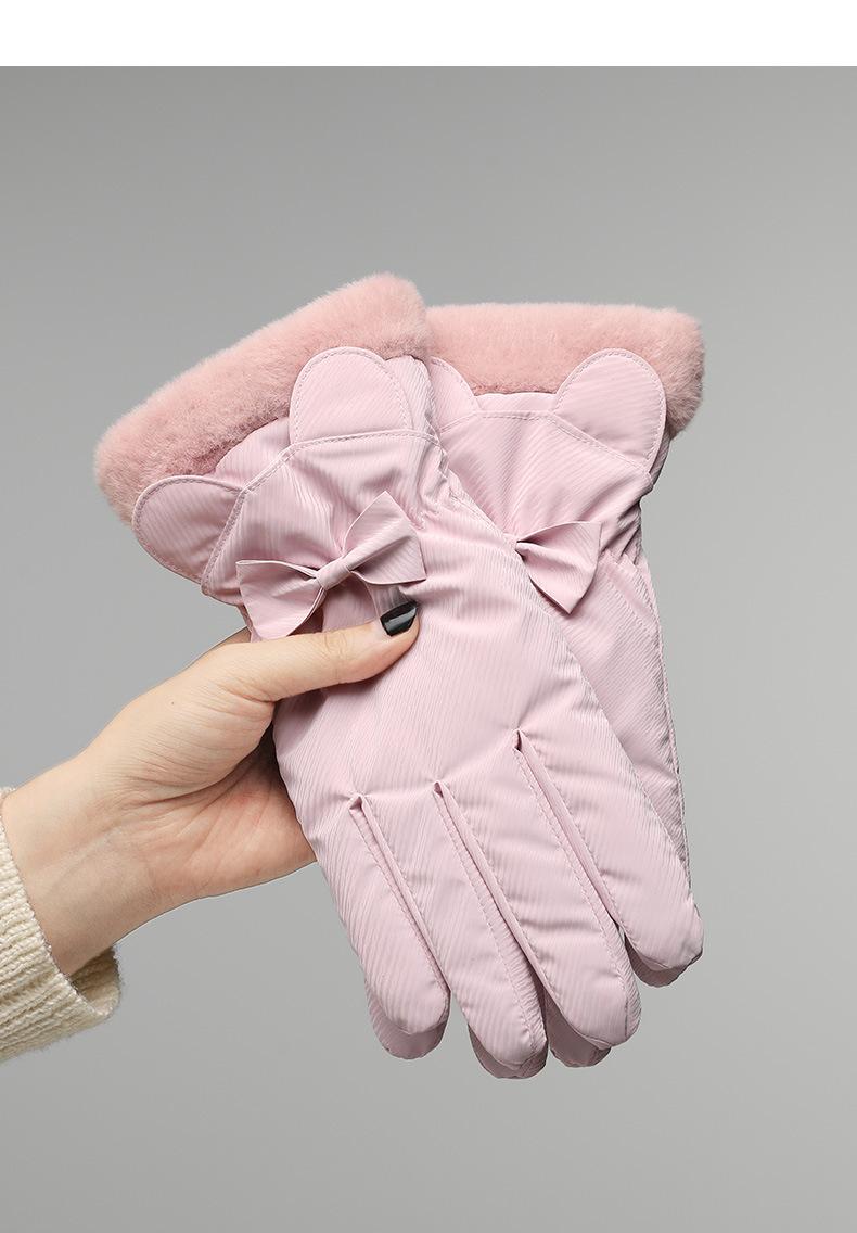 Guantes de Invierno de Terciopelo para Mujer Son Cálidos y Gruesos con Pantalla Táctil, Guantes Lindos para Ciclismo de Estudiante, Guantes de Algodón con Plumón a Prueba de Frío y Repelentes al Agua