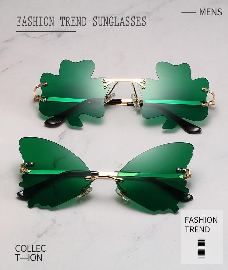 Calle. Gafas de sol irlandesas con forma de trébol de cuatro hojas para el Día de San Patricio Gafas de sol de elfo verde HOJAS Gafas de sol con forma de trébol de cuatro hojas