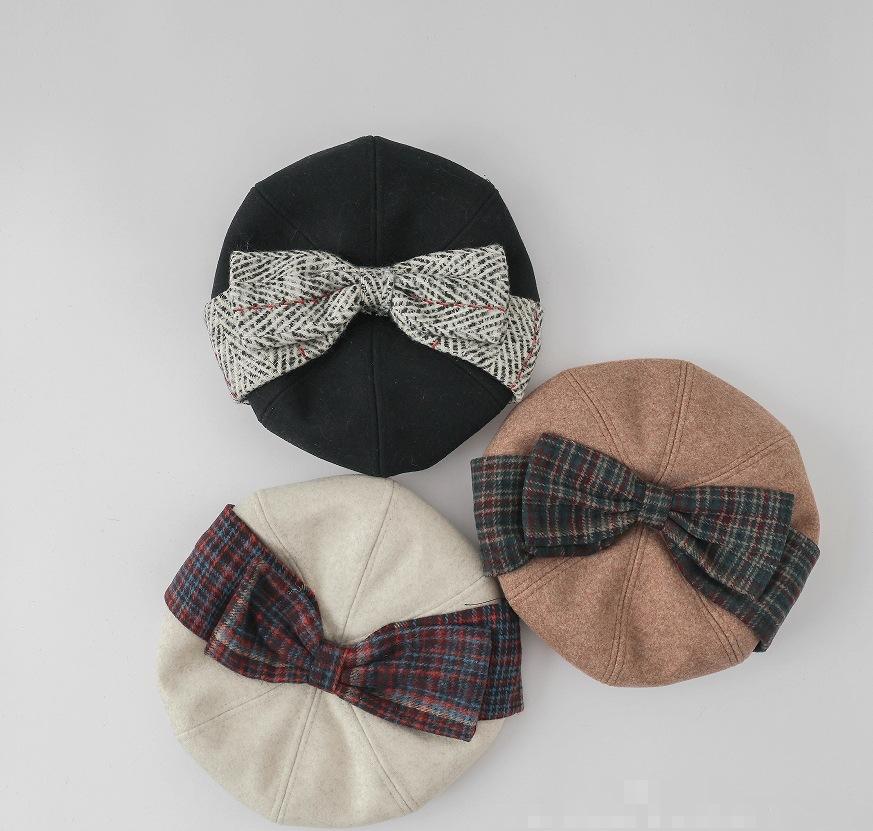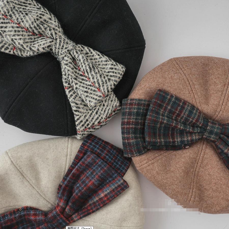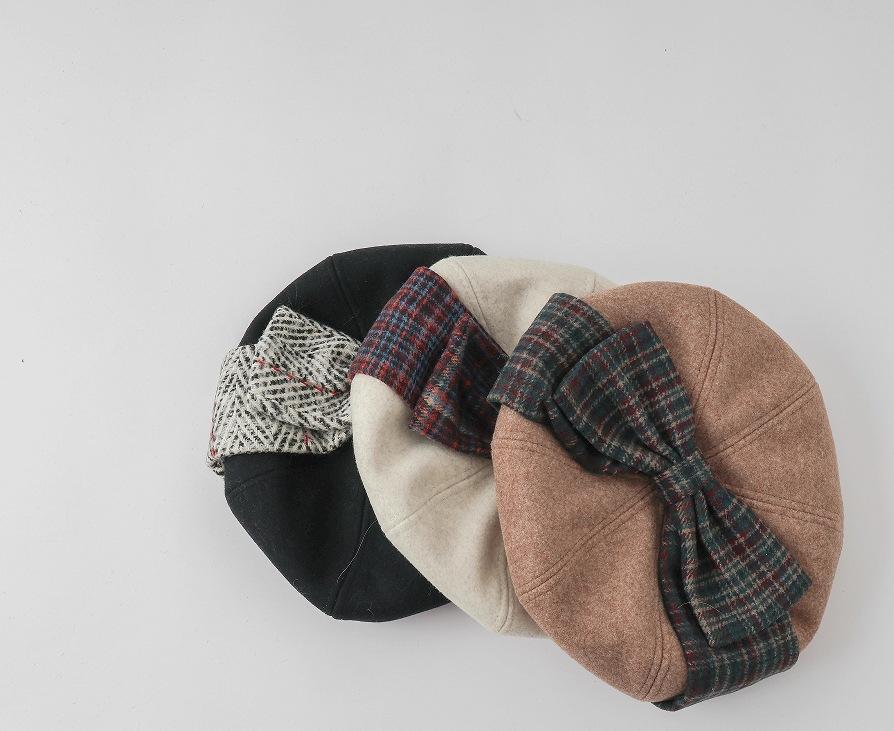 Plaid bow beret-black, Plaid bow beret-beige, Plaid bow beret-khaki