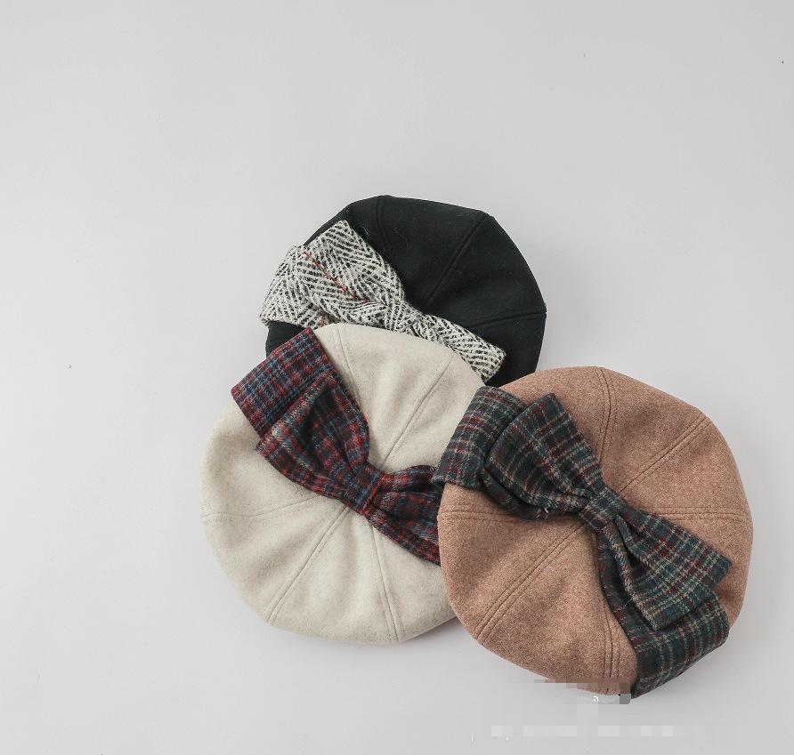 Boina Otoño e Invierno Nueva Lana Boina de Pintor a Cuadros con Lazo Grande Moda Combinable Sombrero Dulce Lindo Mujer