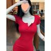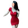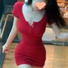 Deseo puro estilo cuello en V adelgazante falda tubo ropa de chica caliente falda corta elegante vestido rojo ajustado