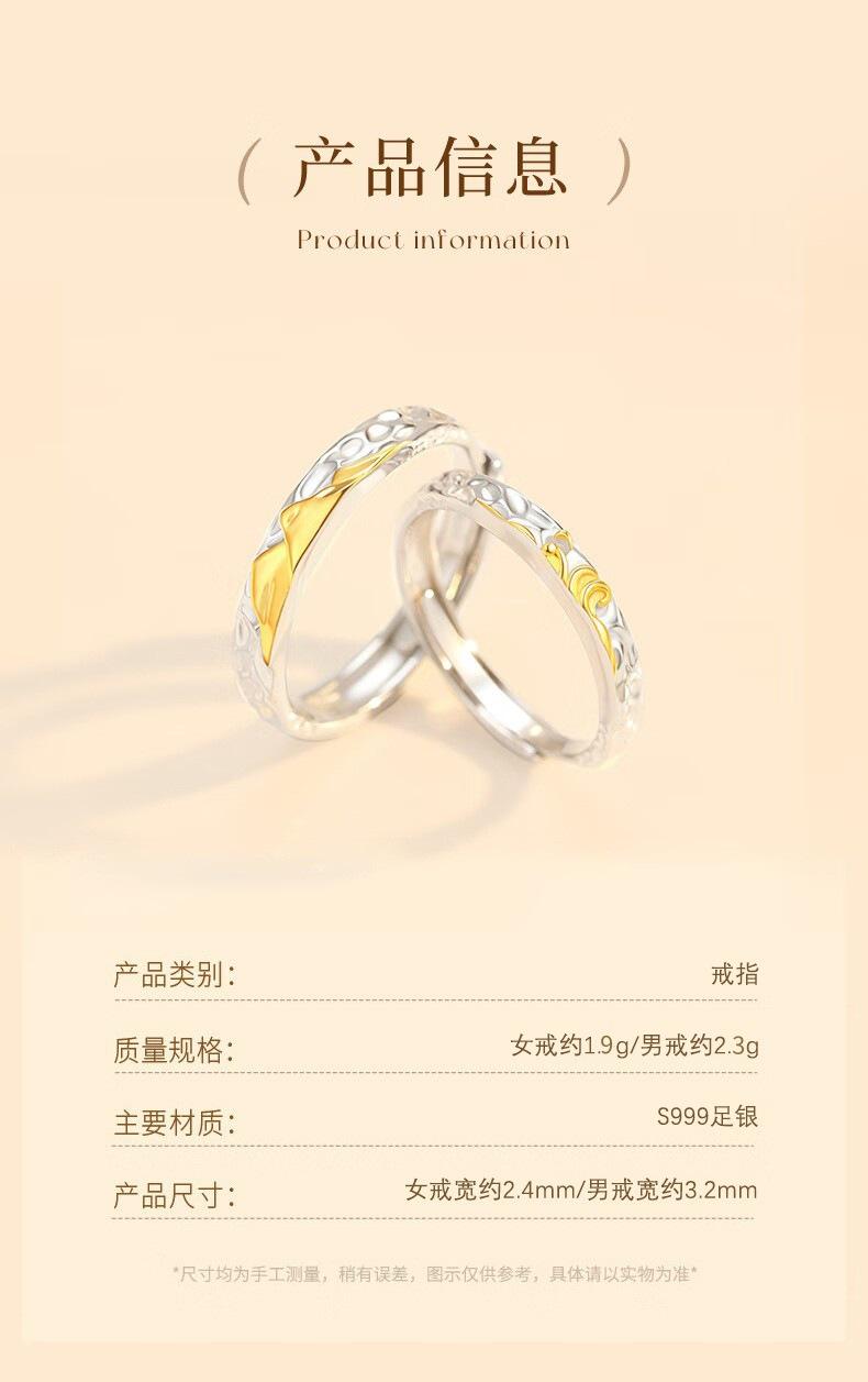 Jz150 female ring (999 pure silver), Jz150 men's ring (999 pure silver)