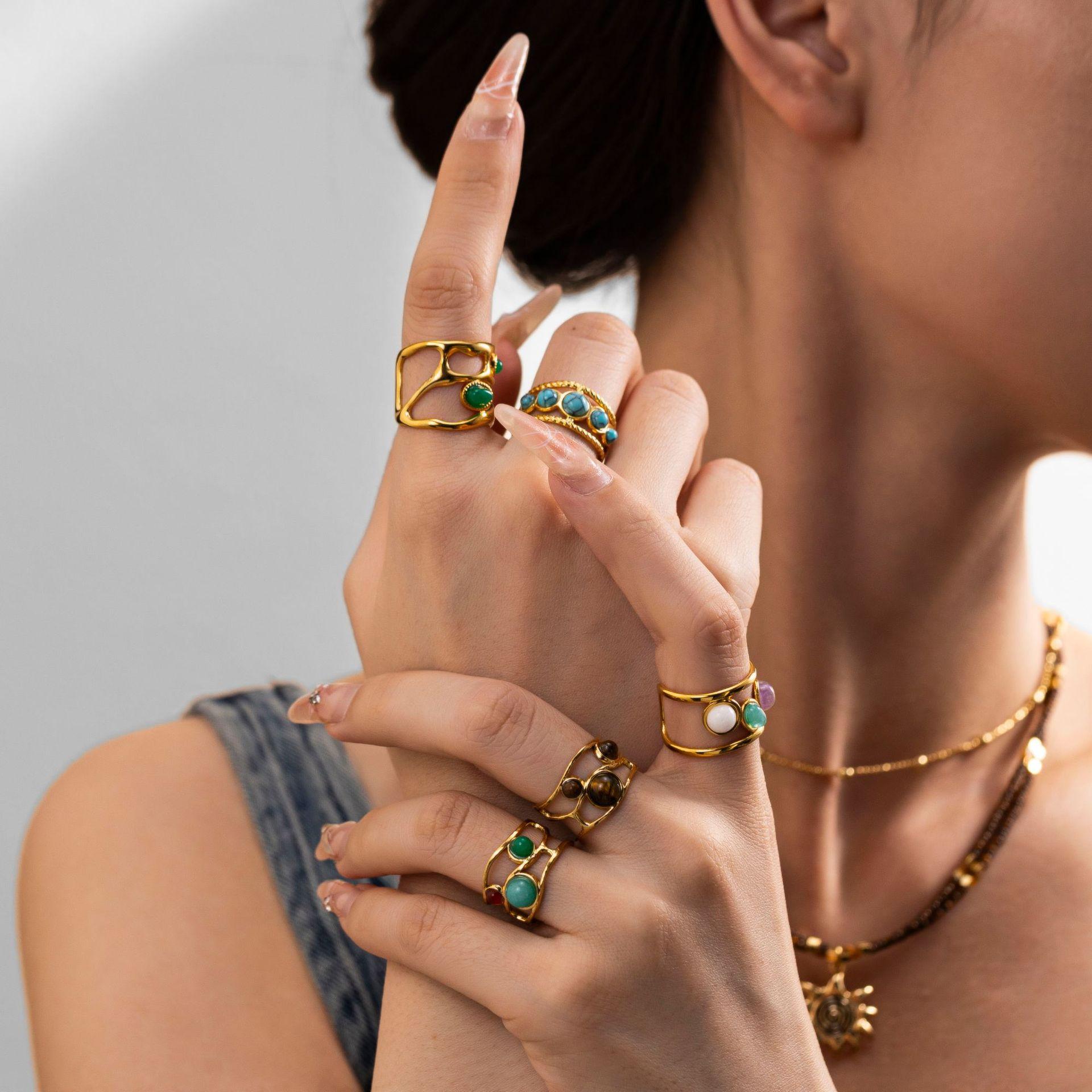 Anillo de acero inoxidable con oro de 18 quilates estilo INS transfronterizo de Europa y Estados Unidos, anillo de acero de titanio abierto de alto sentido, ligero, de lujo, sin decoloración, para mujer