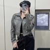 [Gamuza] Chaqueta Americana de Cuello Alto Pequeña Fragante para Mujer Chaqueta Nueva Transfronteriza Chaqueta de Motocicleta Uniforme de Béisbol Corto