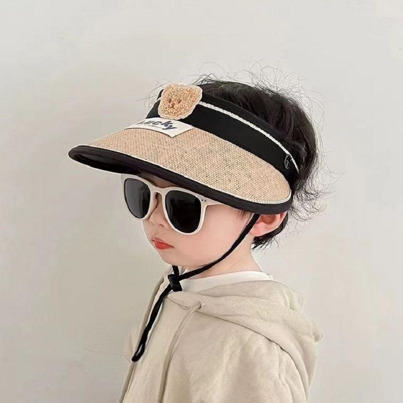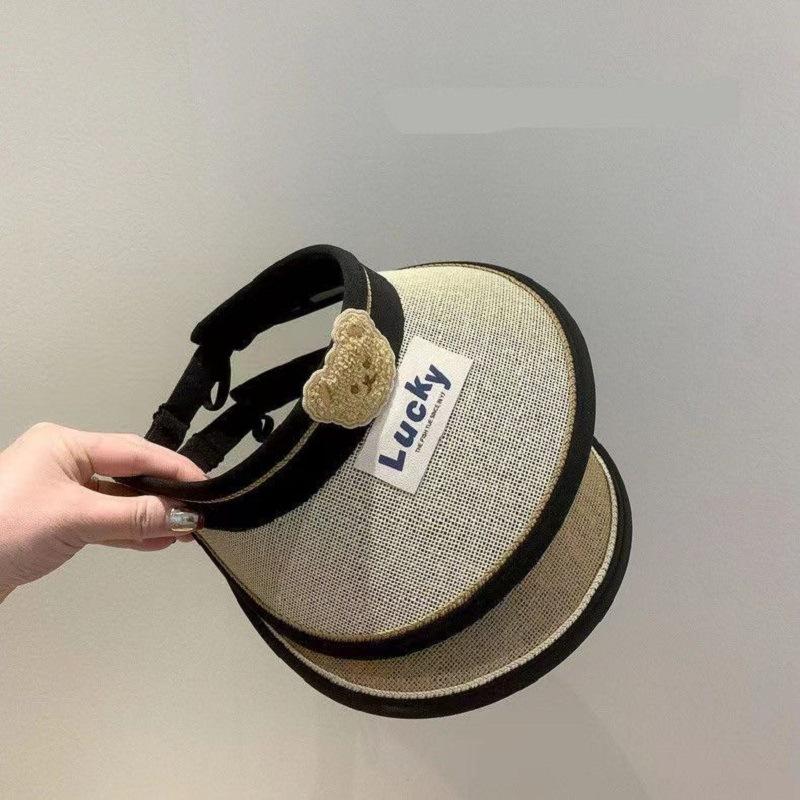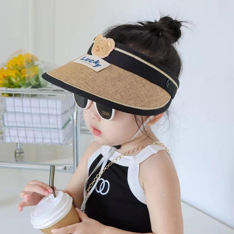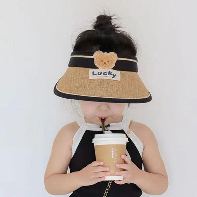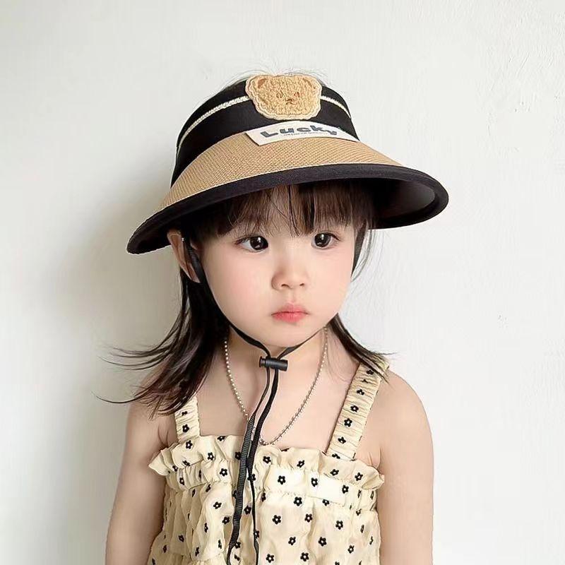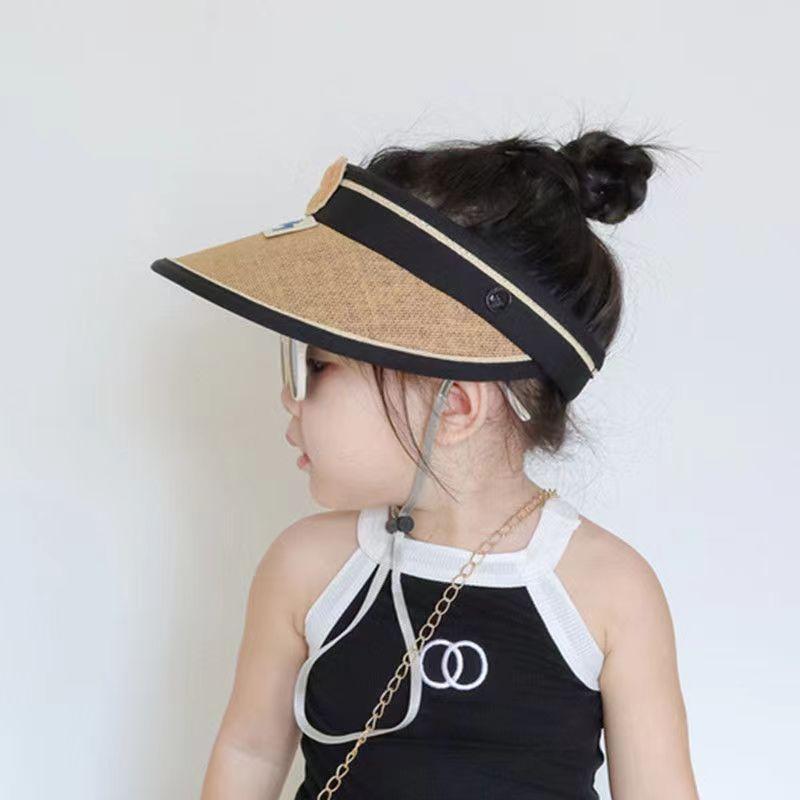 Sombrero para niños verano vinilo protección UV sombrero para el sol niñas sombrero de copa vacío sombrero de paja ala grande lindo sombrero de oso