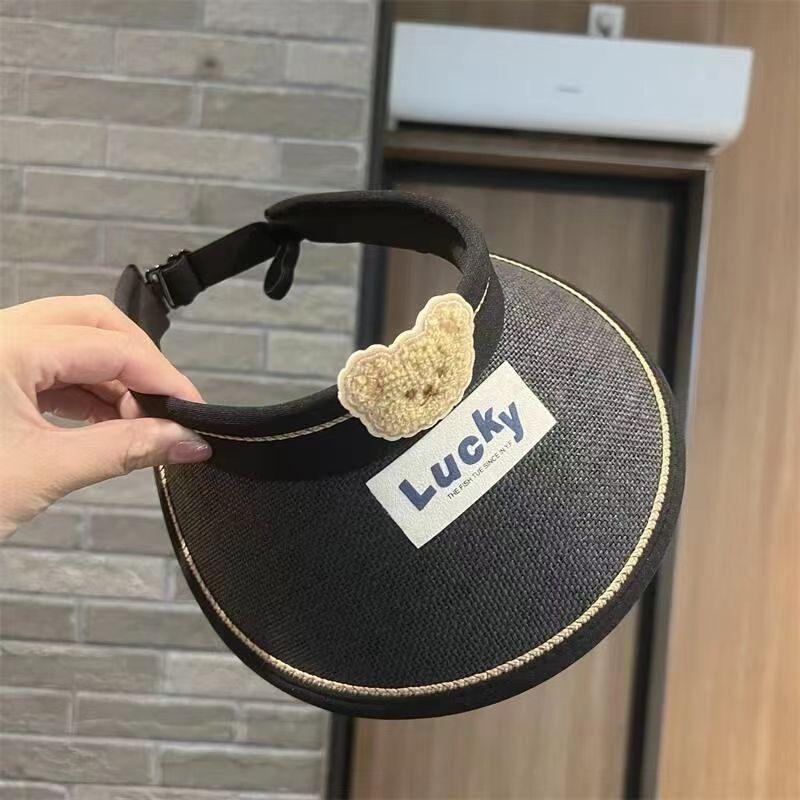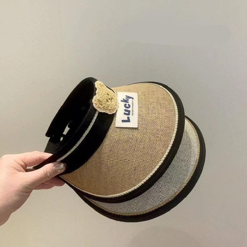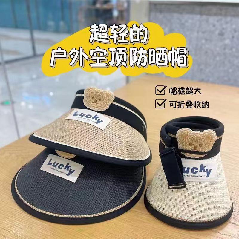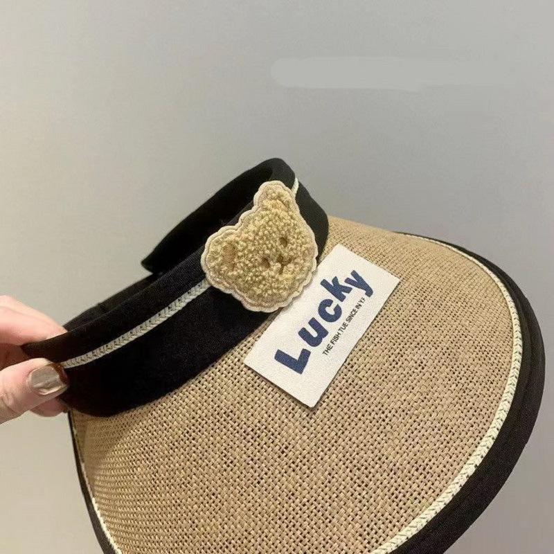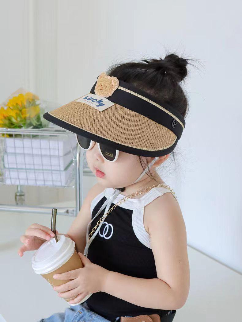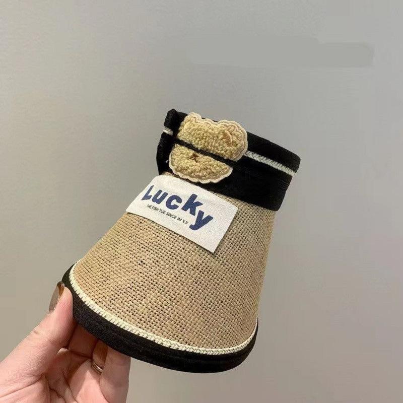 Sombrero para niños verano vinilo protección UV sombrero para el sol niñas sombrero de copa vacío sombrero de paja ala grande lindo sombrero de oso