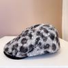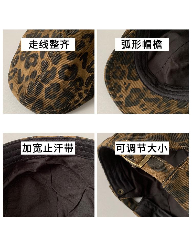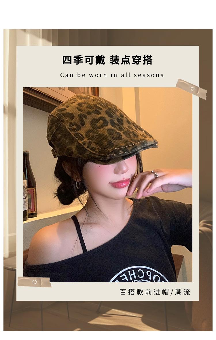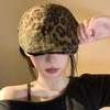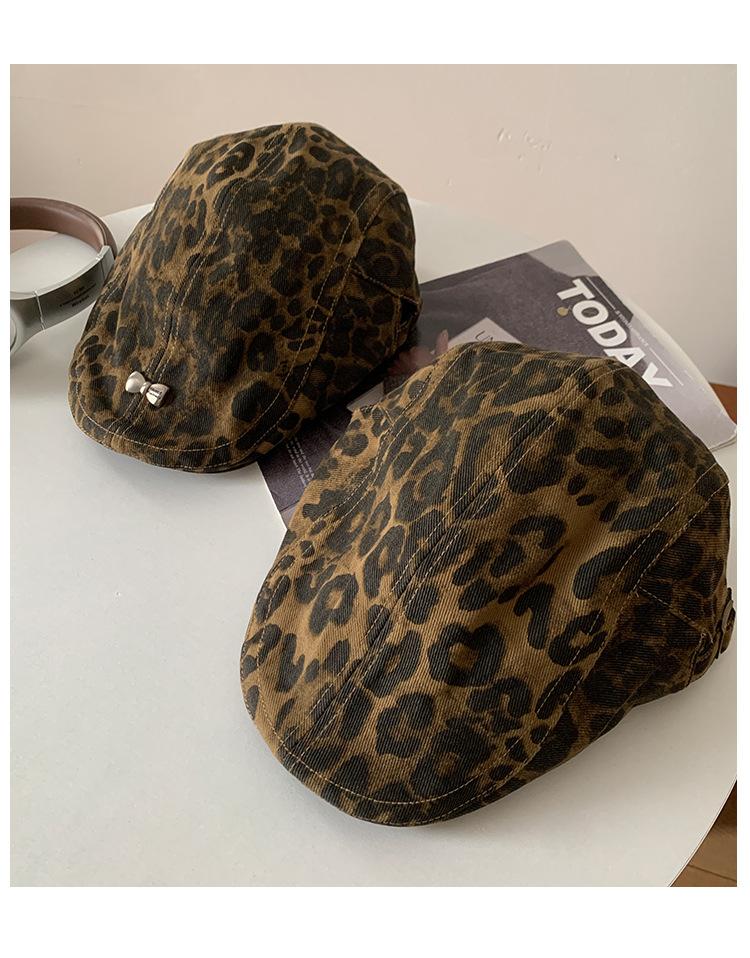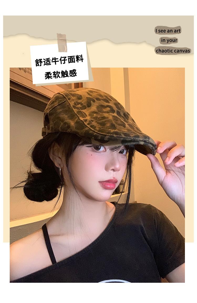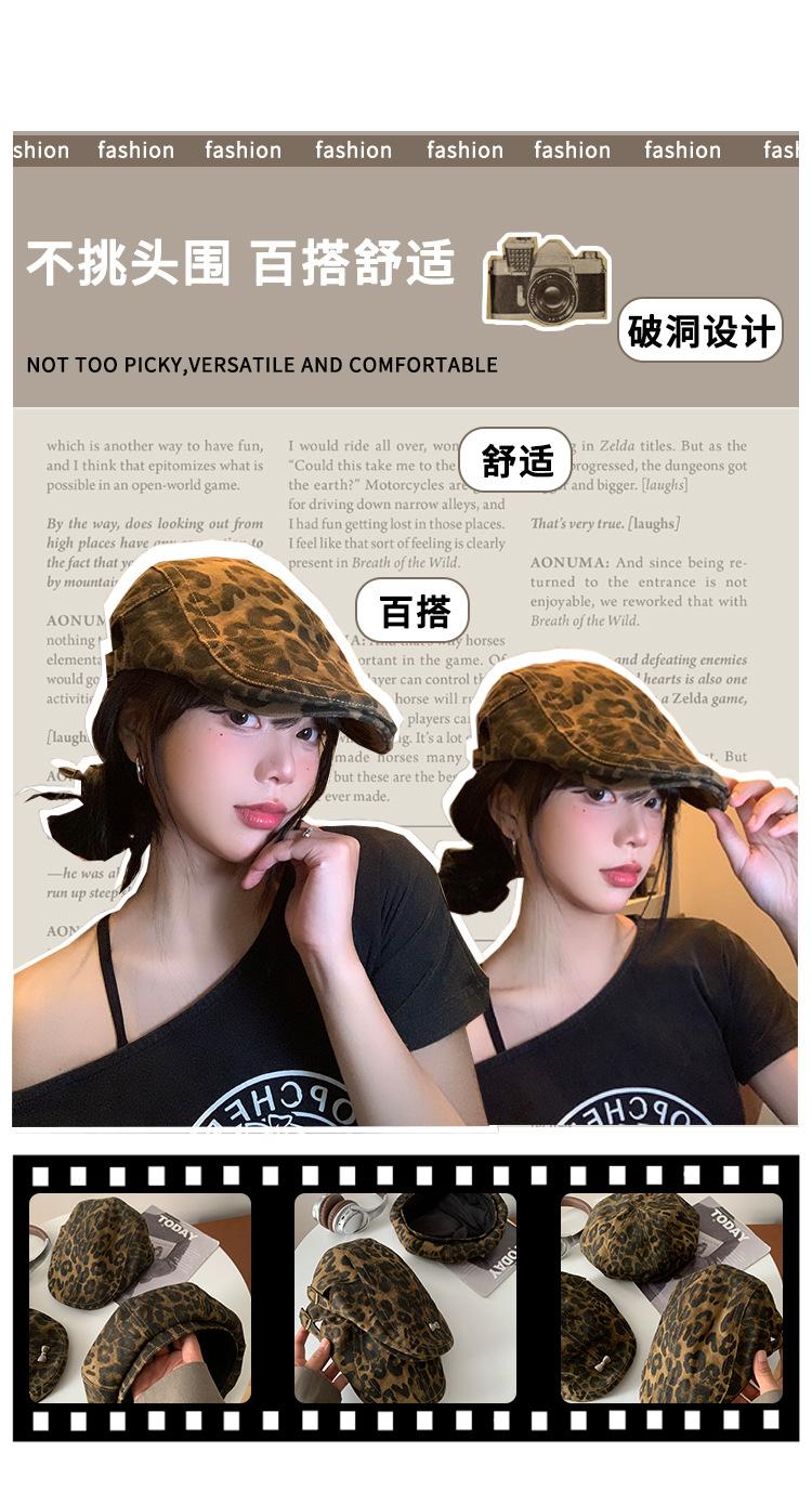 Boina con estampado de leopardo estilo Spice Girl estilo retro americano para mujer, estilo otoño, estilo Y2K, con cabeza grande, combina con todo y luce genial.