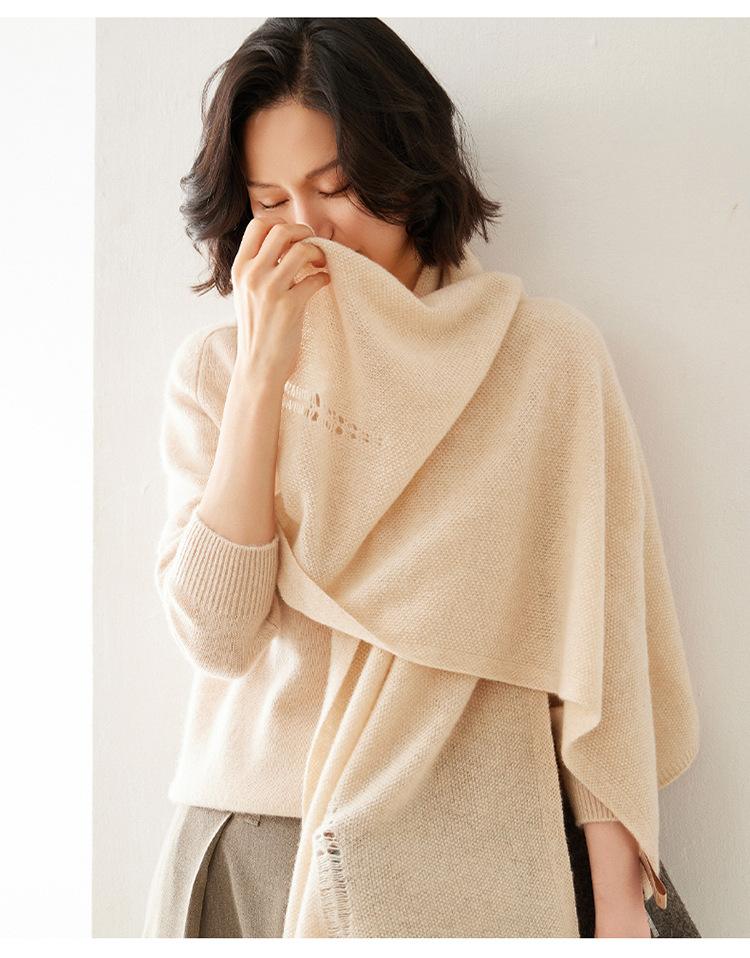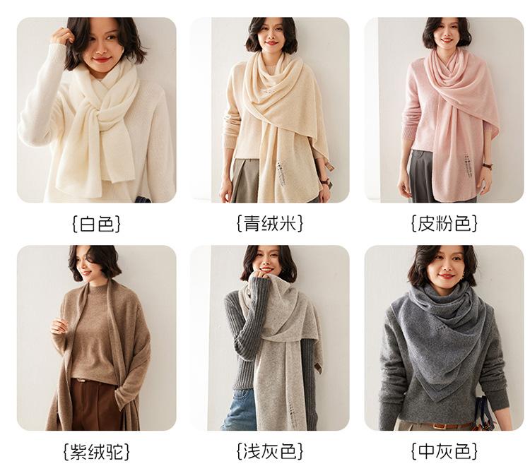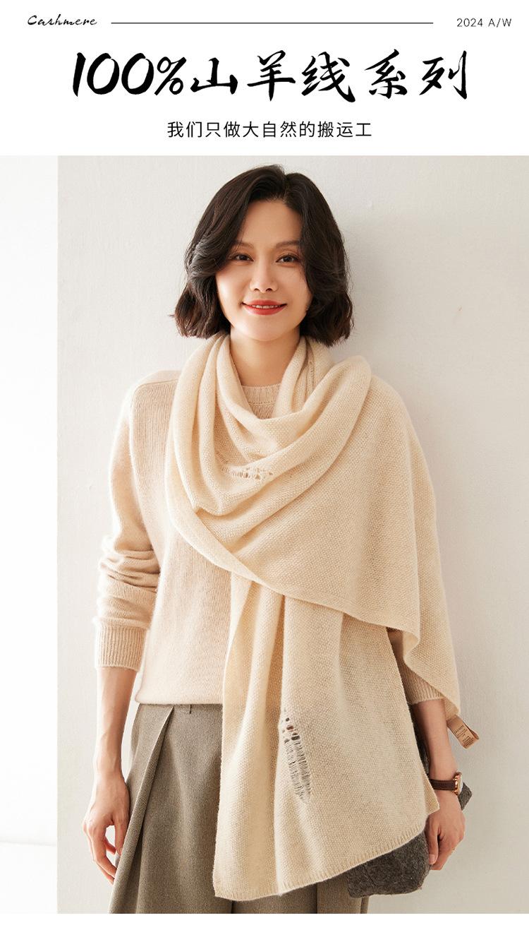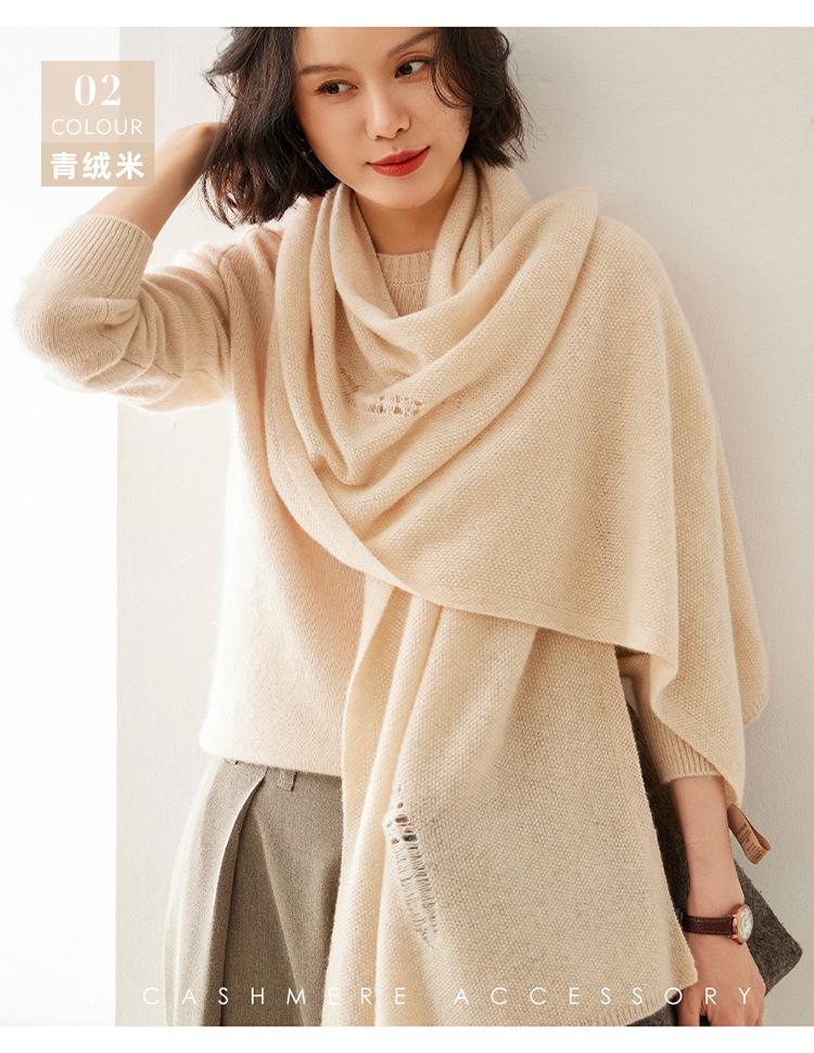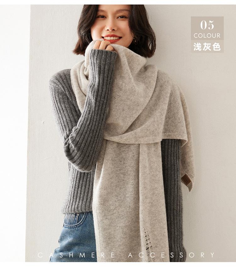 Bufanda de Cachemira Mujer 100% Cachemira Pura Otoño e Invierno Nuevo Estilo Agujero Aumentado Moda Chal Tejido Sentido Avanzado Simple