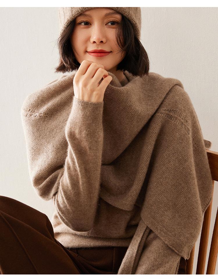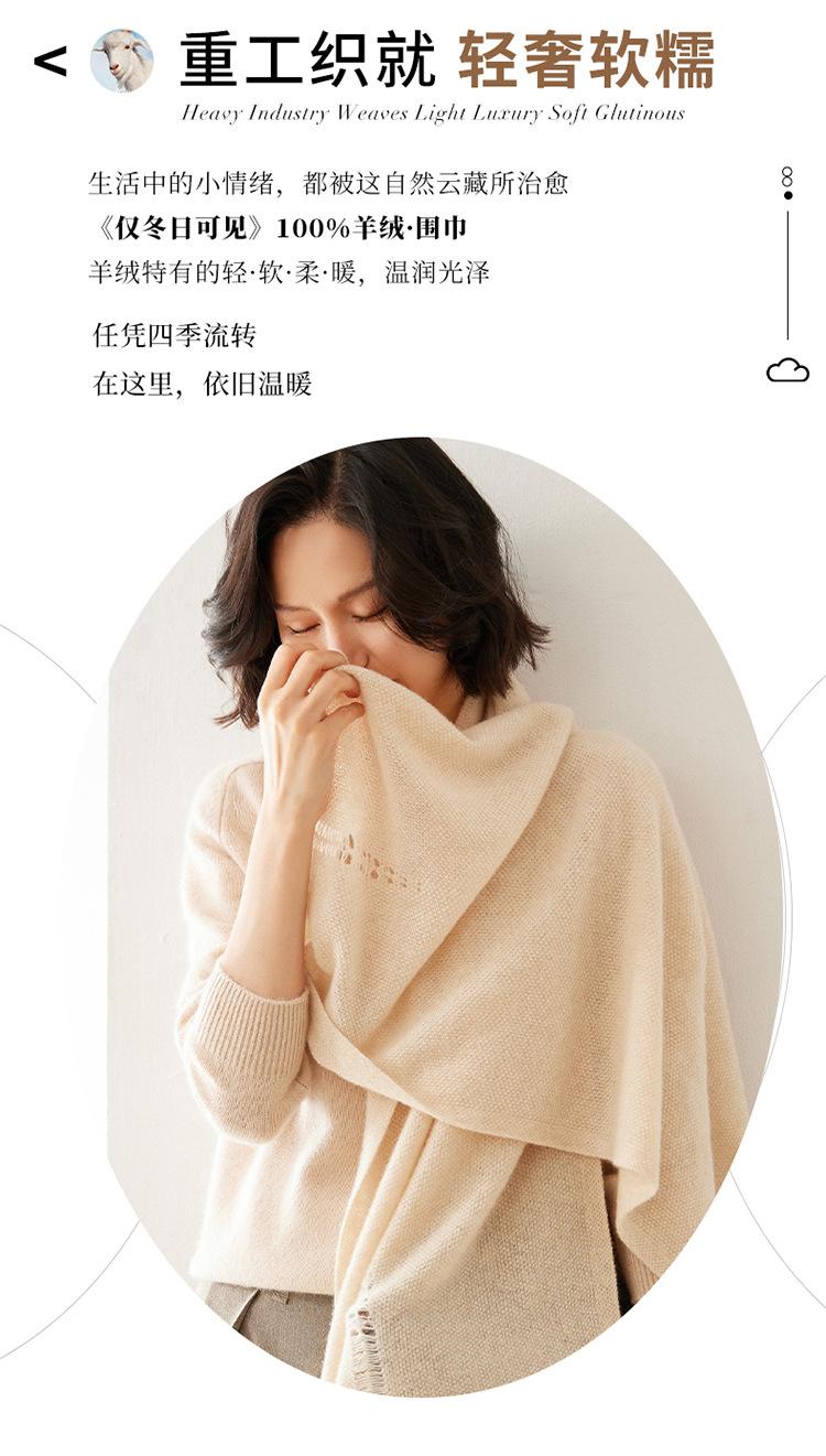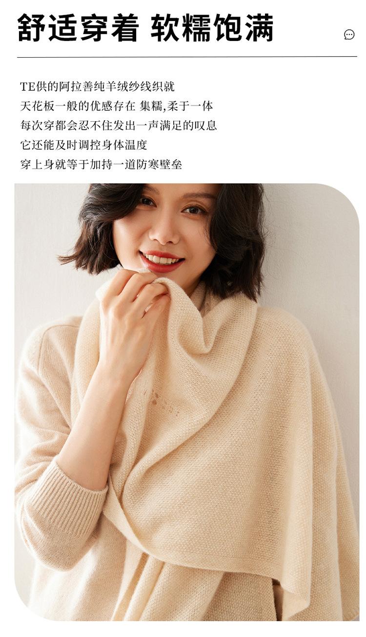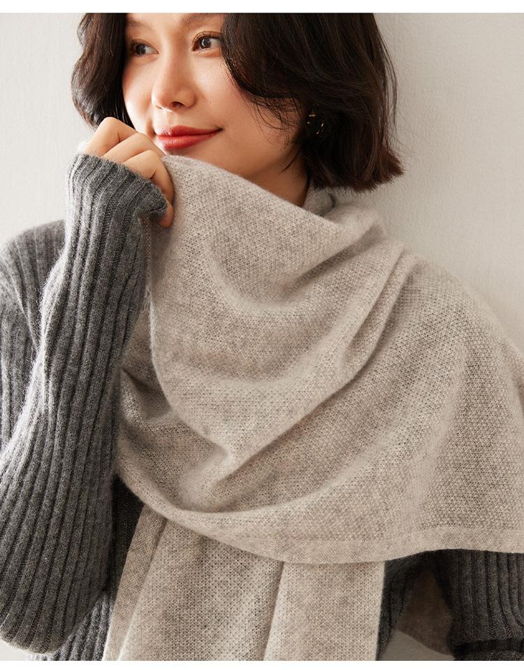 Bufanda de Cachemira Mujer 100% Cachemira Pura Otoño e Invierno Nuevo Estilo Agujero Aumentado Moda Chal Tejido Sentido Avanzado Simple