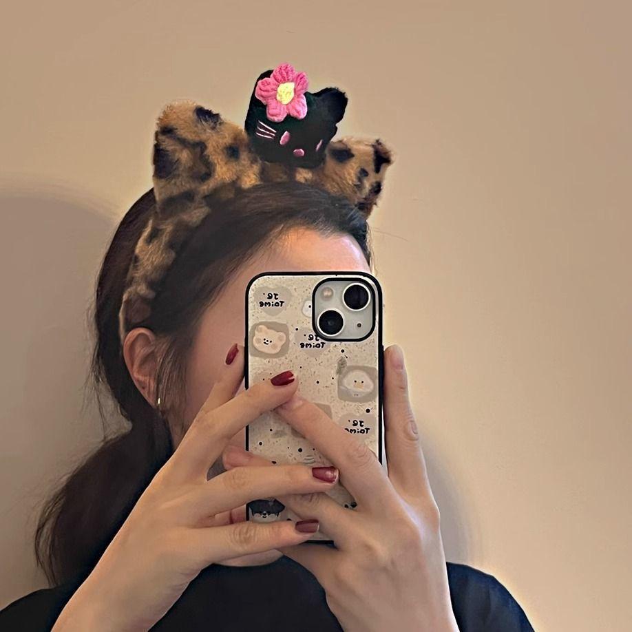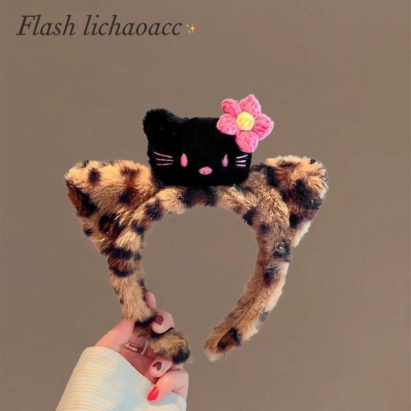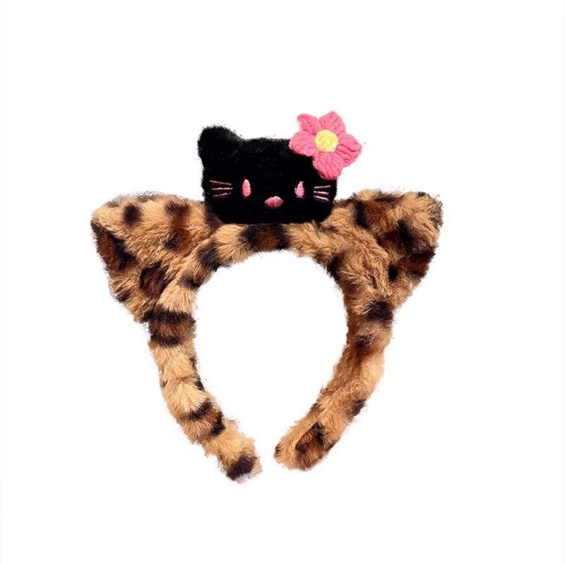 Lindo Leopardo Kt Lavado Facial Aro para el Cabello Flor Gato Aro para el Cabello de Mujer Lavado Facial Otoño e Invierno Dibujos Animados Presión para el Cabello Aro para el Cabello Clips para el Cabello Accesorios para el Cabello