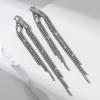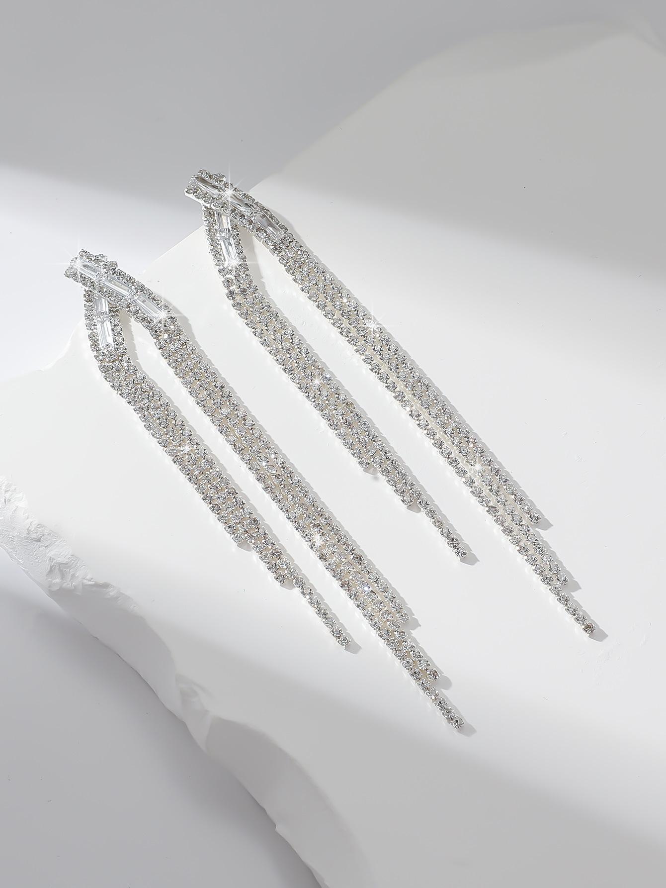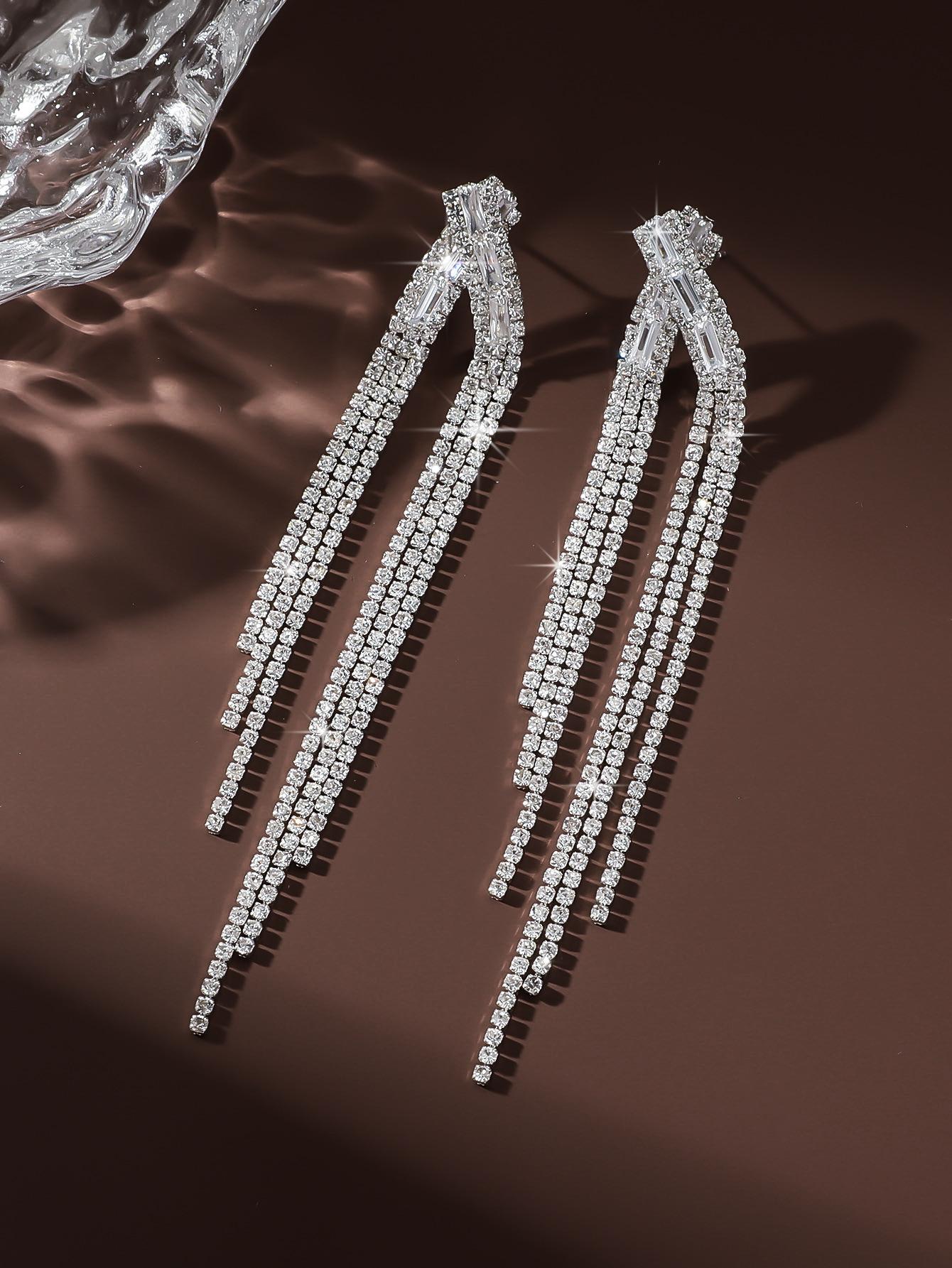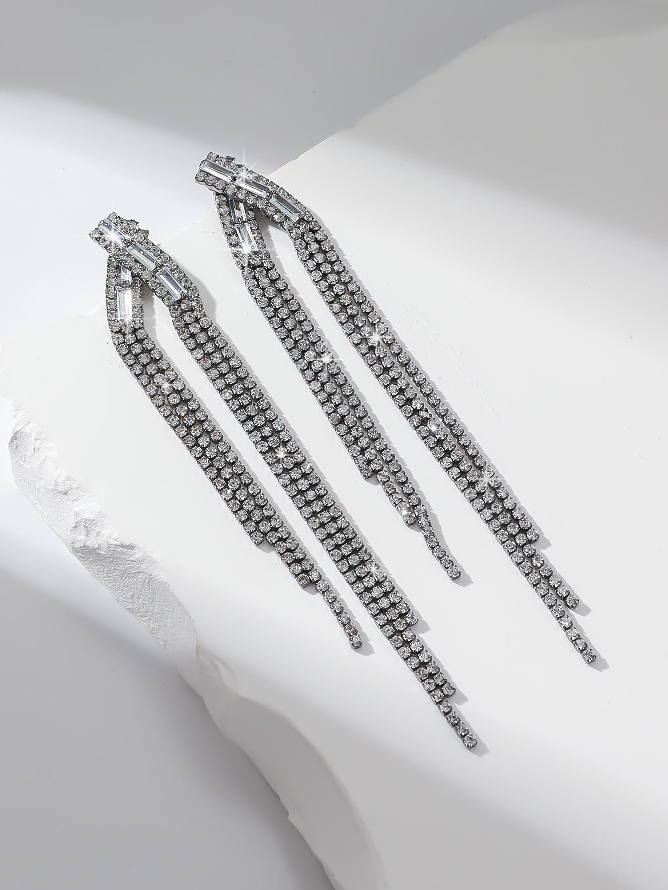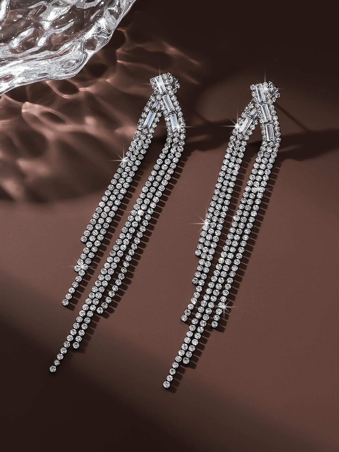 Pendientes largos con borlas y diamantes de imitación geométricos elegantes con cadena de garra Super Flash para mujer, aretes de banquete exagerados europeos y americanos.