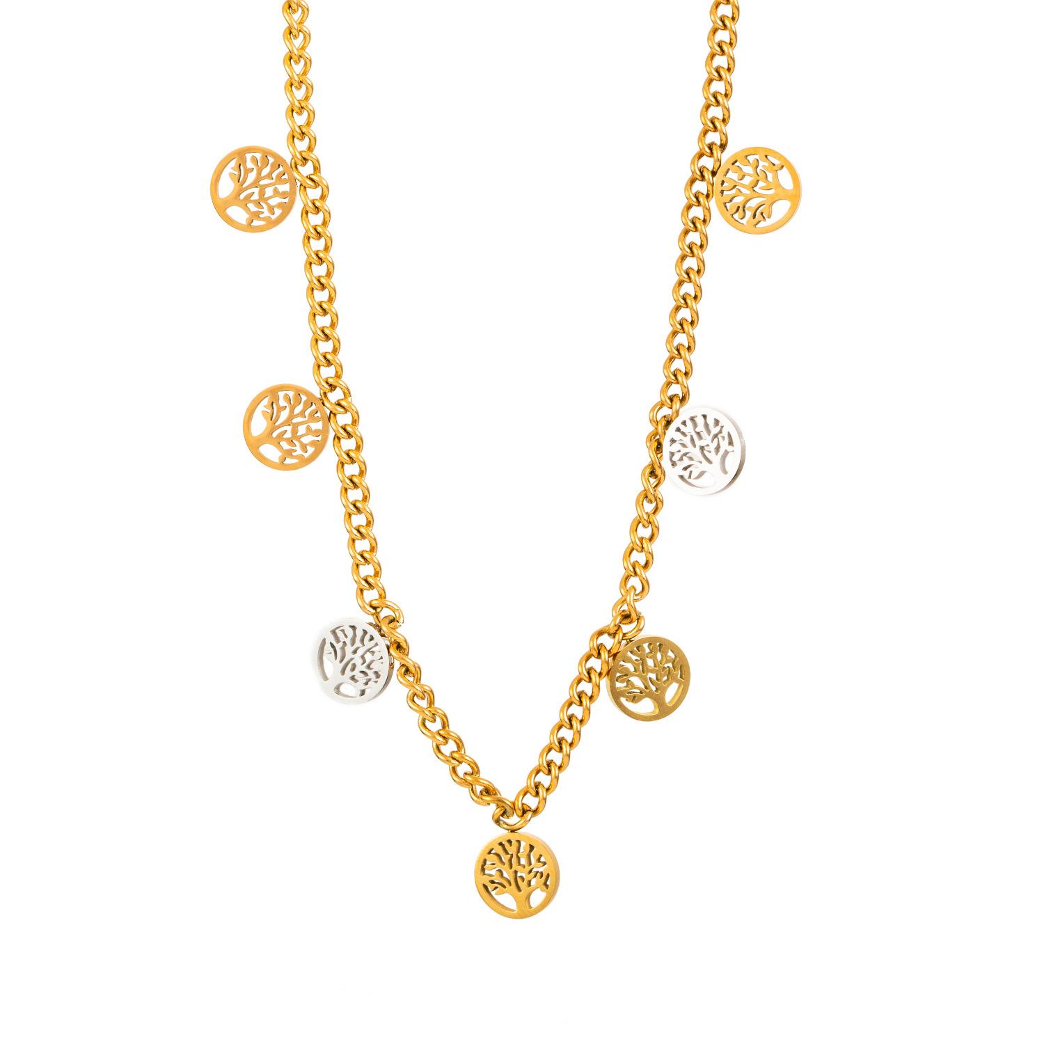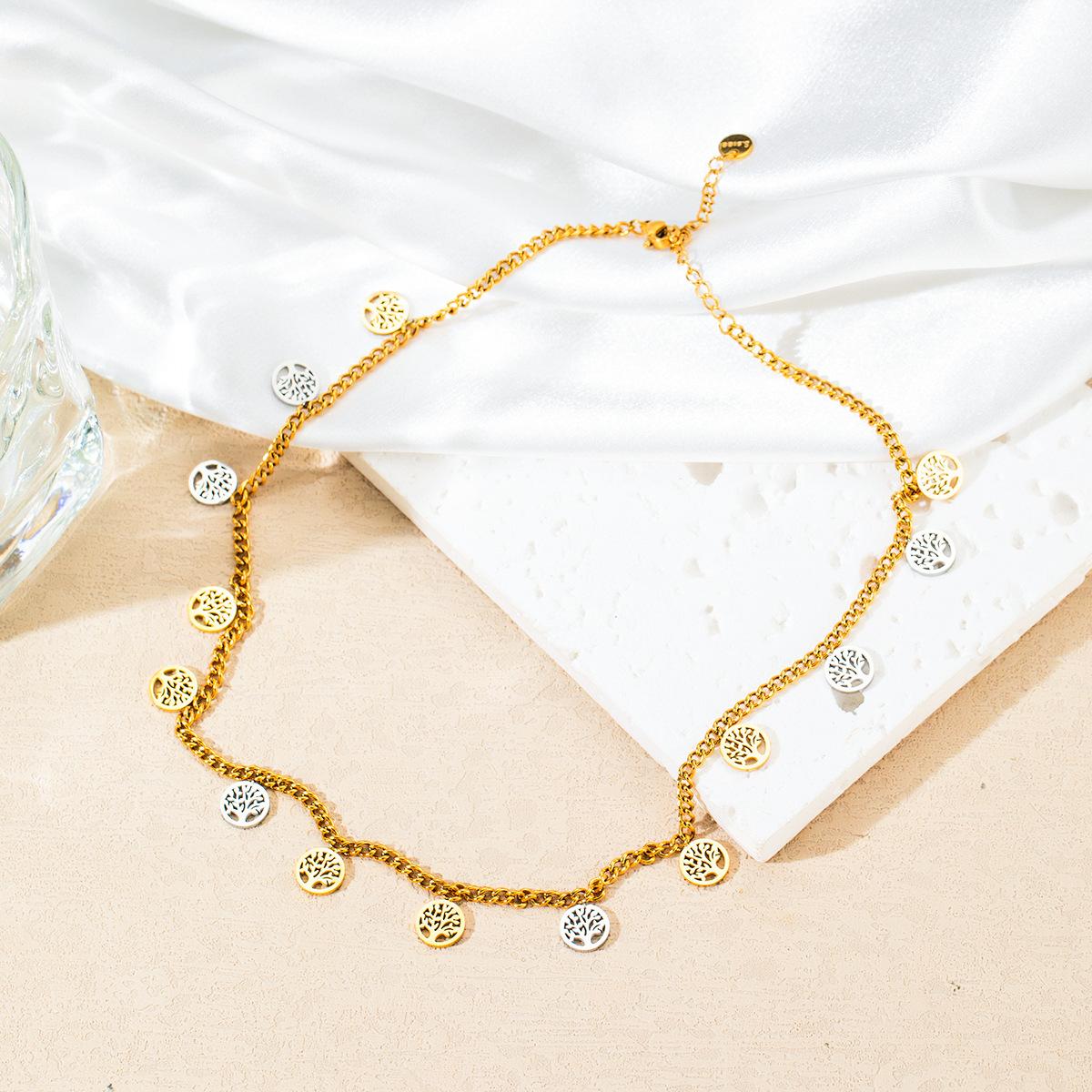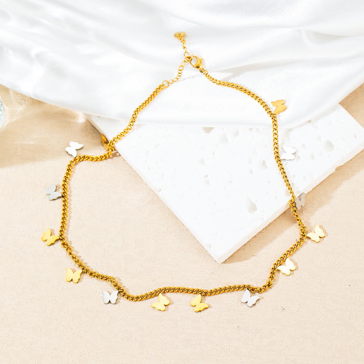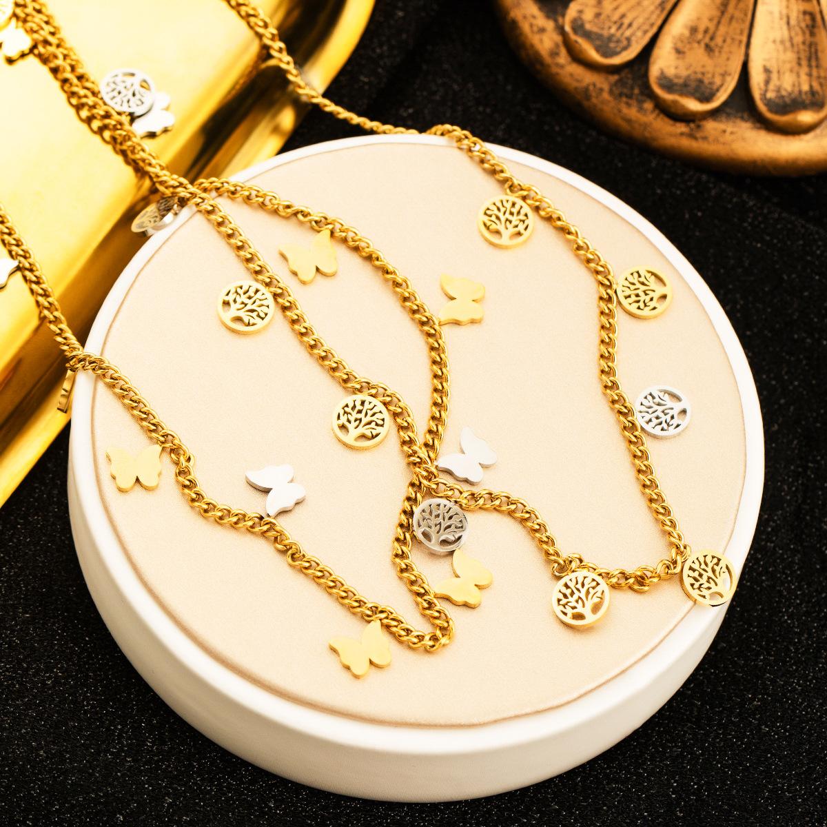 Collar de Acero Inoxidable Moda Transfronteriza Europea y Americana Collar Simple Bicolor Colgante Mariposa Árbol de la Vida Collar de Acero de Titanio Chapado en Oro