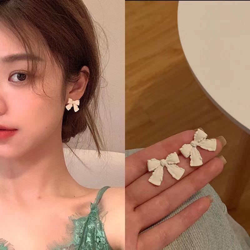 Aretes de Moño Estilo Similar a Yang Chaoyue, Nuevos Clips de Oreja de Moda, Aretes Perforados para Mujer, Aretes Elegantes de Otoño e Invierno