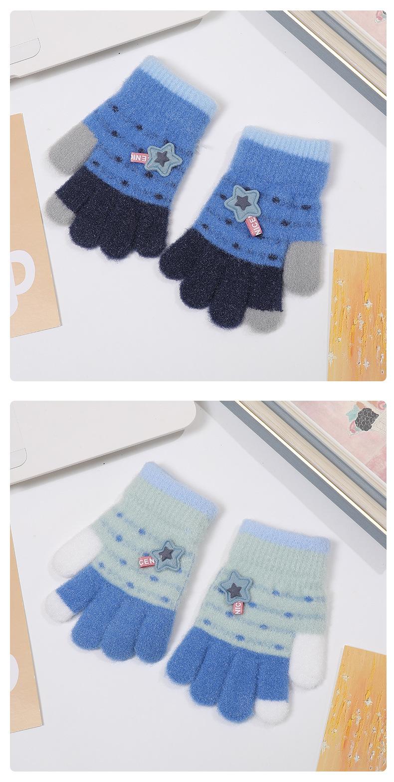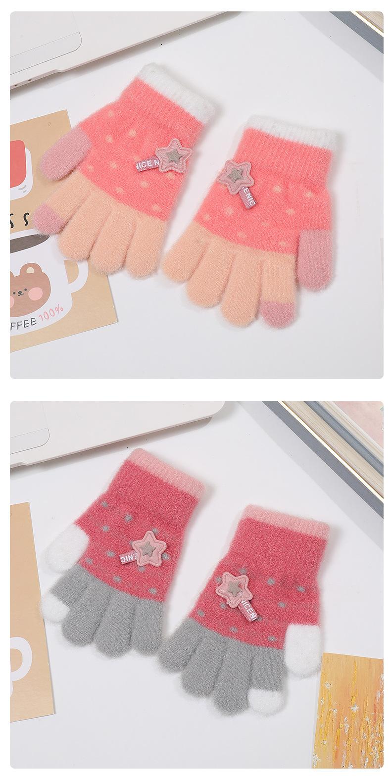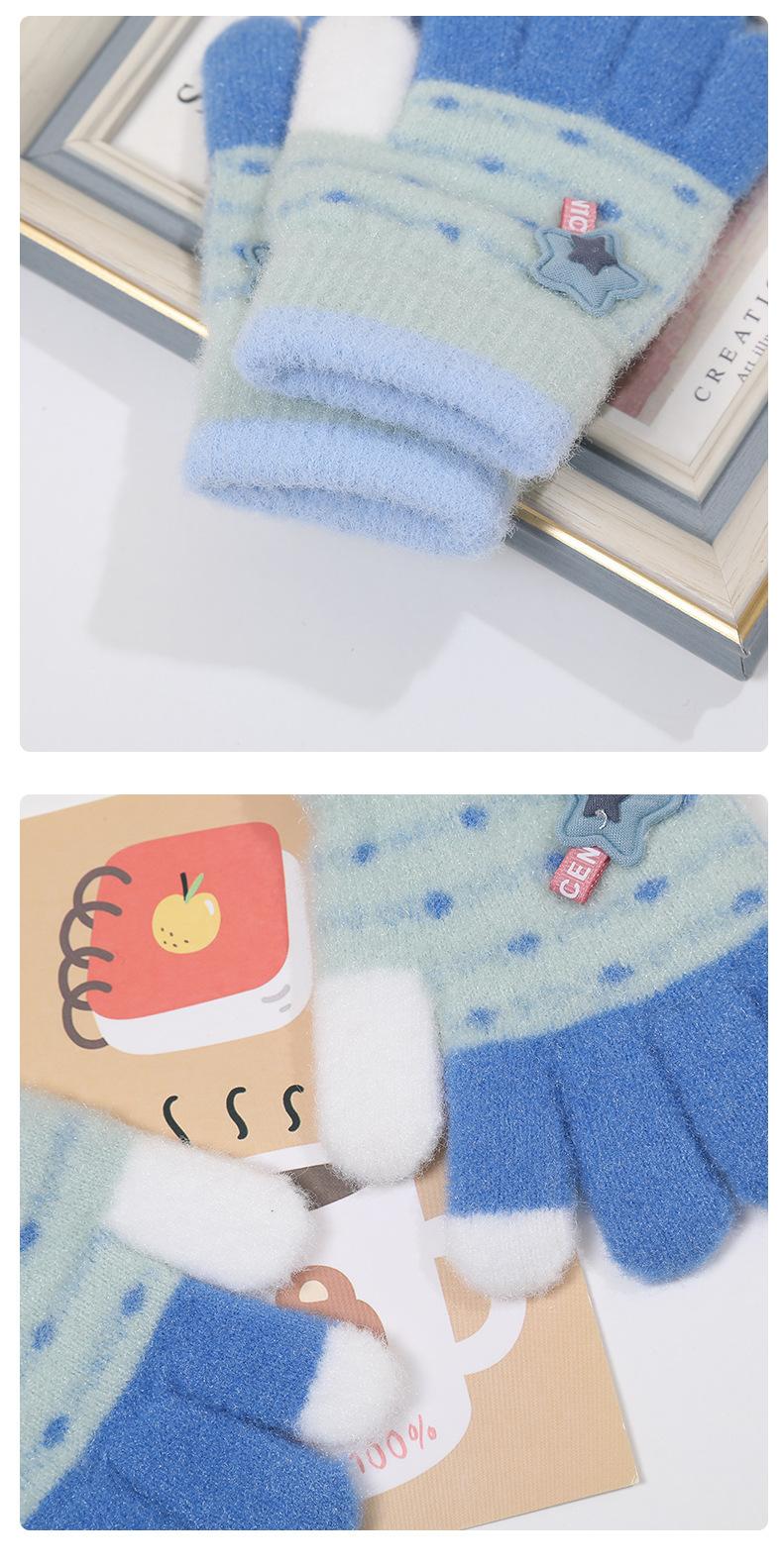Guantes de lana para niños de otoño e invierno, cálidos y resistentes al frío, de punto con hilo de cristal y cinco dedos en forma de estrella.