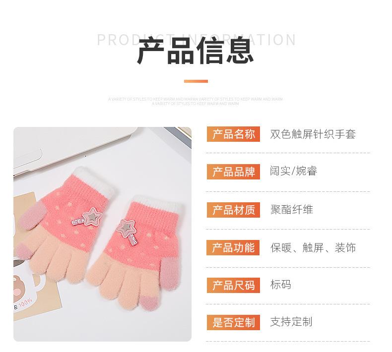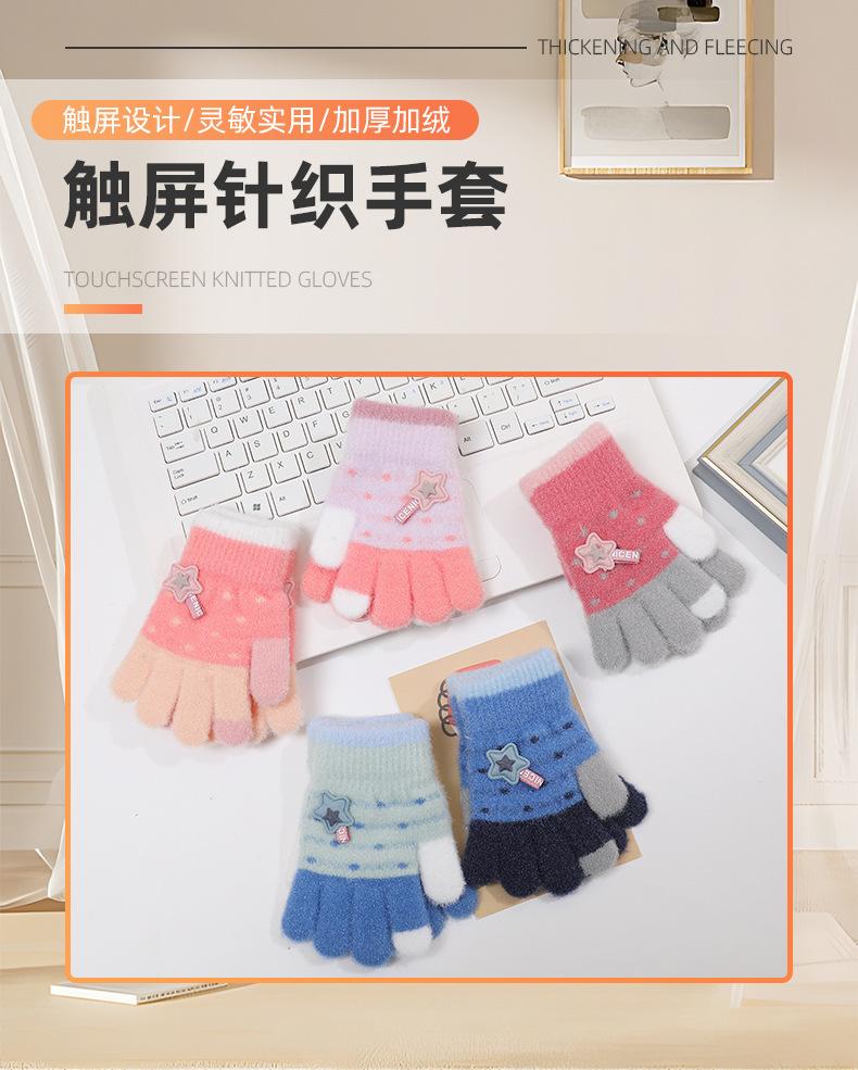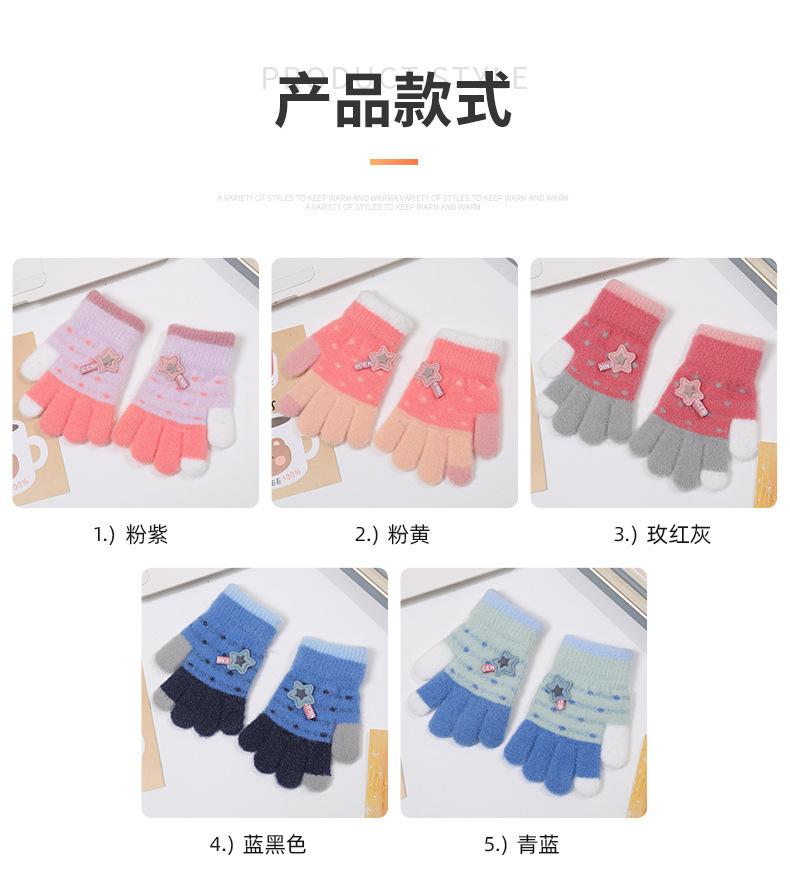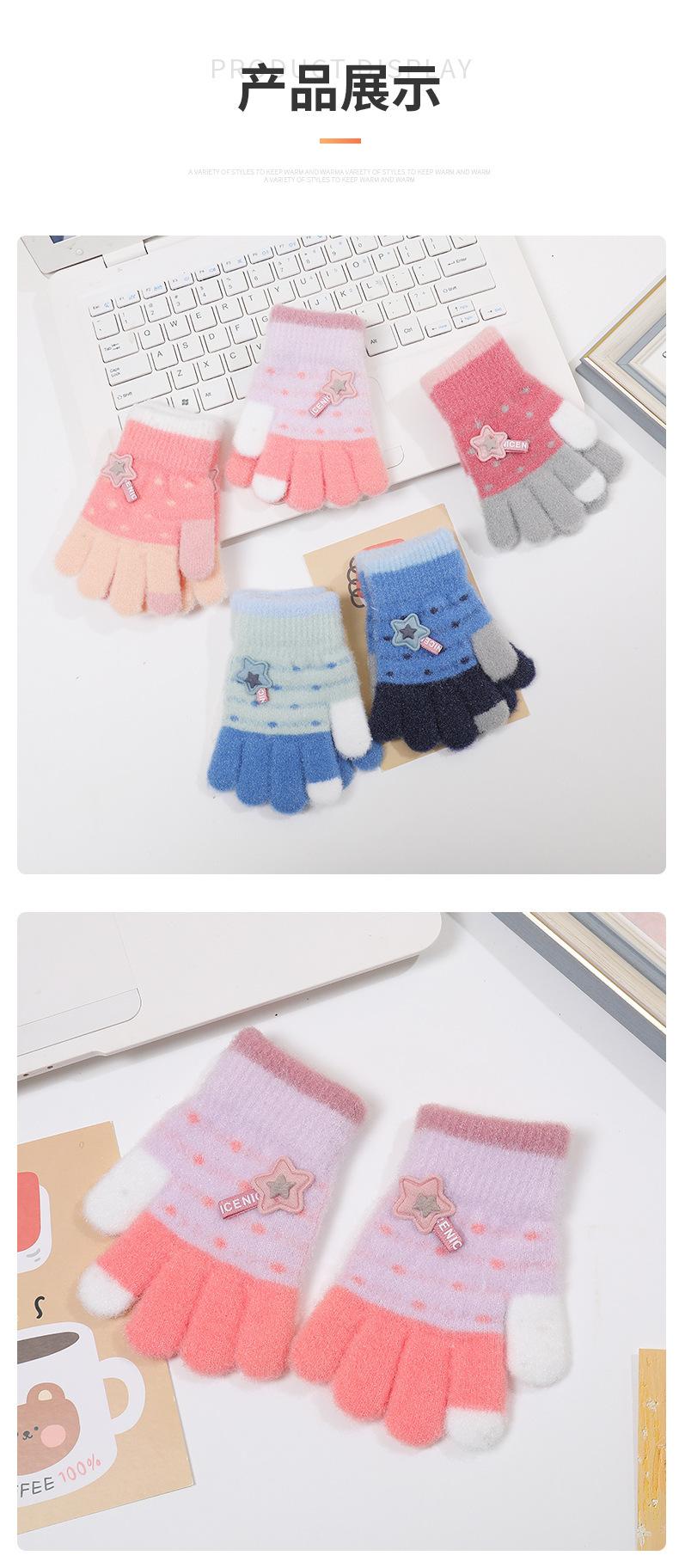 Guantes de lana para niños de otoño e invierno, cálidos y resistentes al frío, de punto con hilo de cristal y cinco dedos en forma de estrella.