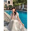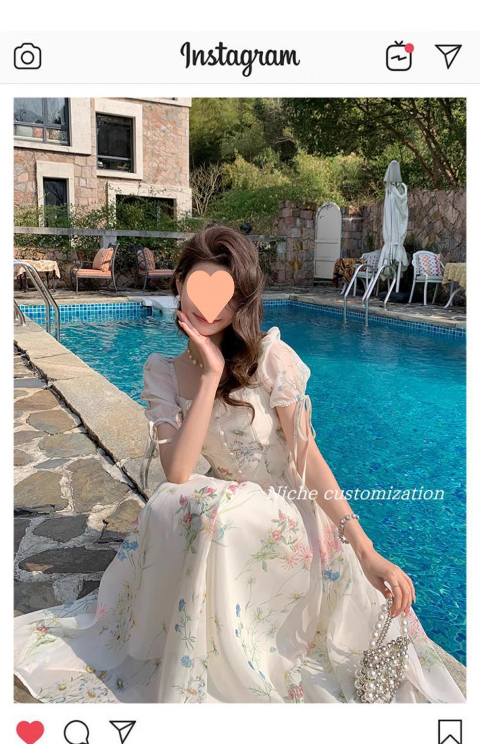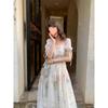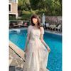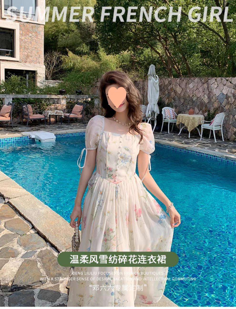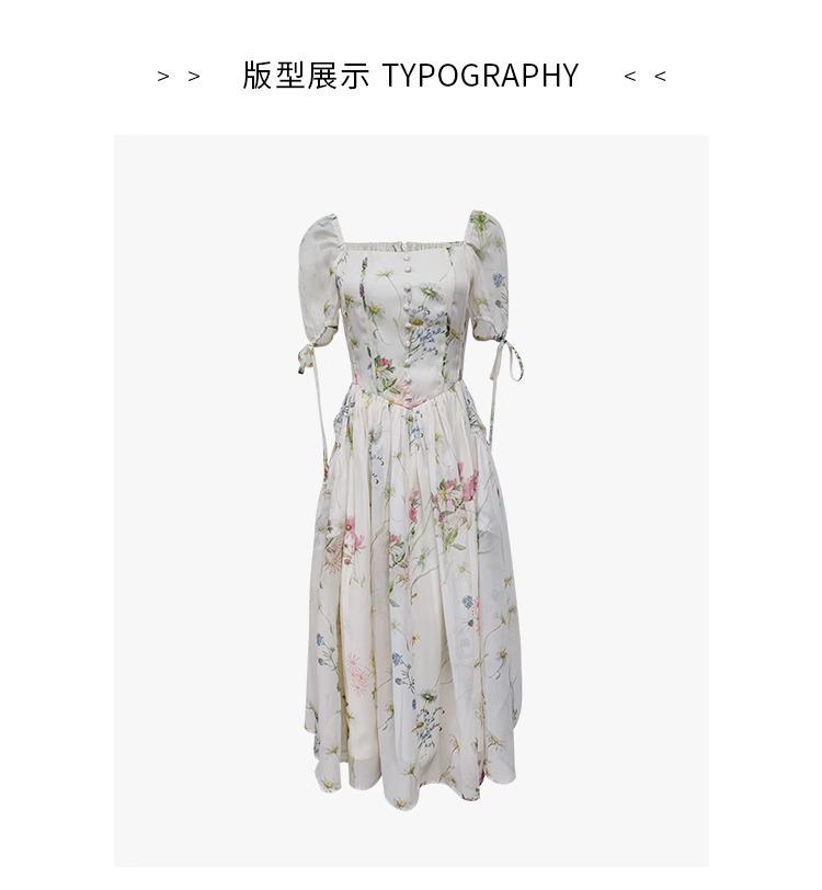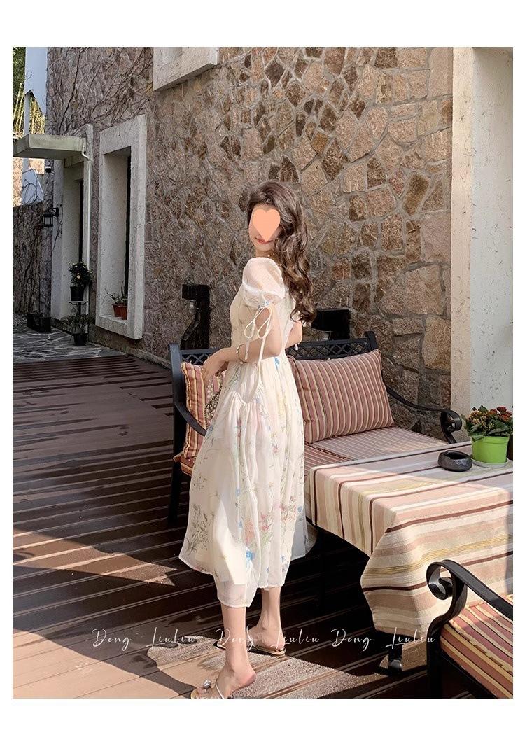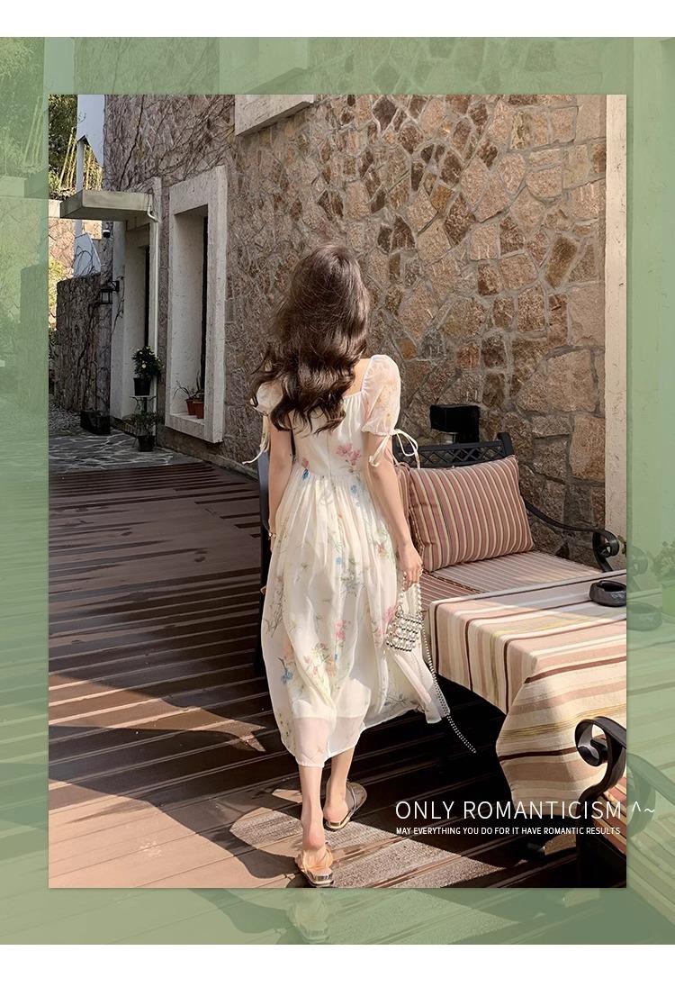 Vestido floral estilo francés para mujer, de verano, con cuello cuadrado, elegante, estilo socialité, fresco, dulce, adelgazante, para tomar el té, vestido largo