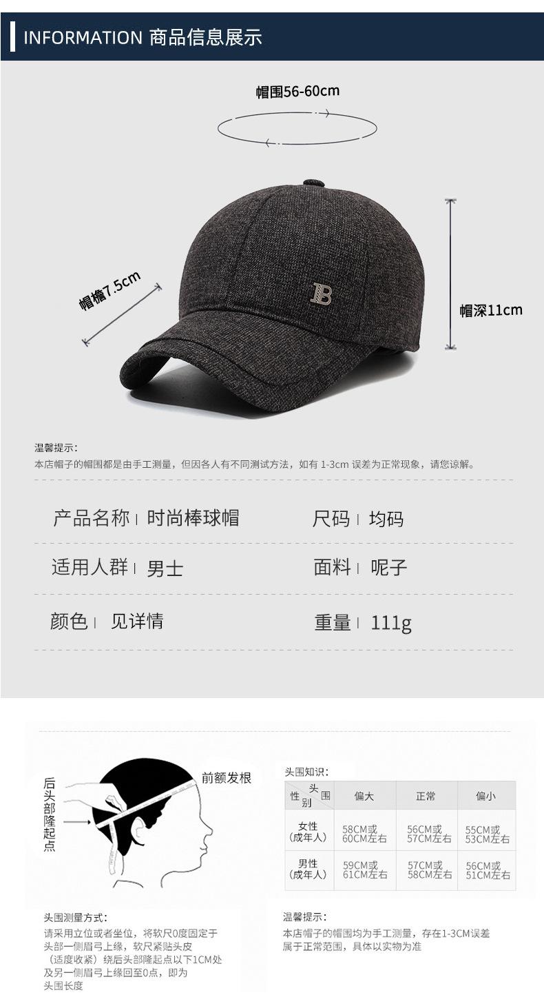 Nuevo Sombrero Cálido Gorra de Béisbol para Hombre para Exterior Invierno con Forro Polar a Prueba de Viento Protección para las Orejas Sombrero para Mediana Edad Gorra a Prueba de Frío