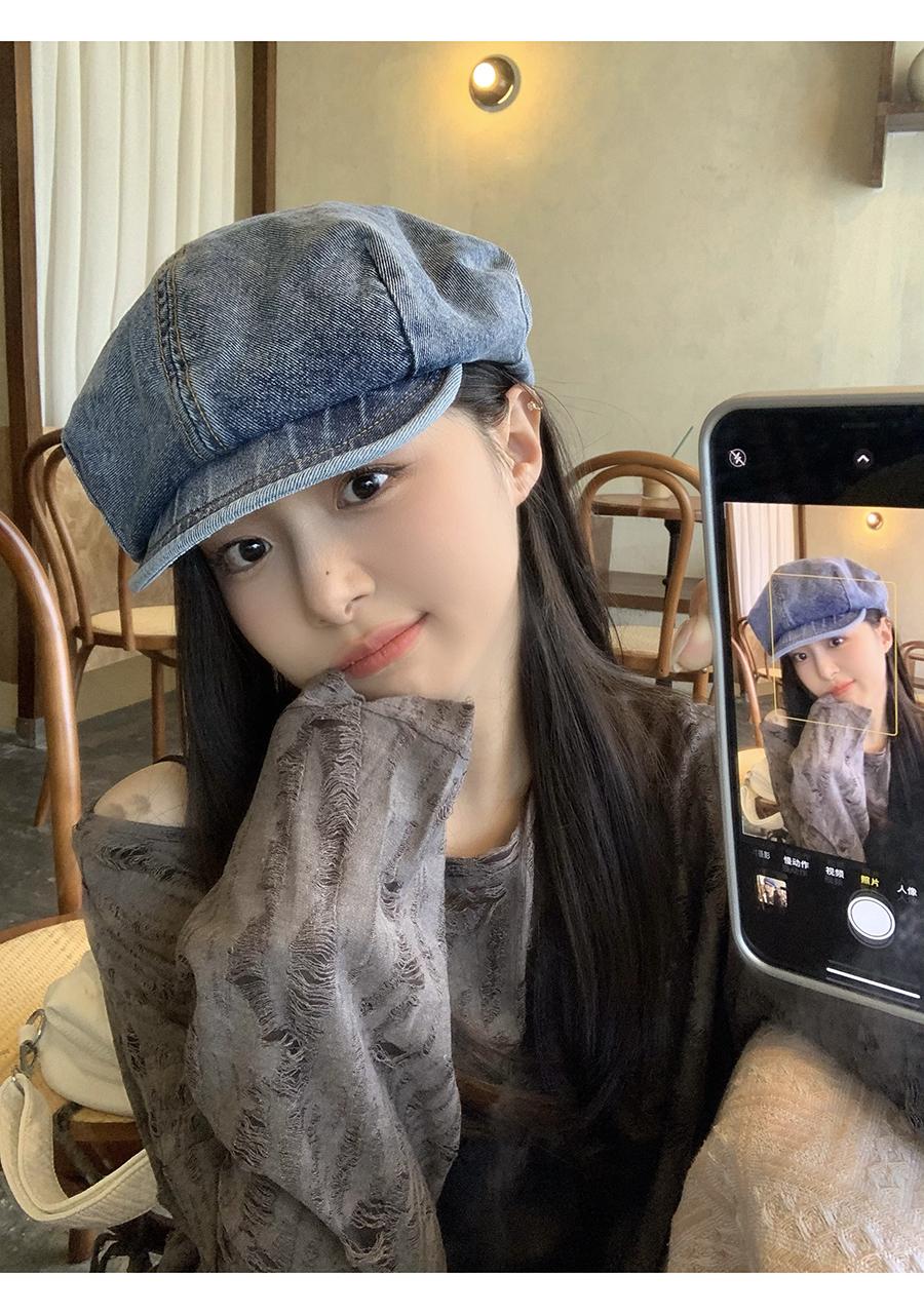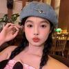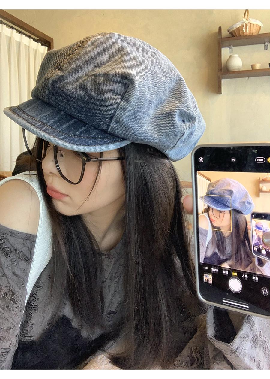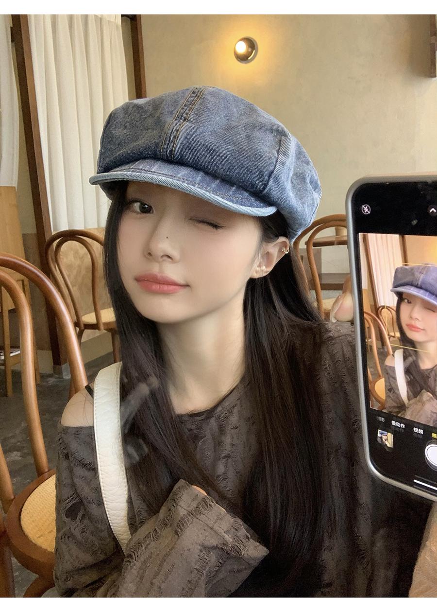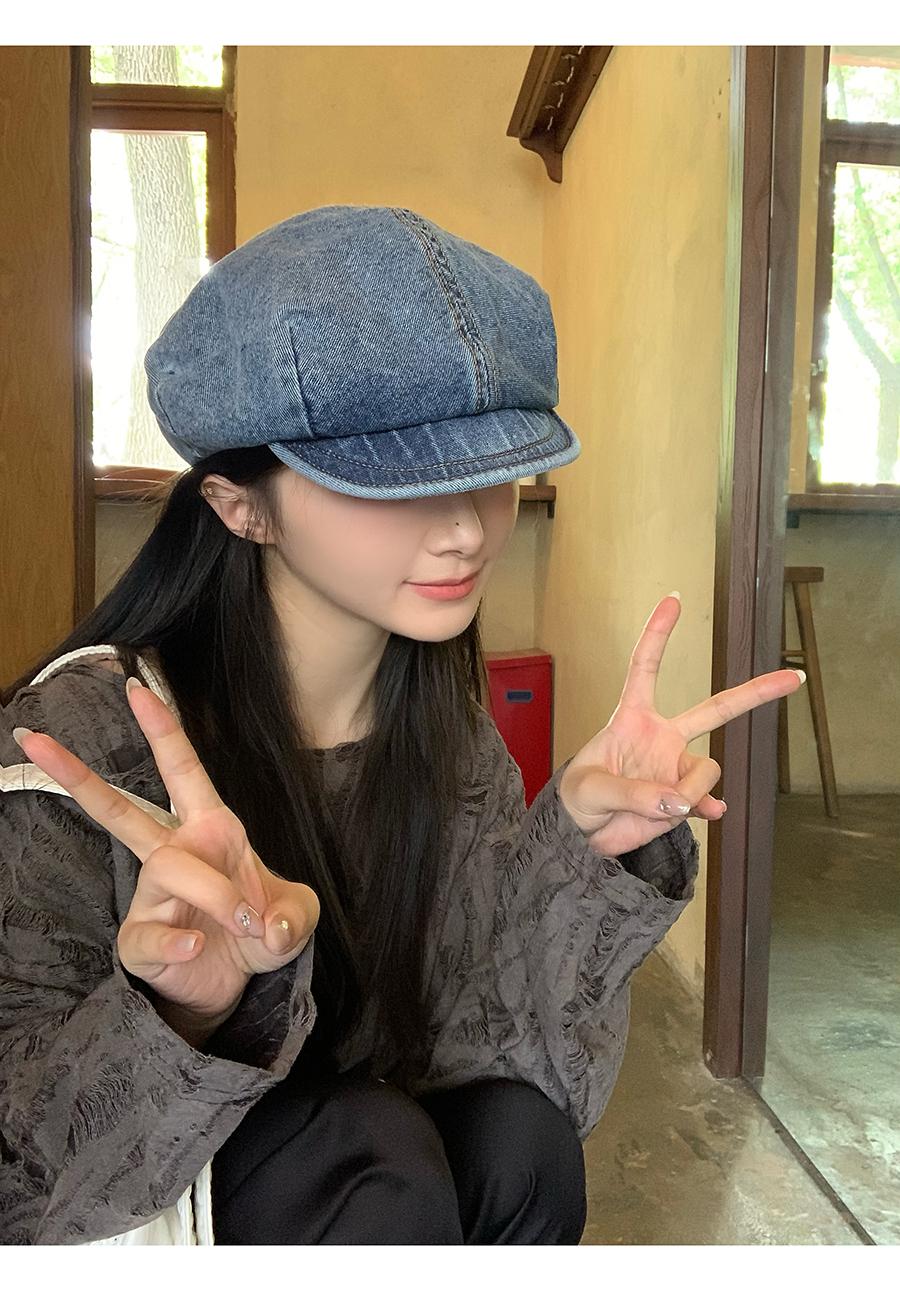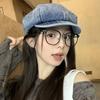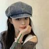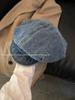 Boina de mezclilla lavada vintage estilo japonés para mujer, primavera y otoño, cabeza grande, ala corta, que muestra la cara, pequeña, combinable con todo, arte, periódico, sombrero infantil
